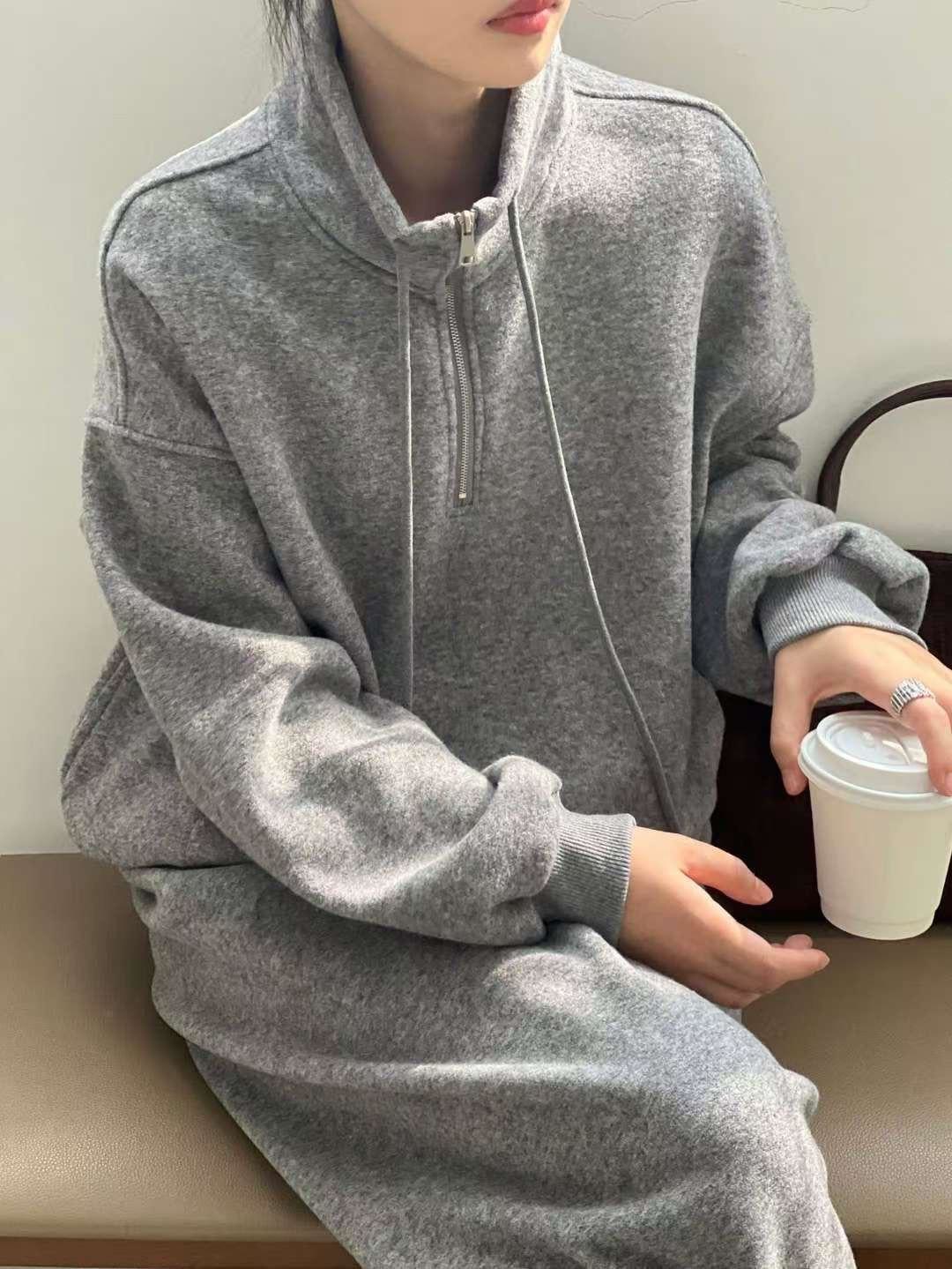 可拆式拼接襯領針織衣+鬆緊短裙SET