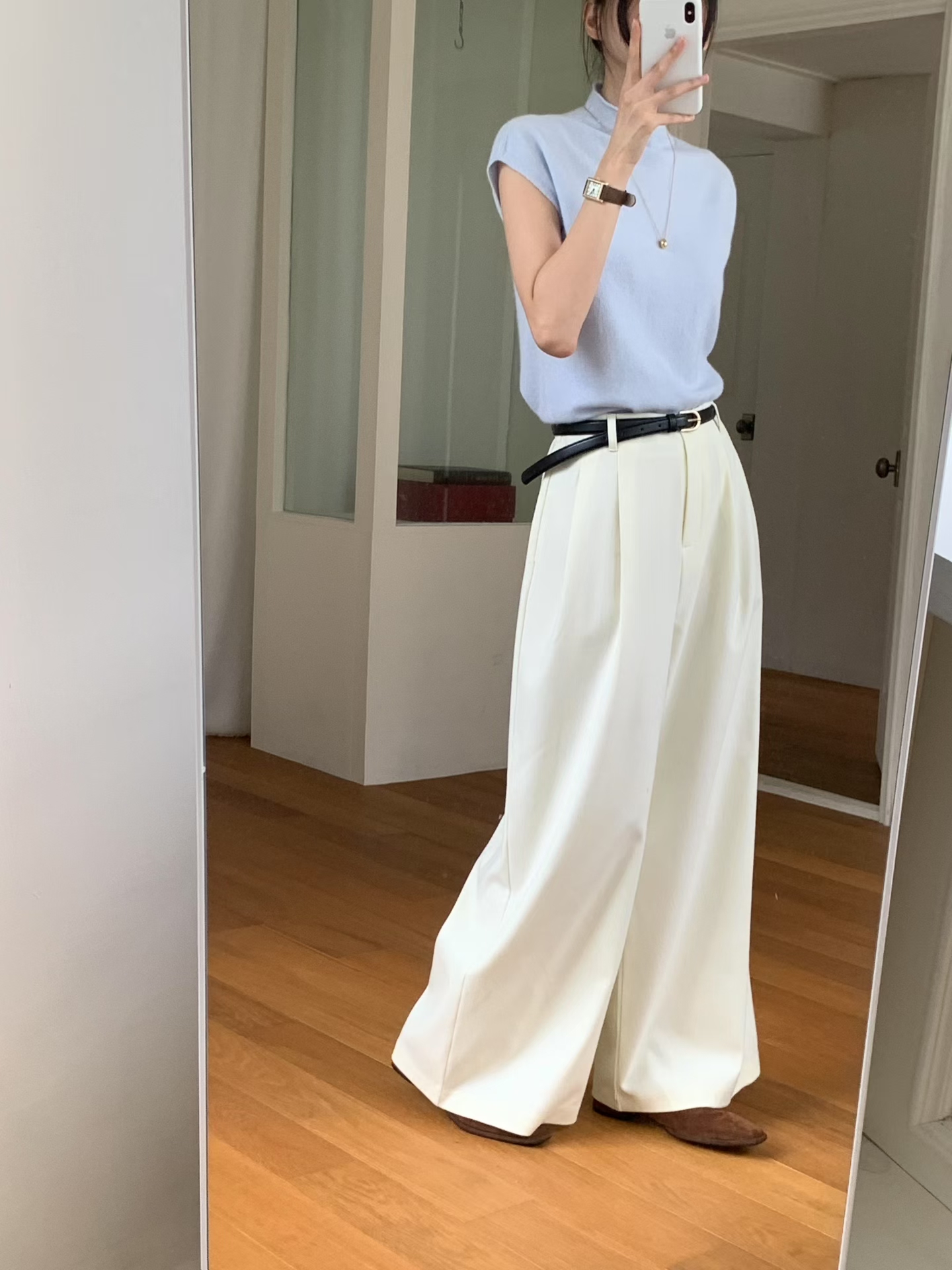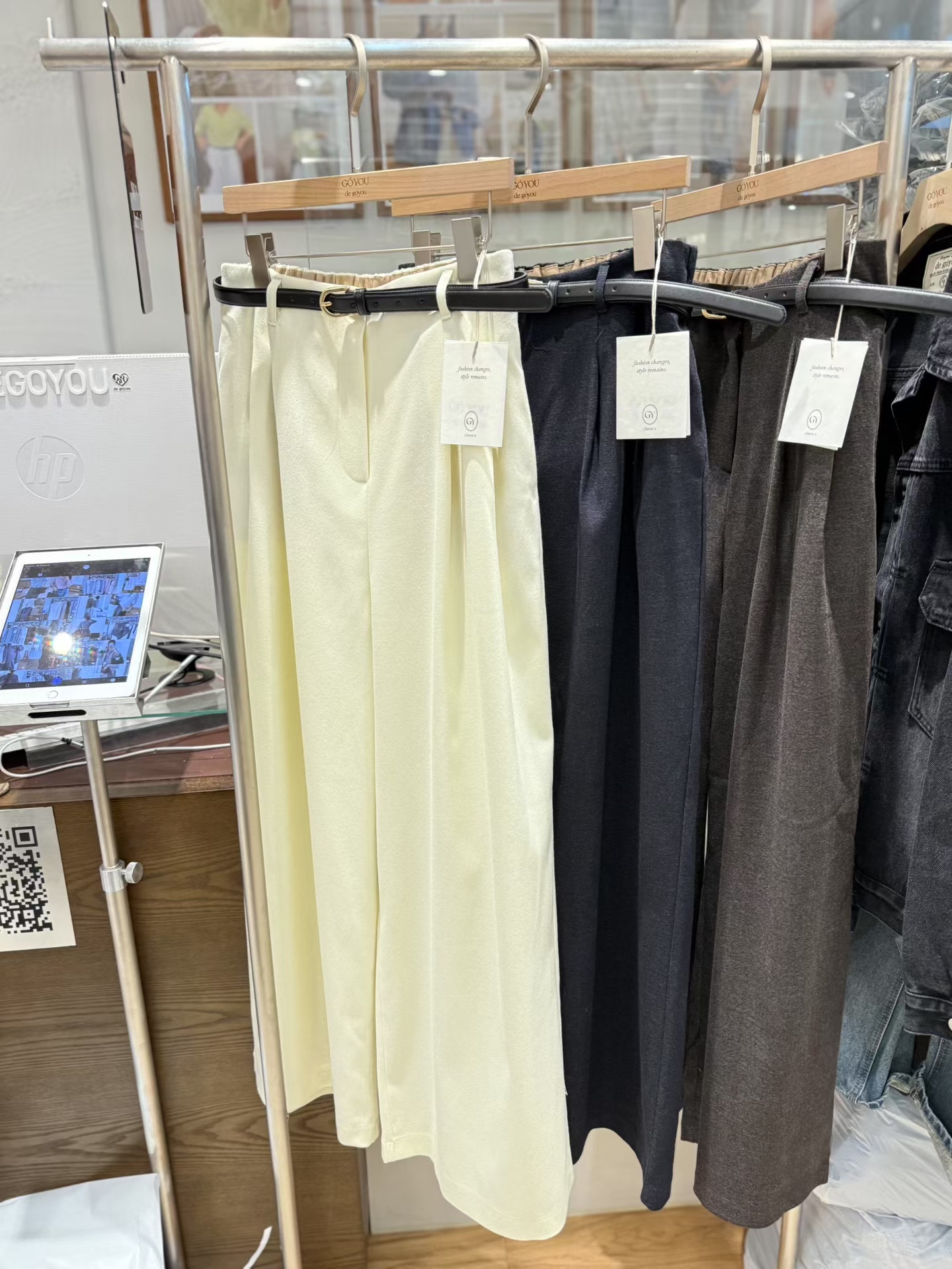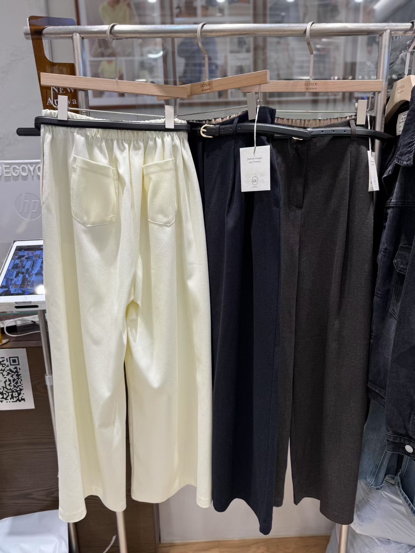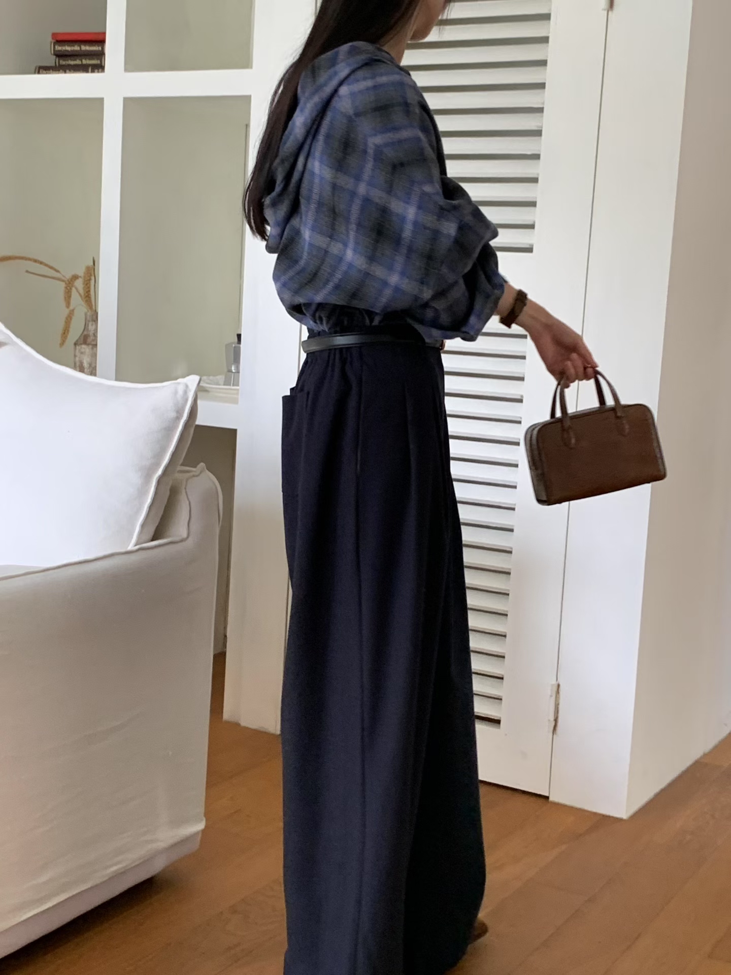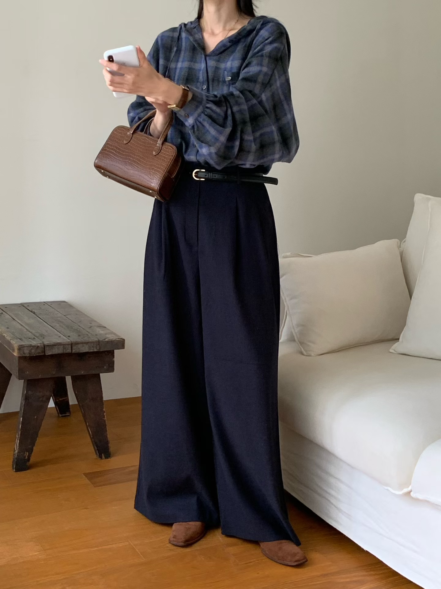 後鬆緊前壓褶秋冬厚款寬褲(附皮帶)