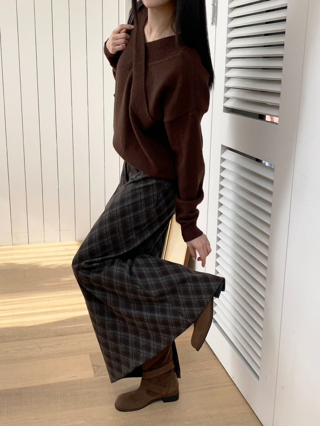(限量款)圓領麻花針織衣+排釦圍脖+鬆緊短褲SET