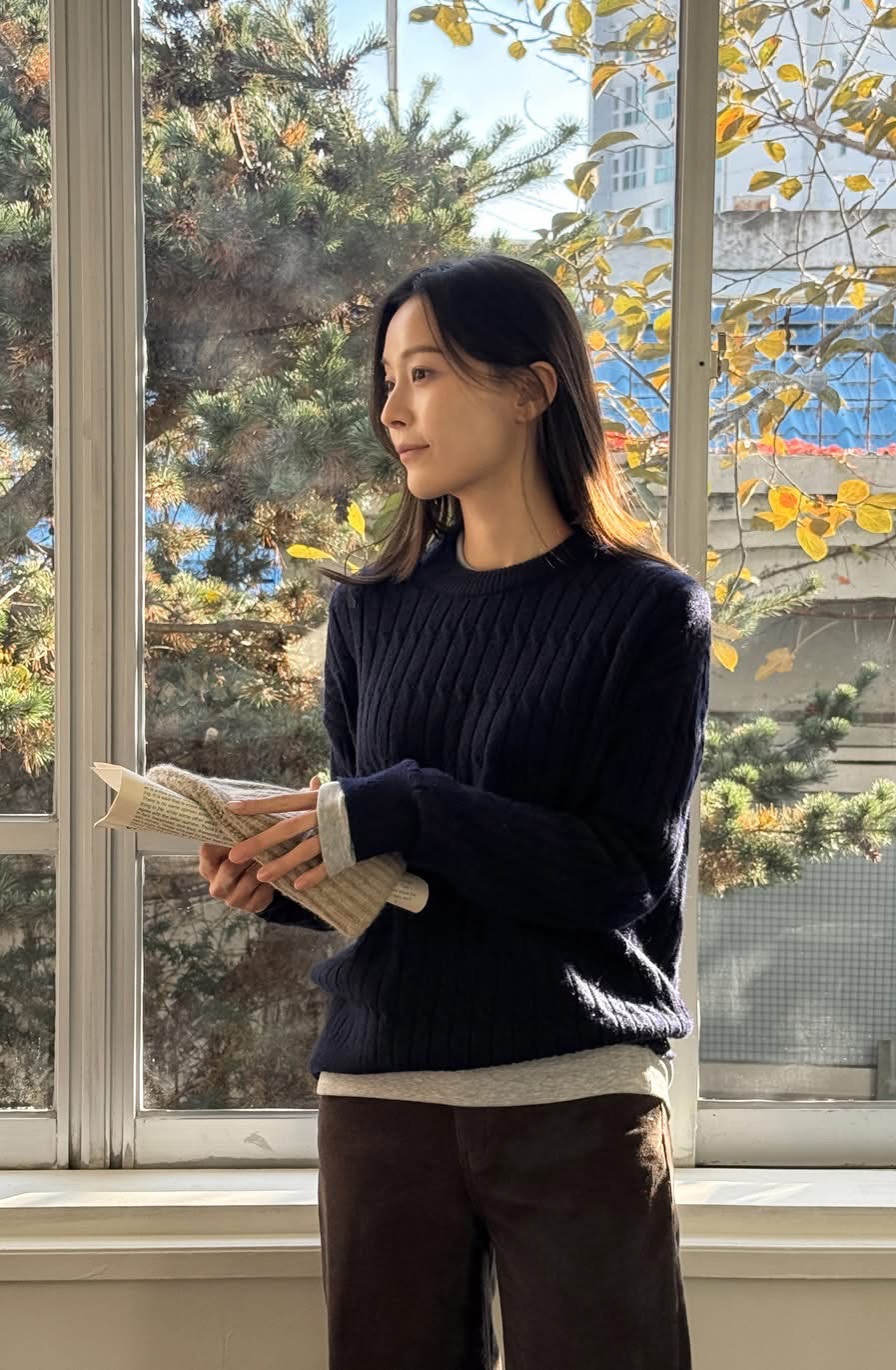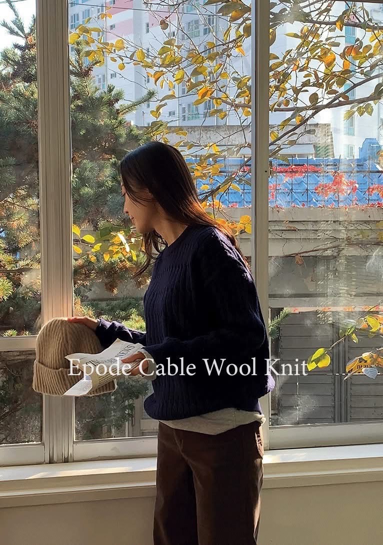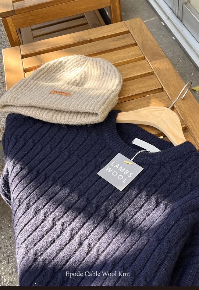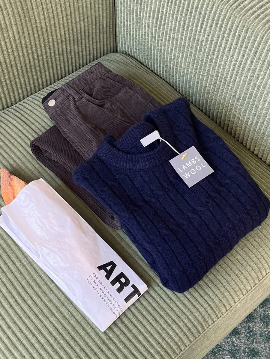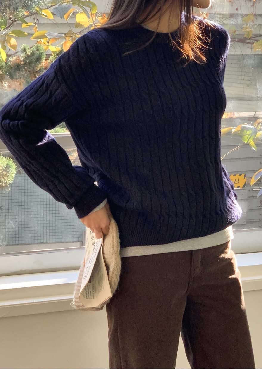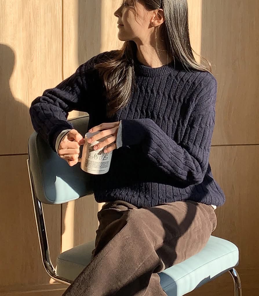 圓領立體扭結麻花羊毛針織衣(羊毛5%)