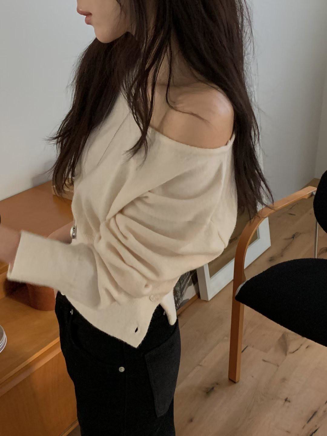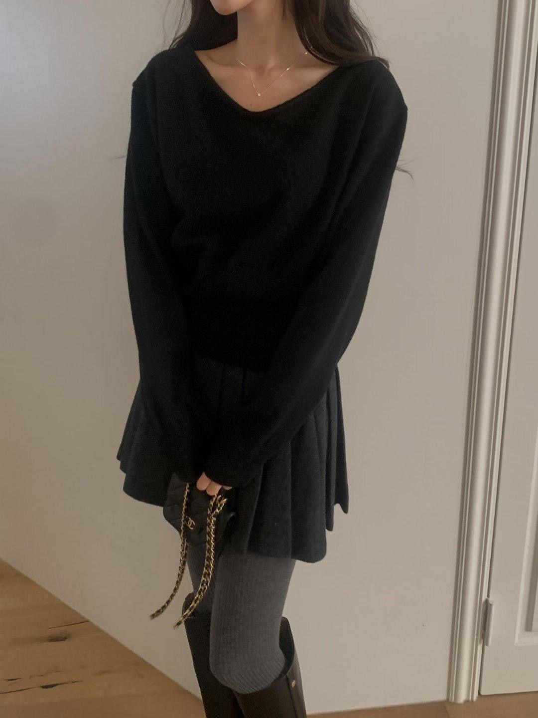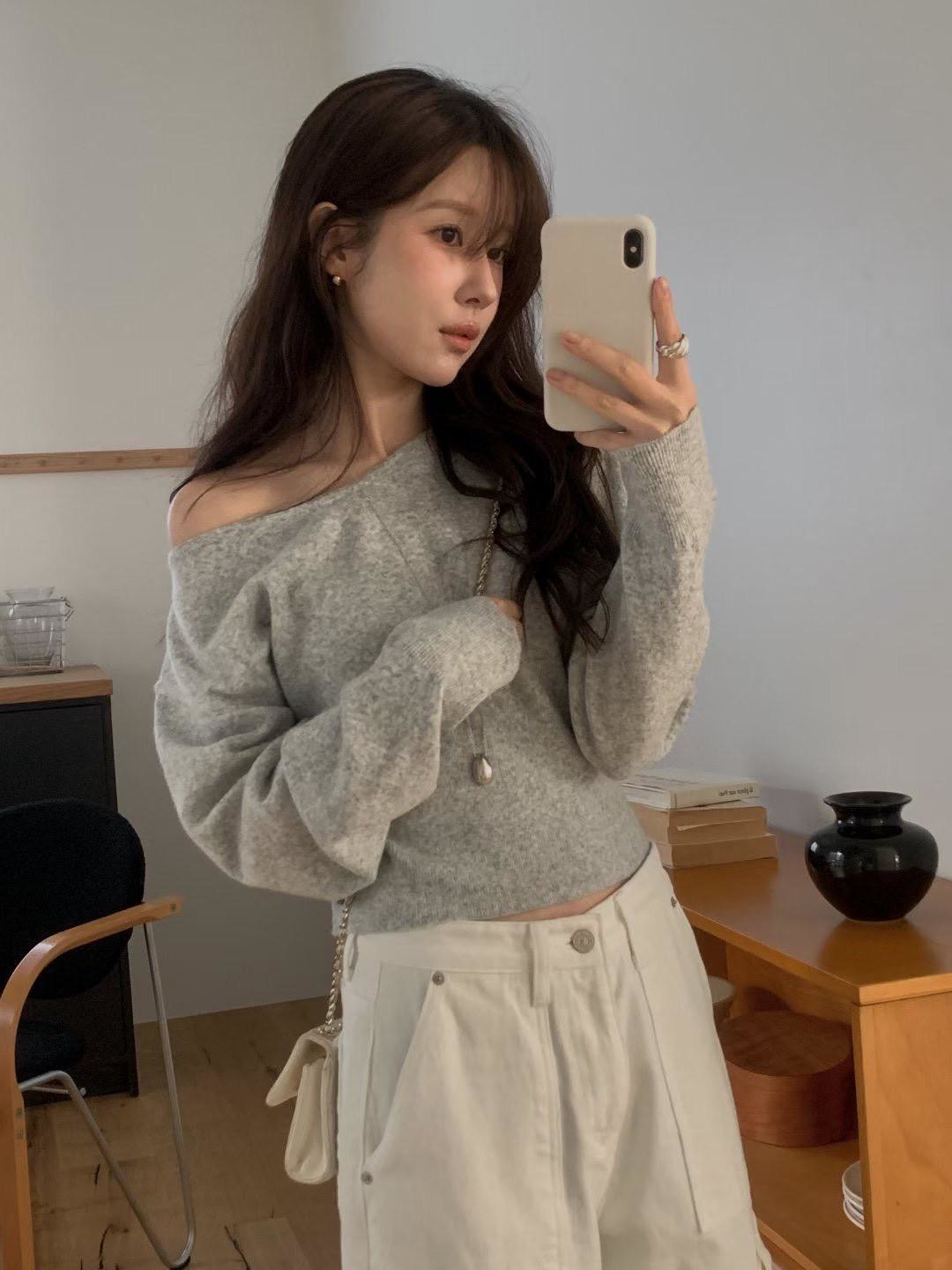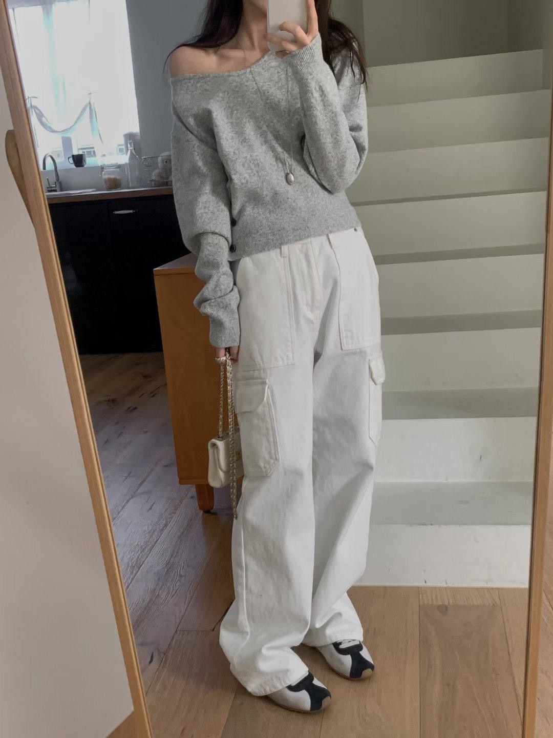 斜肩長版麻花針織衣+鬆緊落地長裙SET