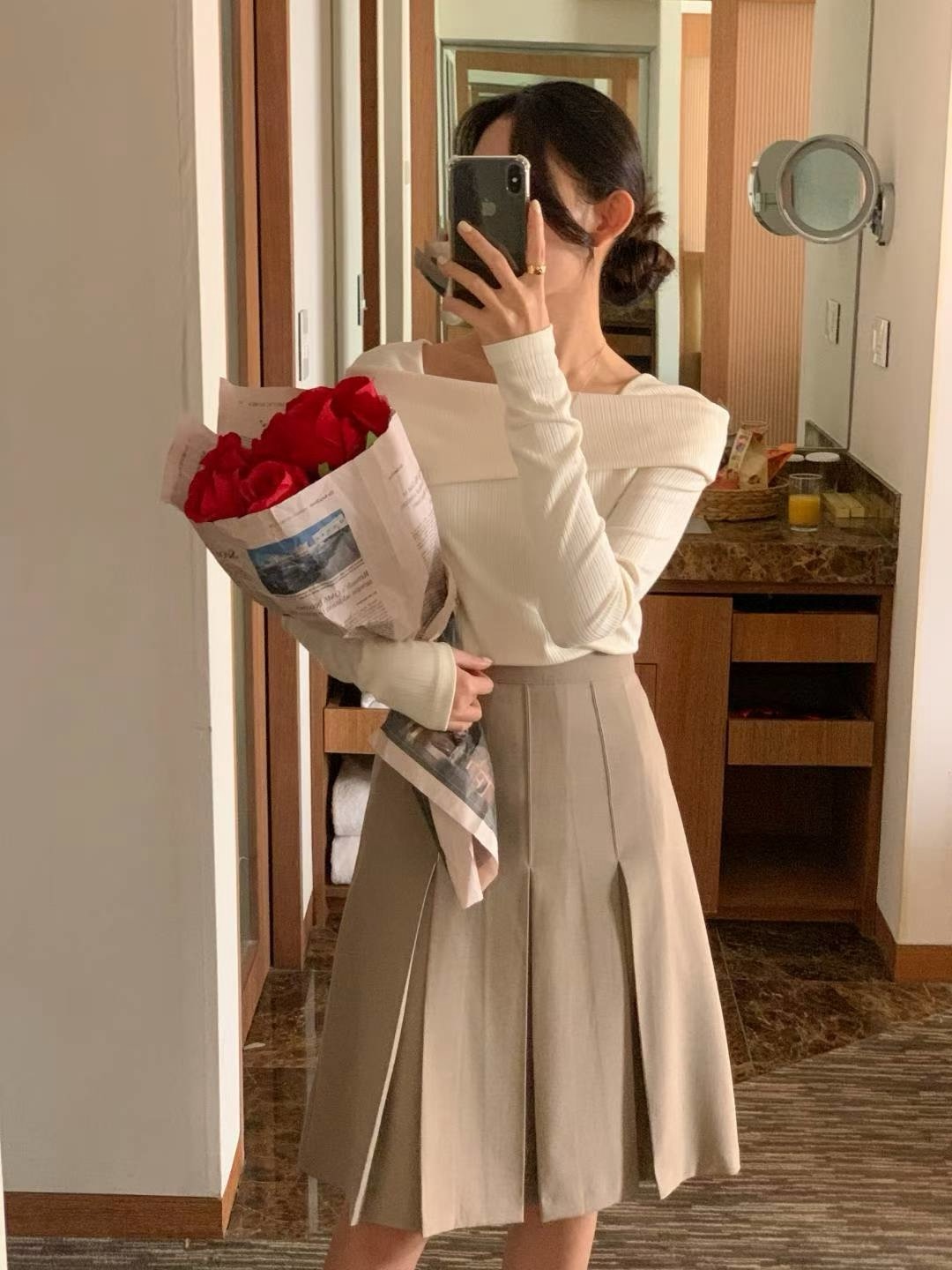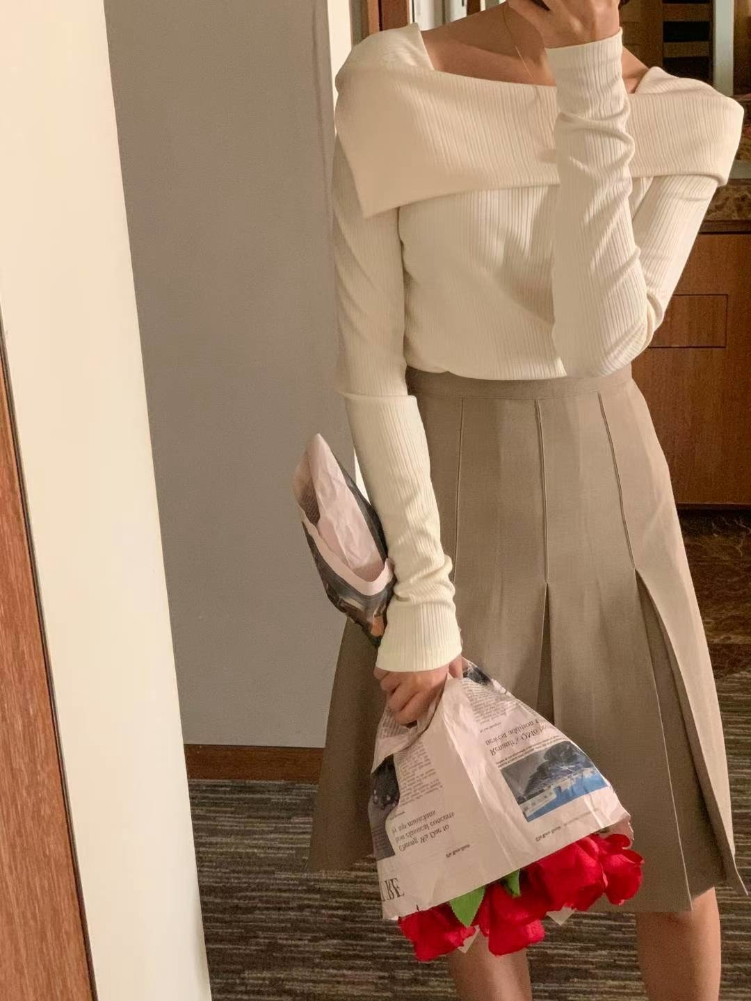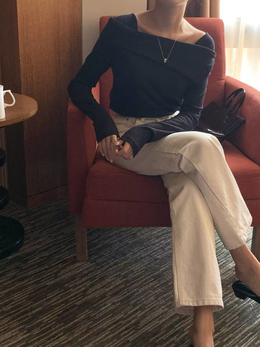落肩寬鬆橫紋鏤空微透薄針織衫