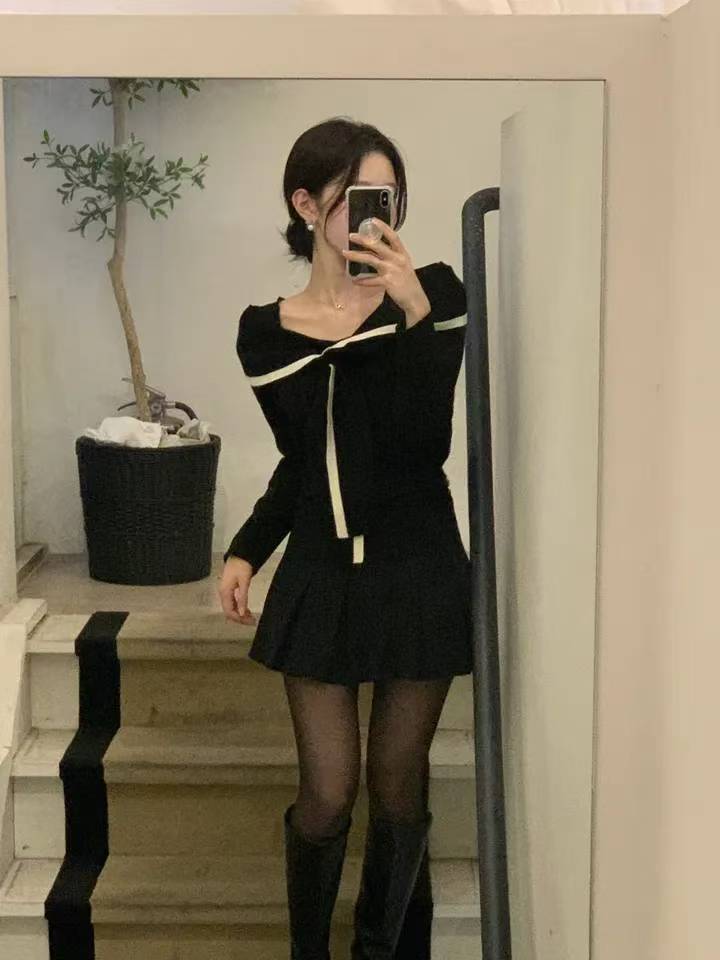 雪花排扣針織衫+鬆緊針織短裙SET