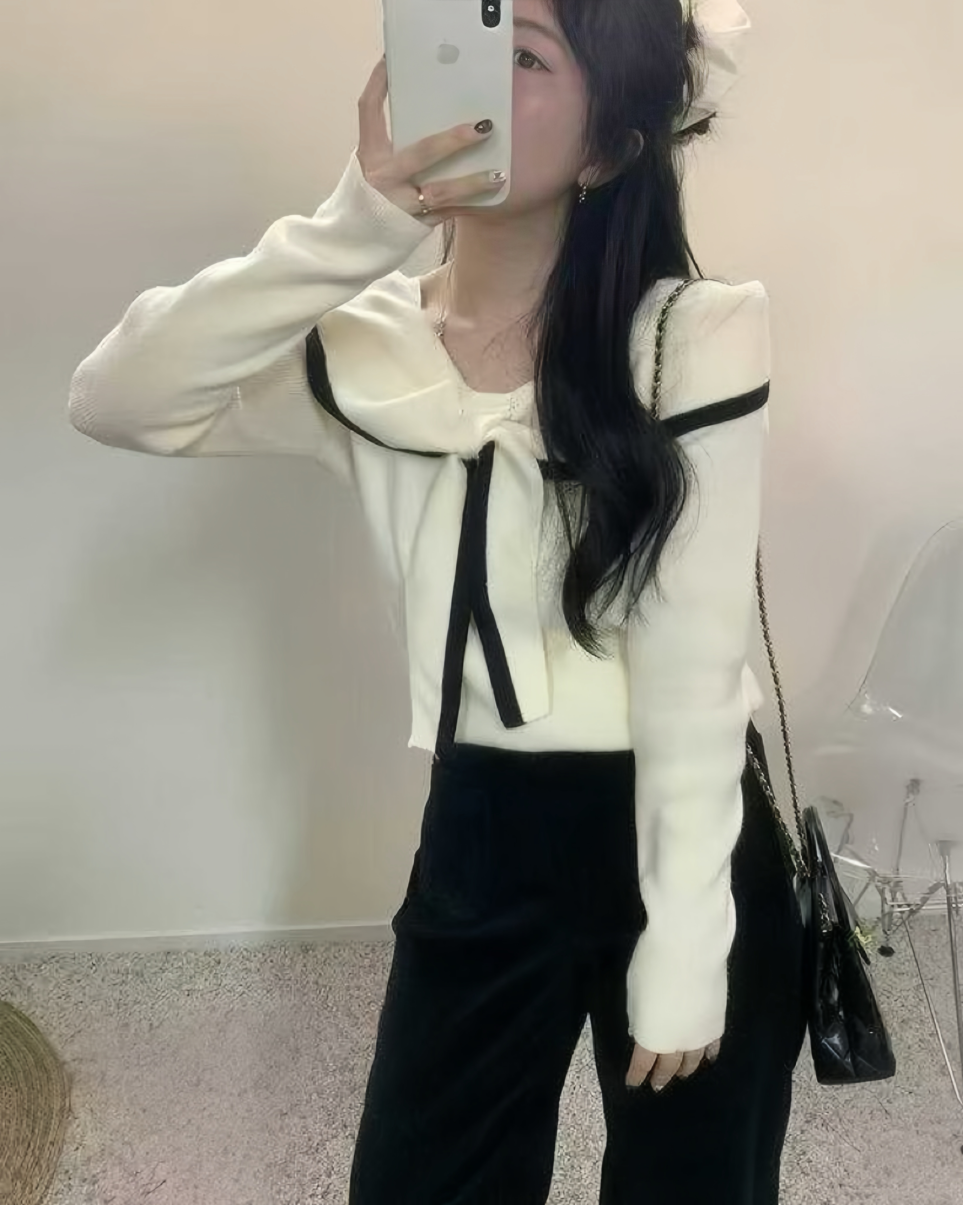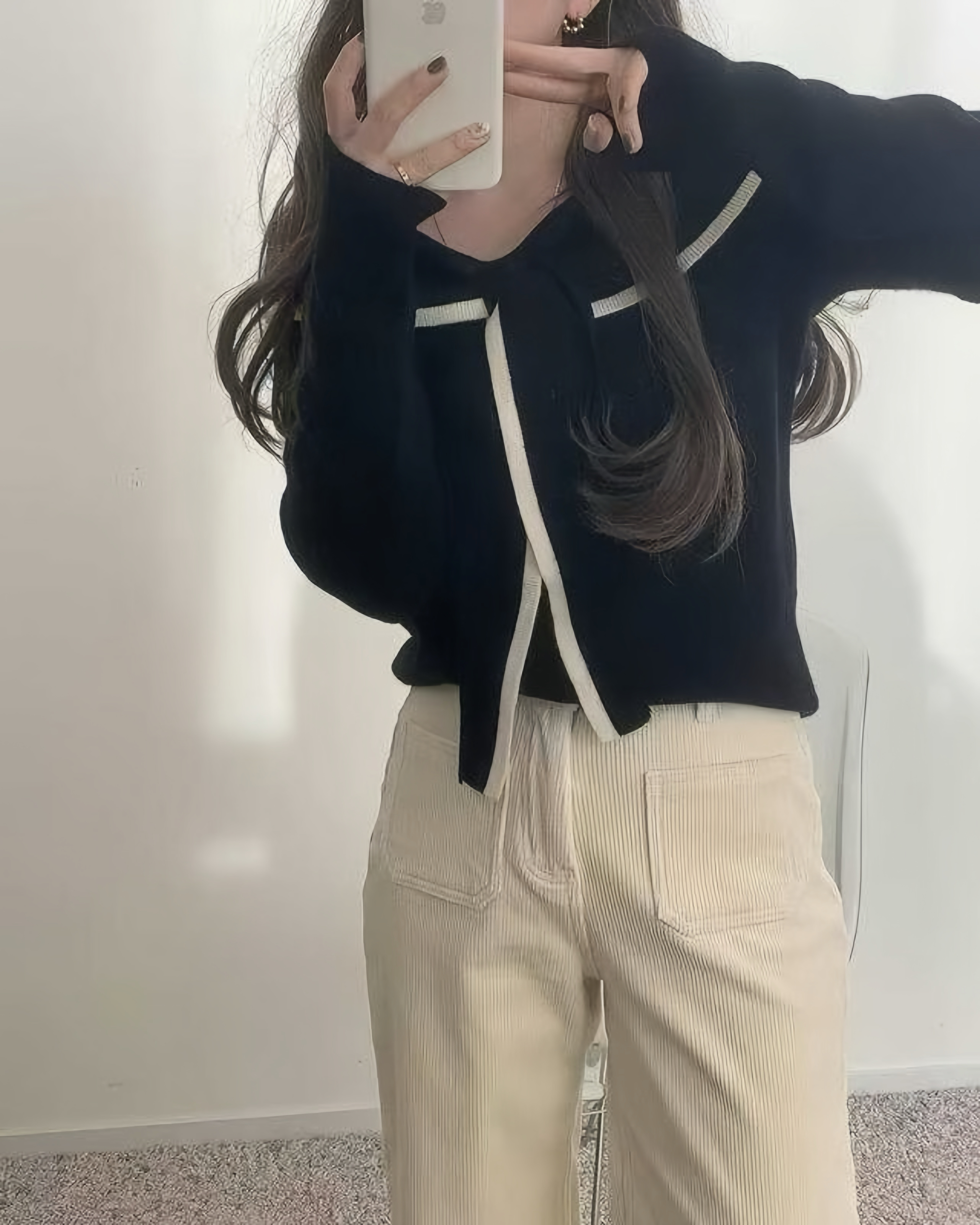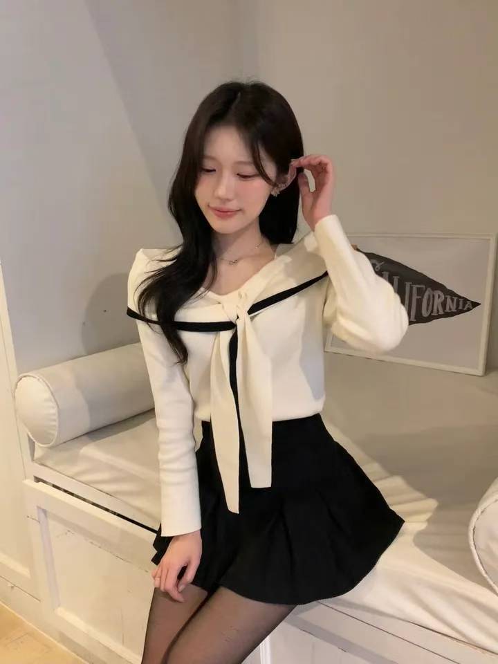 撞色翻領綁結薄款針織衫
