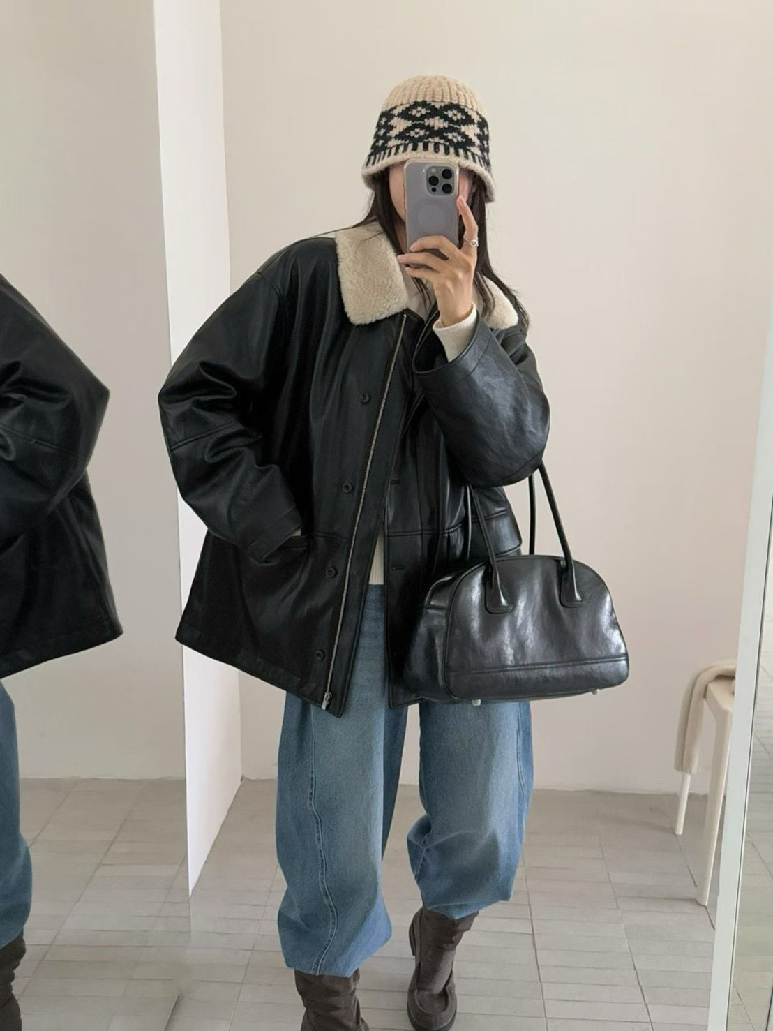 翻領拉鍊短版手工羊毛外套