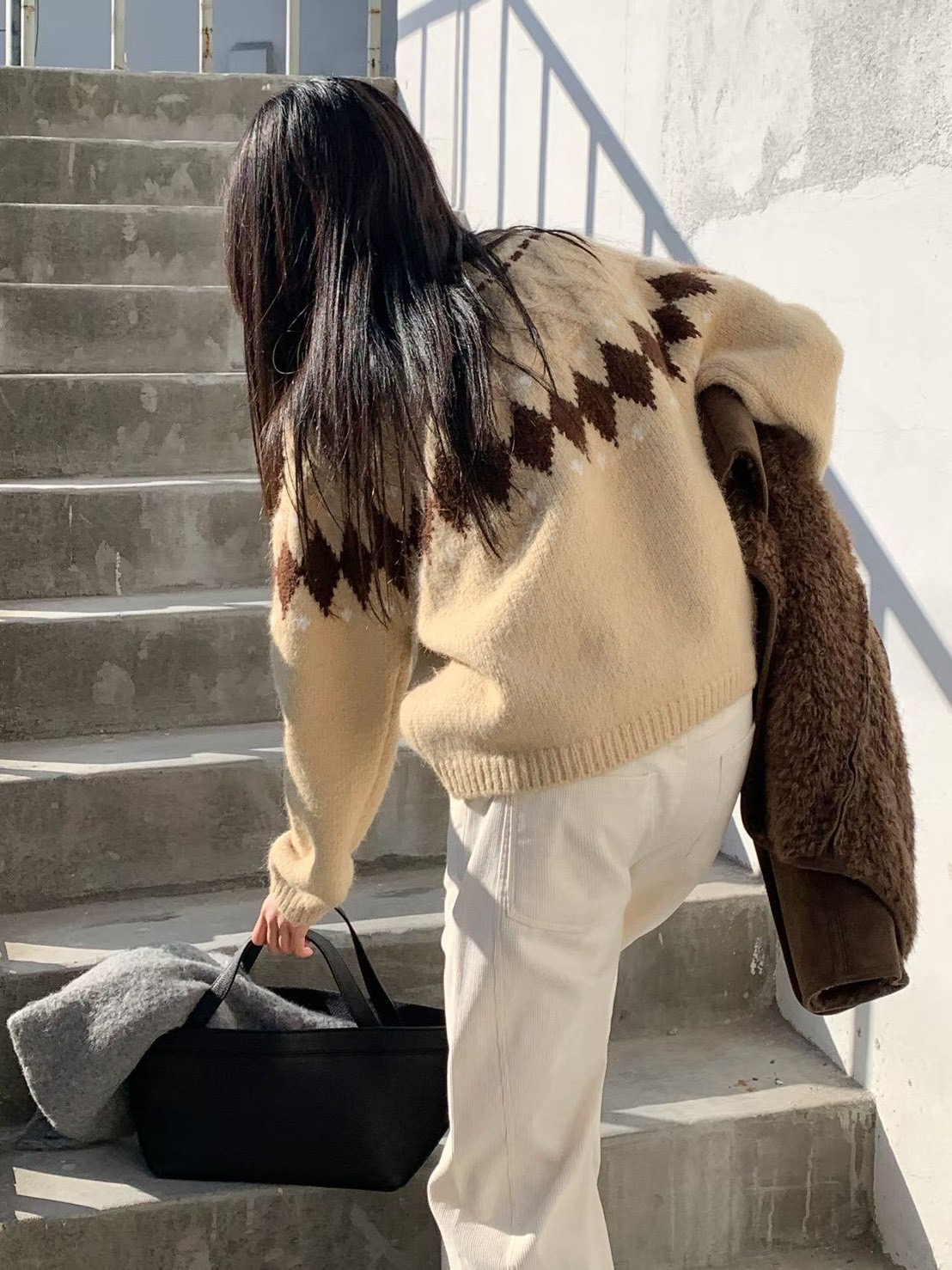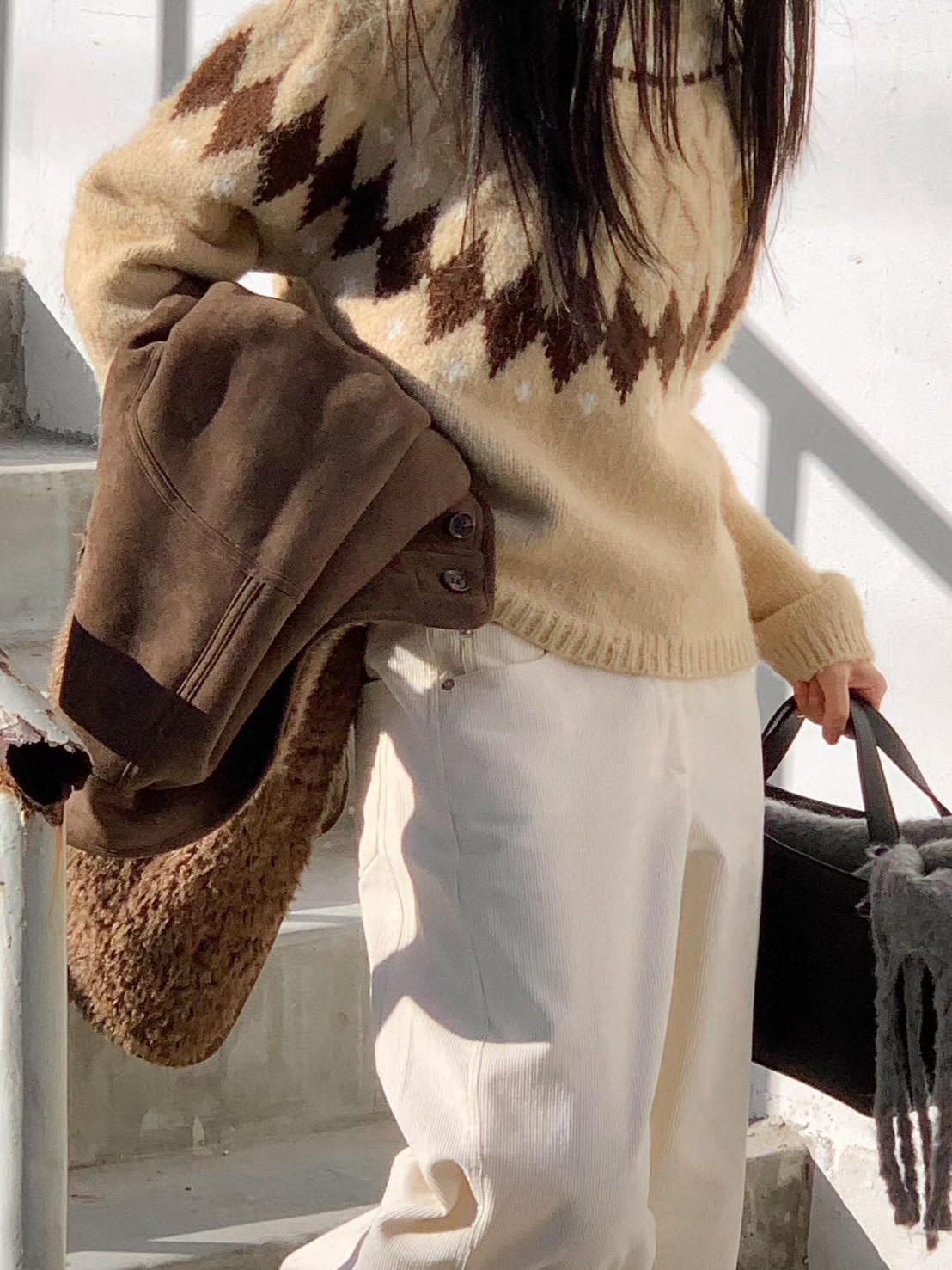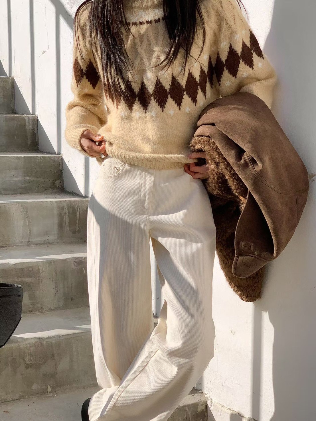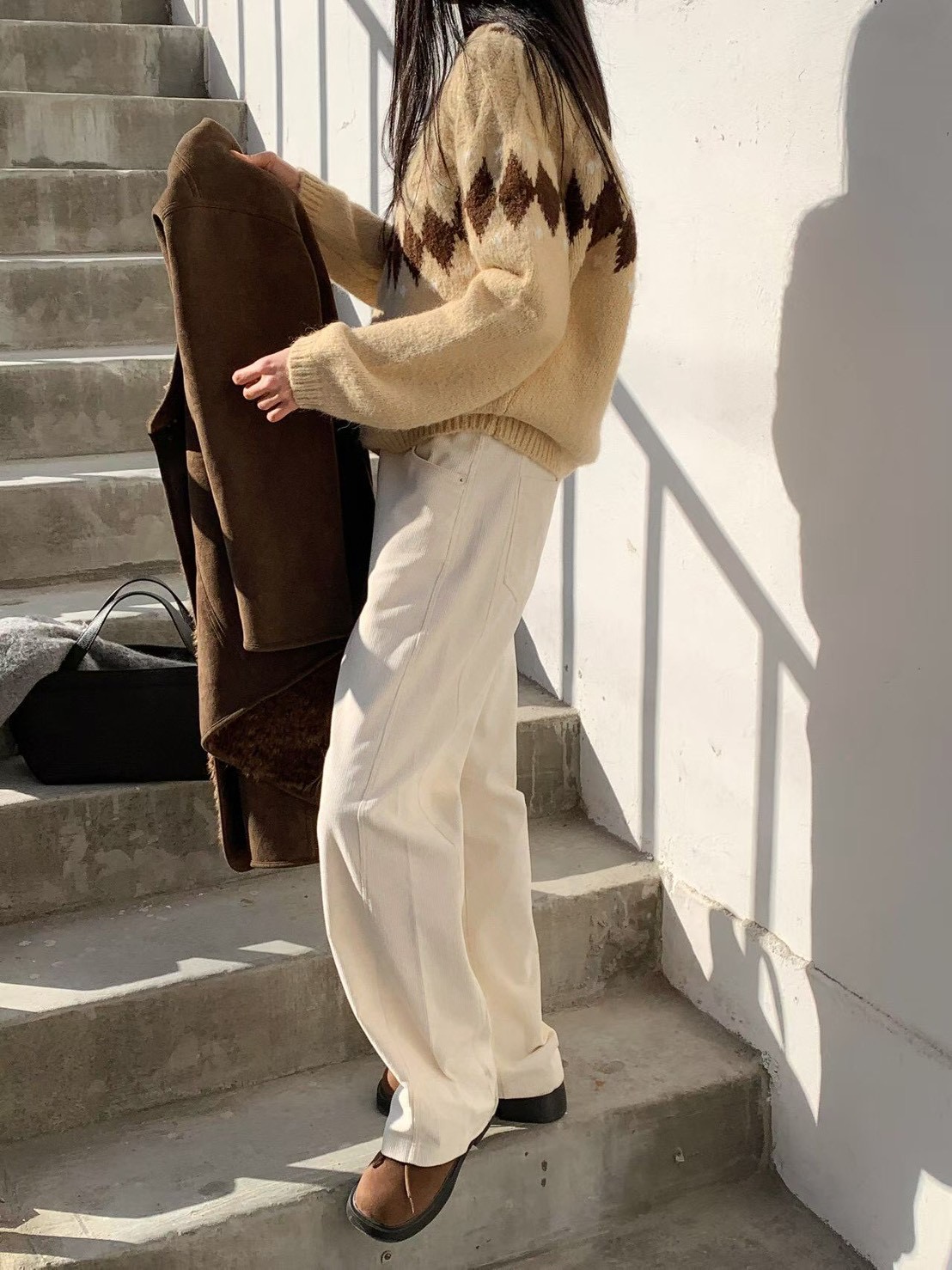 圓領針織上衣+連帽圍巾+長褲三件套SET