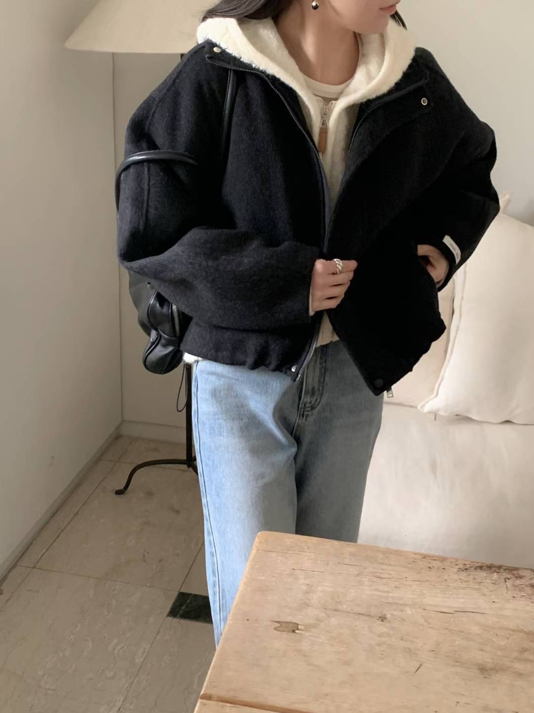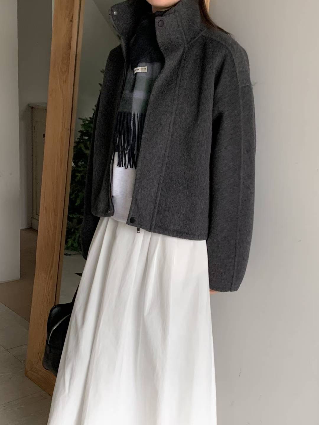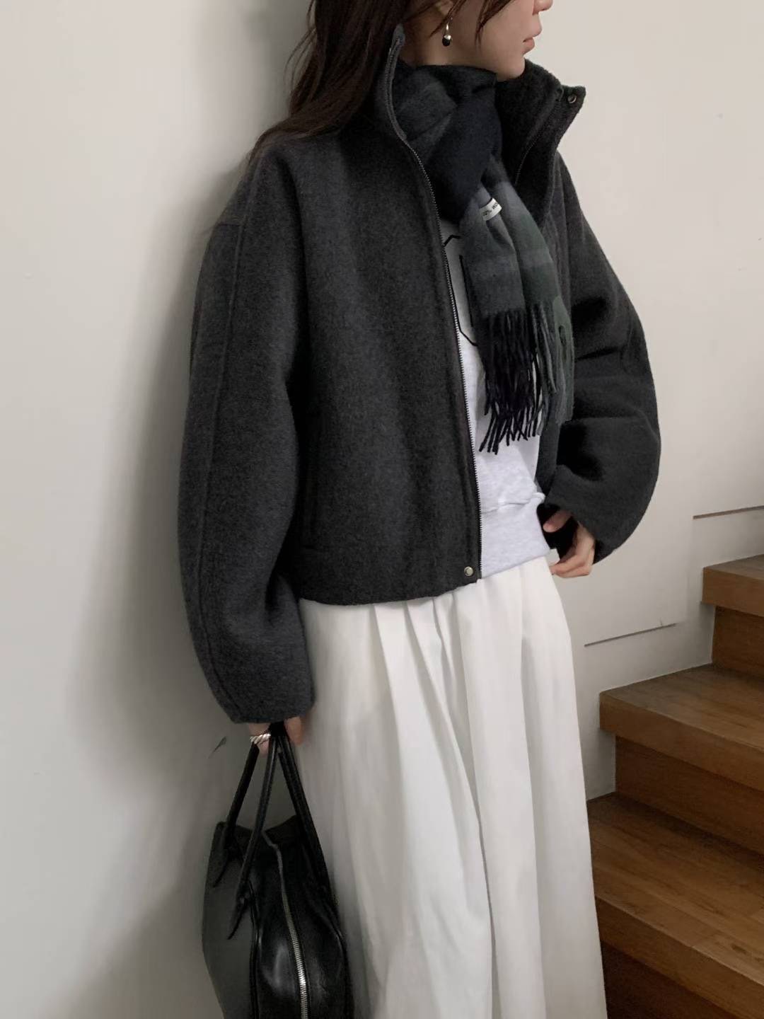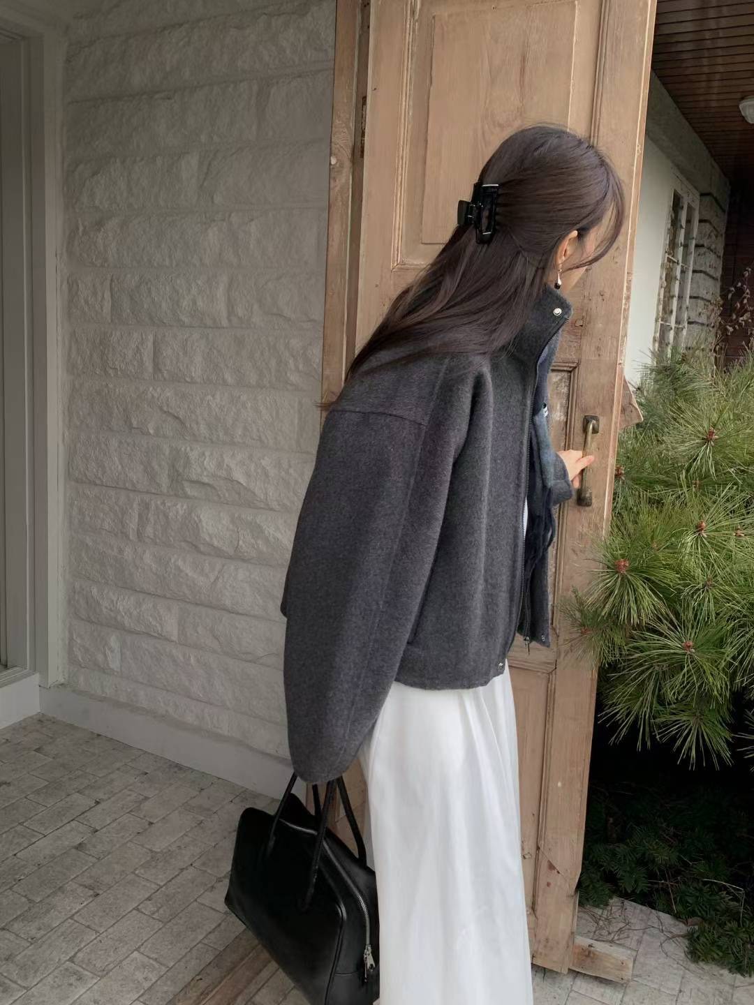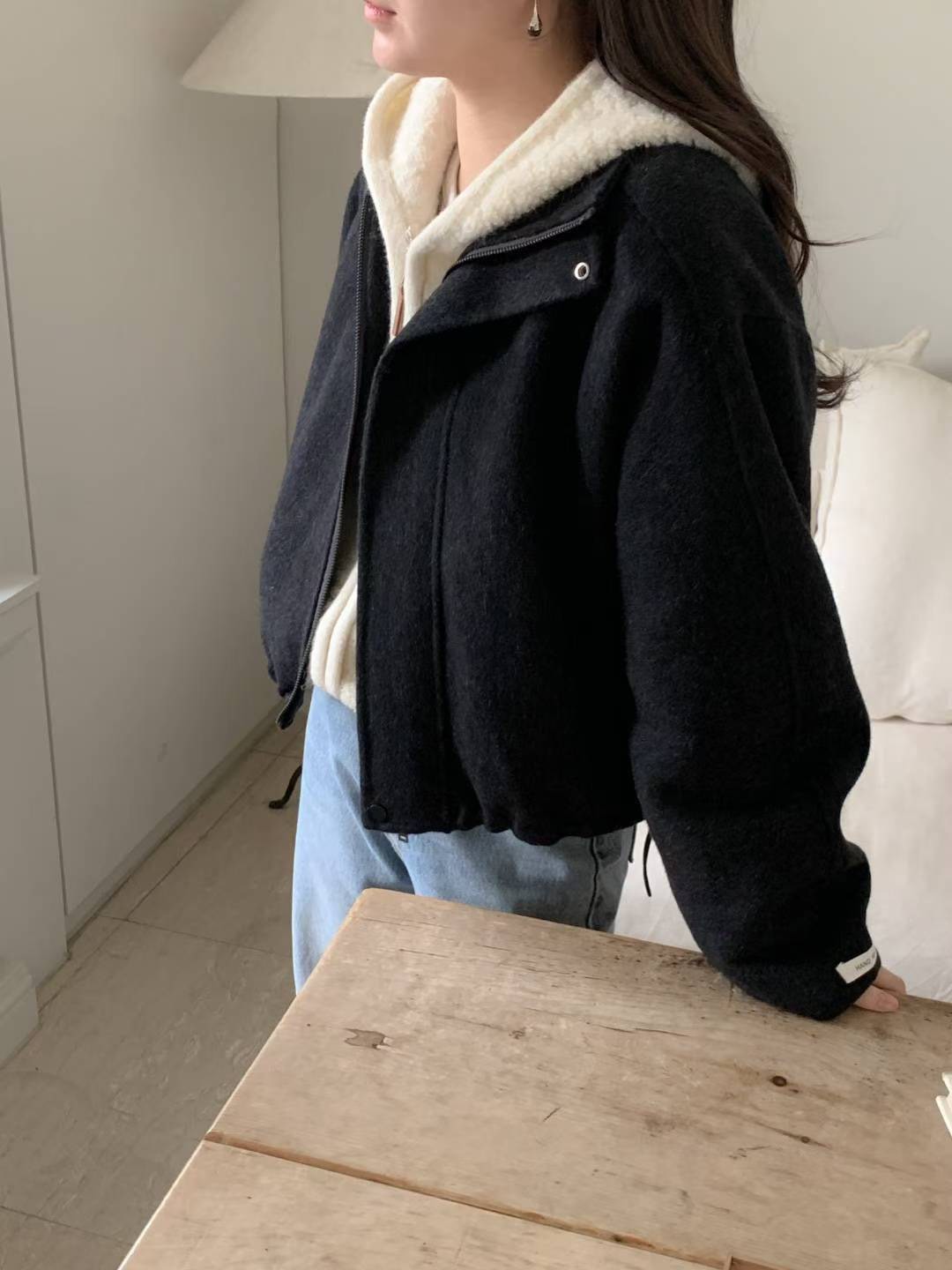 簡約羊毛拉鍊短版夾克(羊毛70%)