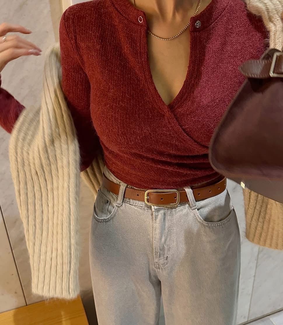斜肩下擺排釦素色柔軟羊毛上衣(羊毛10%+安格拉羊毛5%)