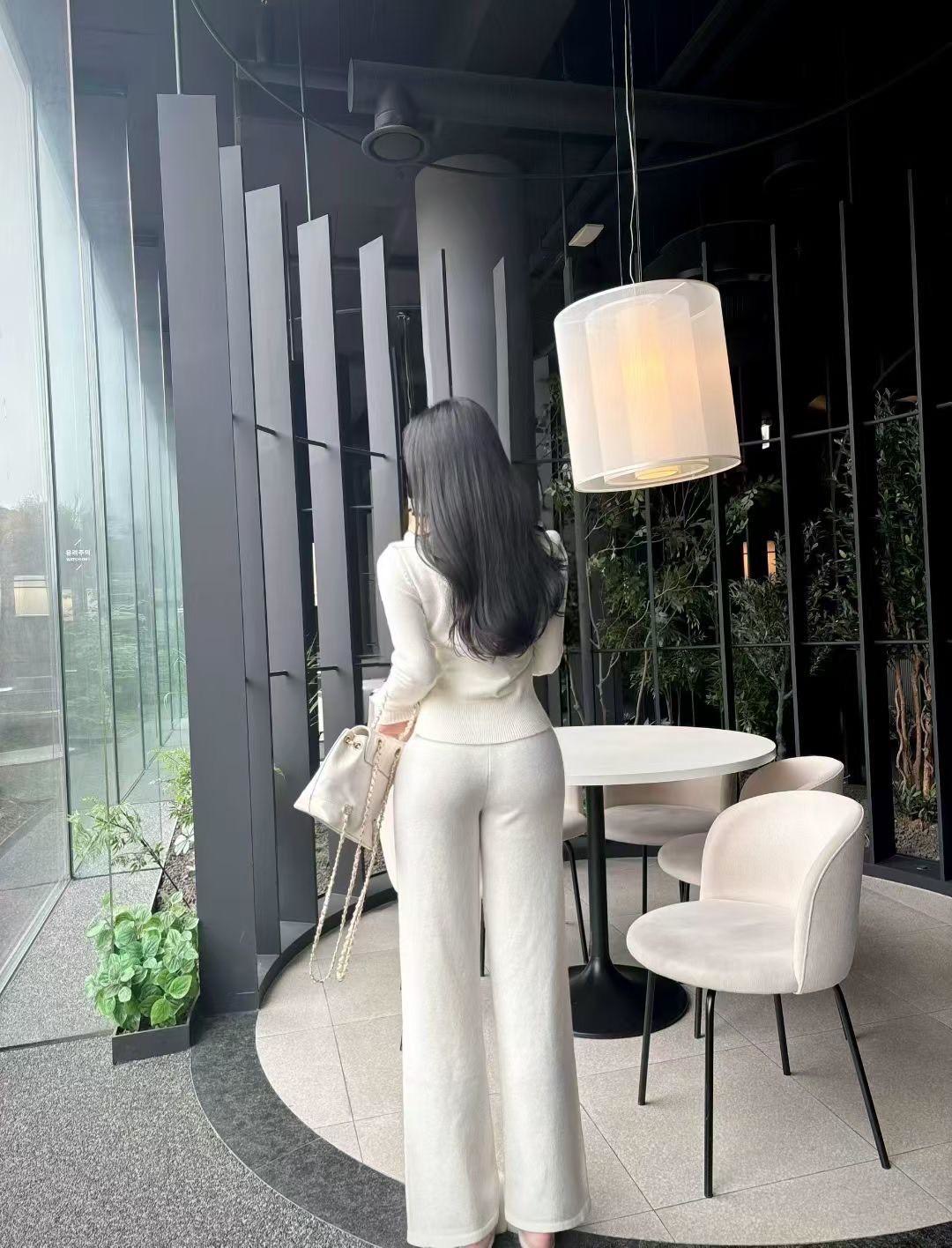 後口袋磨毛滾邊內刷薄毛直筒牛仔褲