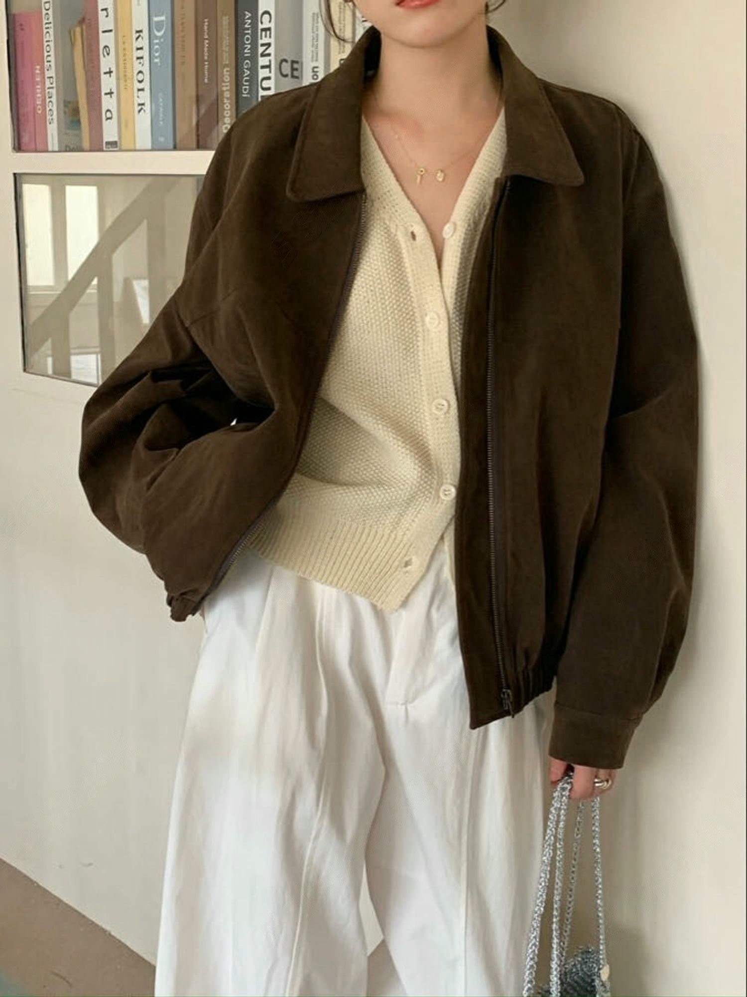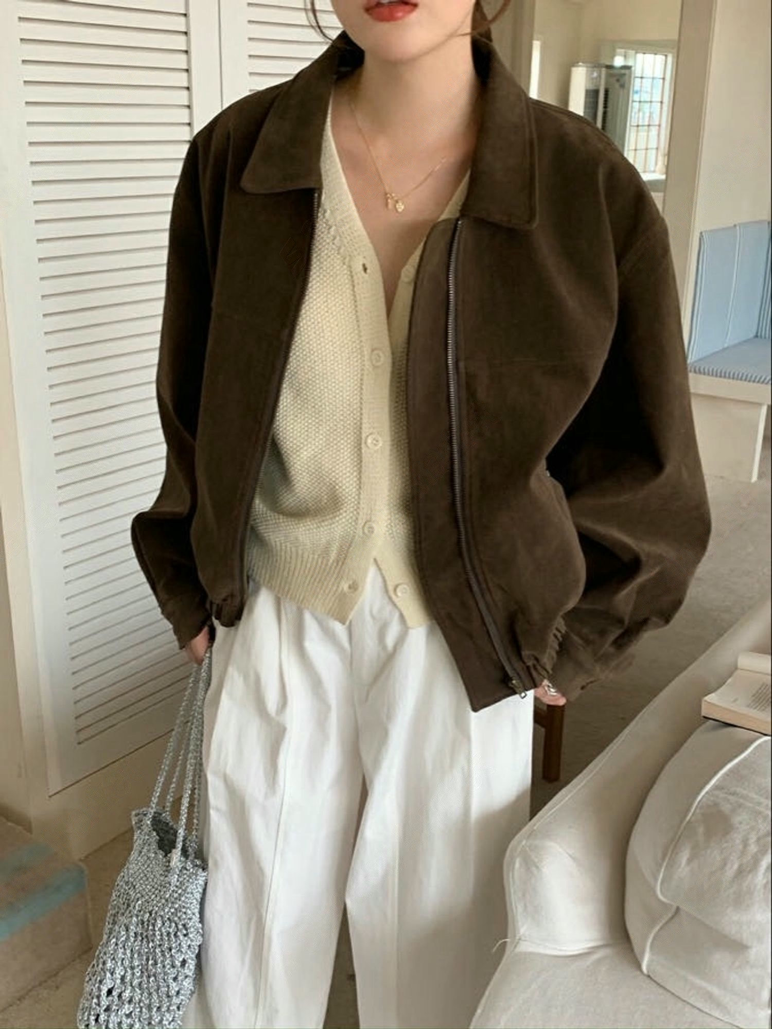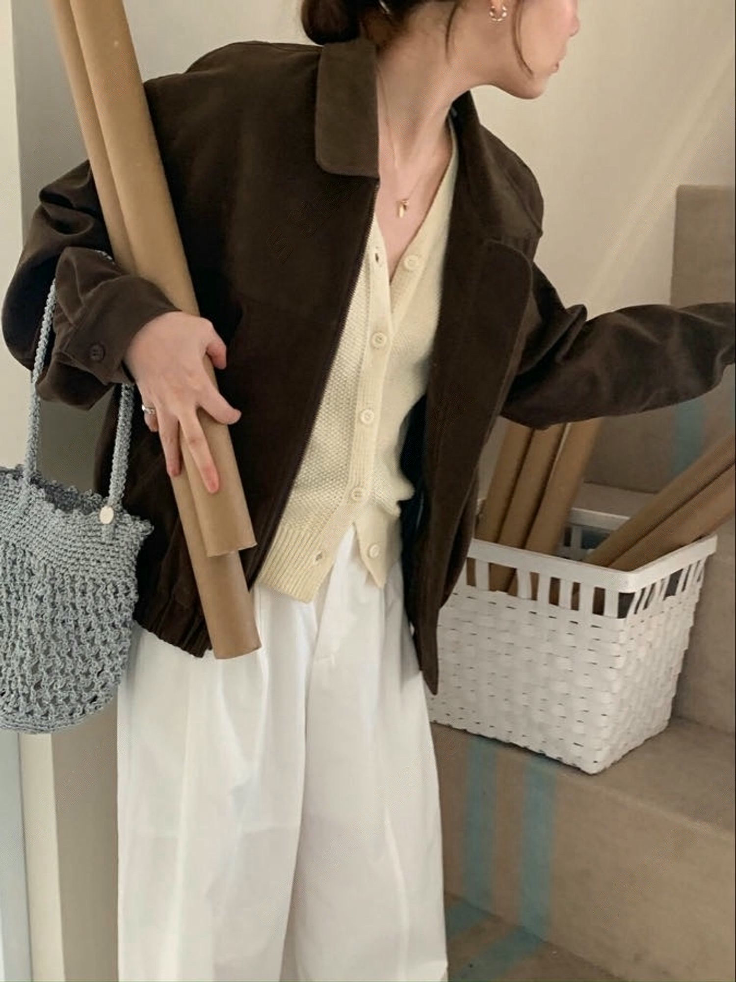 圓領銀扣金蔥小香外套+織紋短裙SET