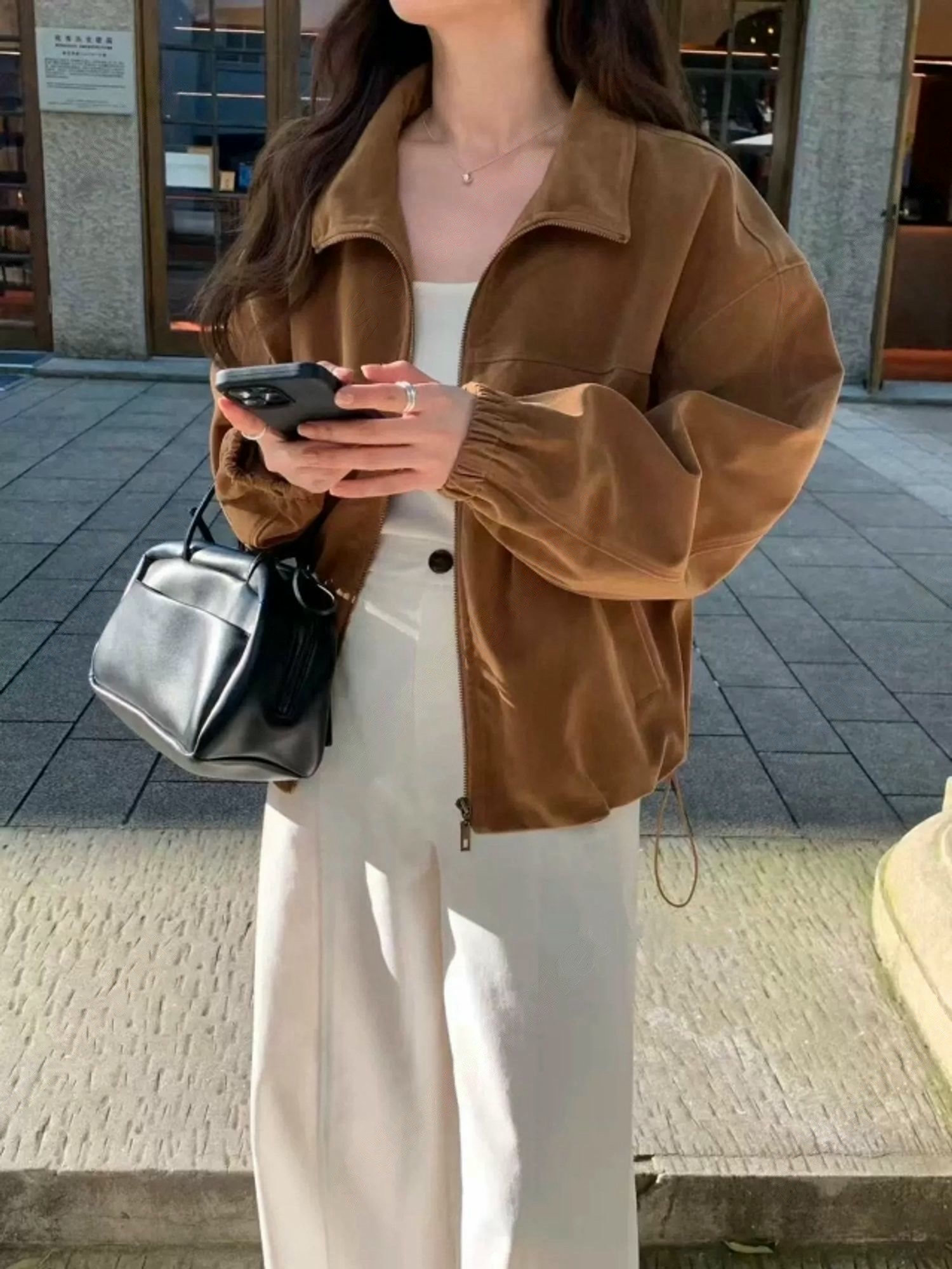 內磨毛可斜肩T+鬆緊落地磨毛長裙SET(可拆買)