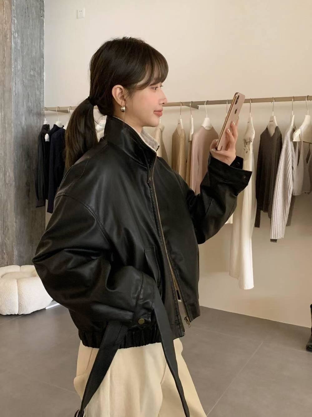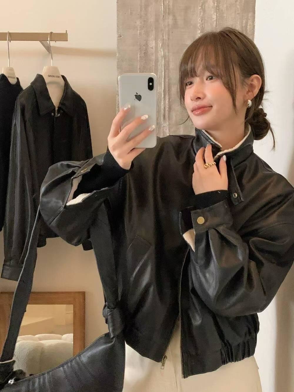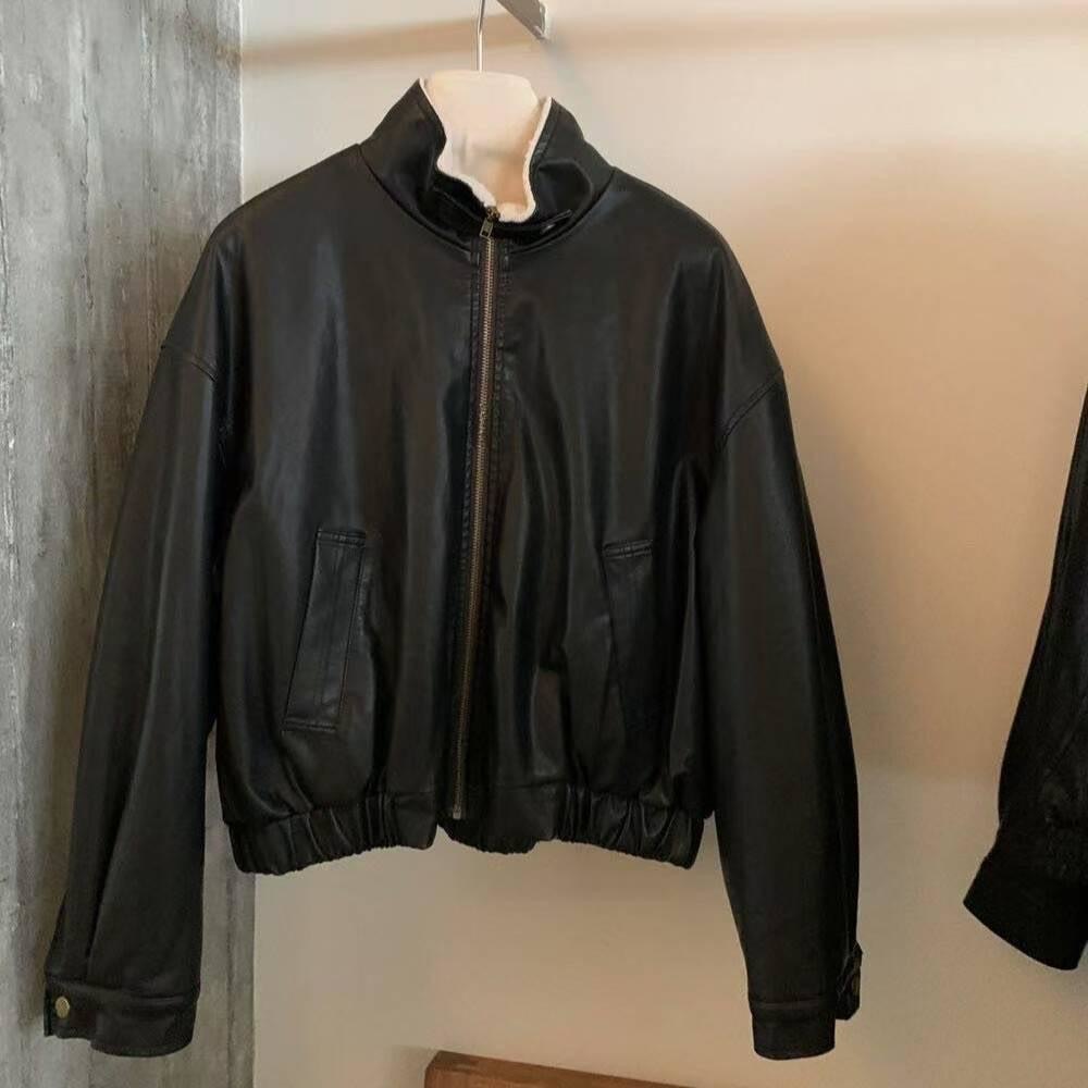 內磨毛仿皮夾克外套