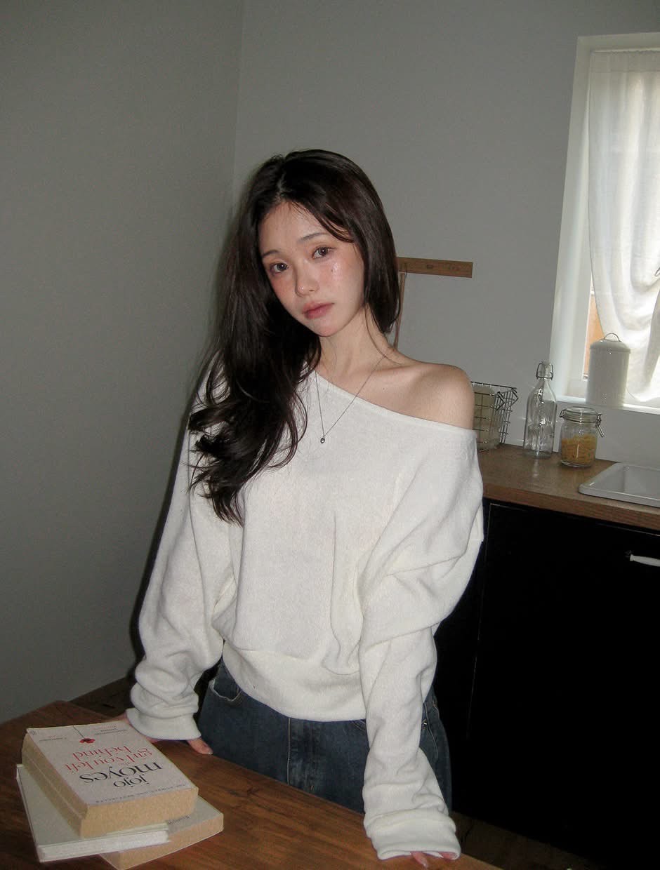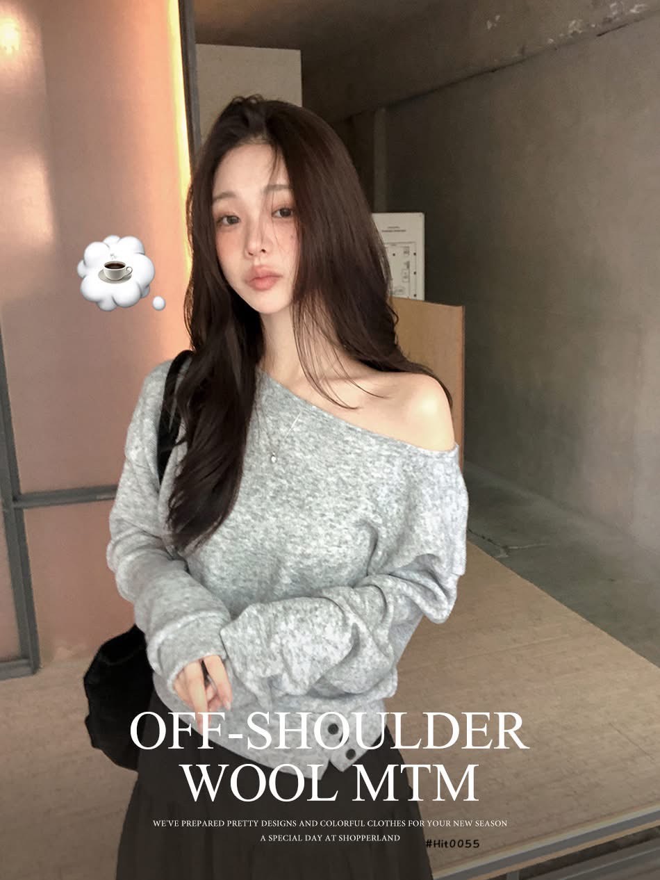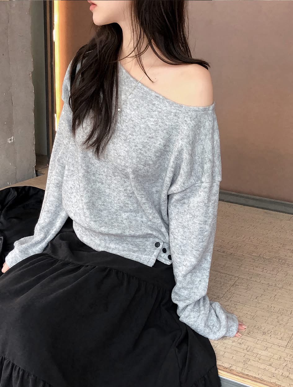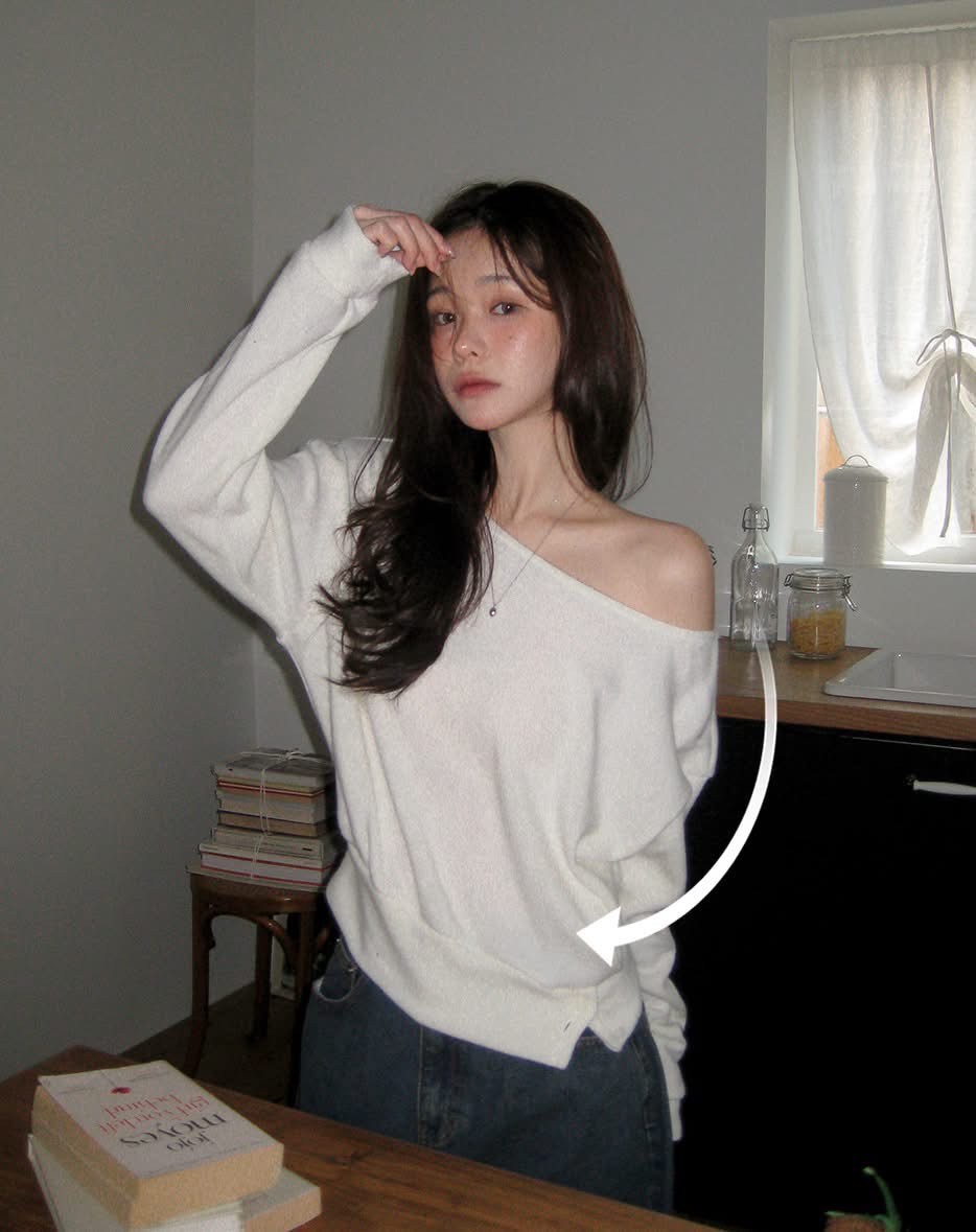 斜肩下擺排釦素色柔軟羊毛上衣(羊毛10%+安格拉羊毛5%)