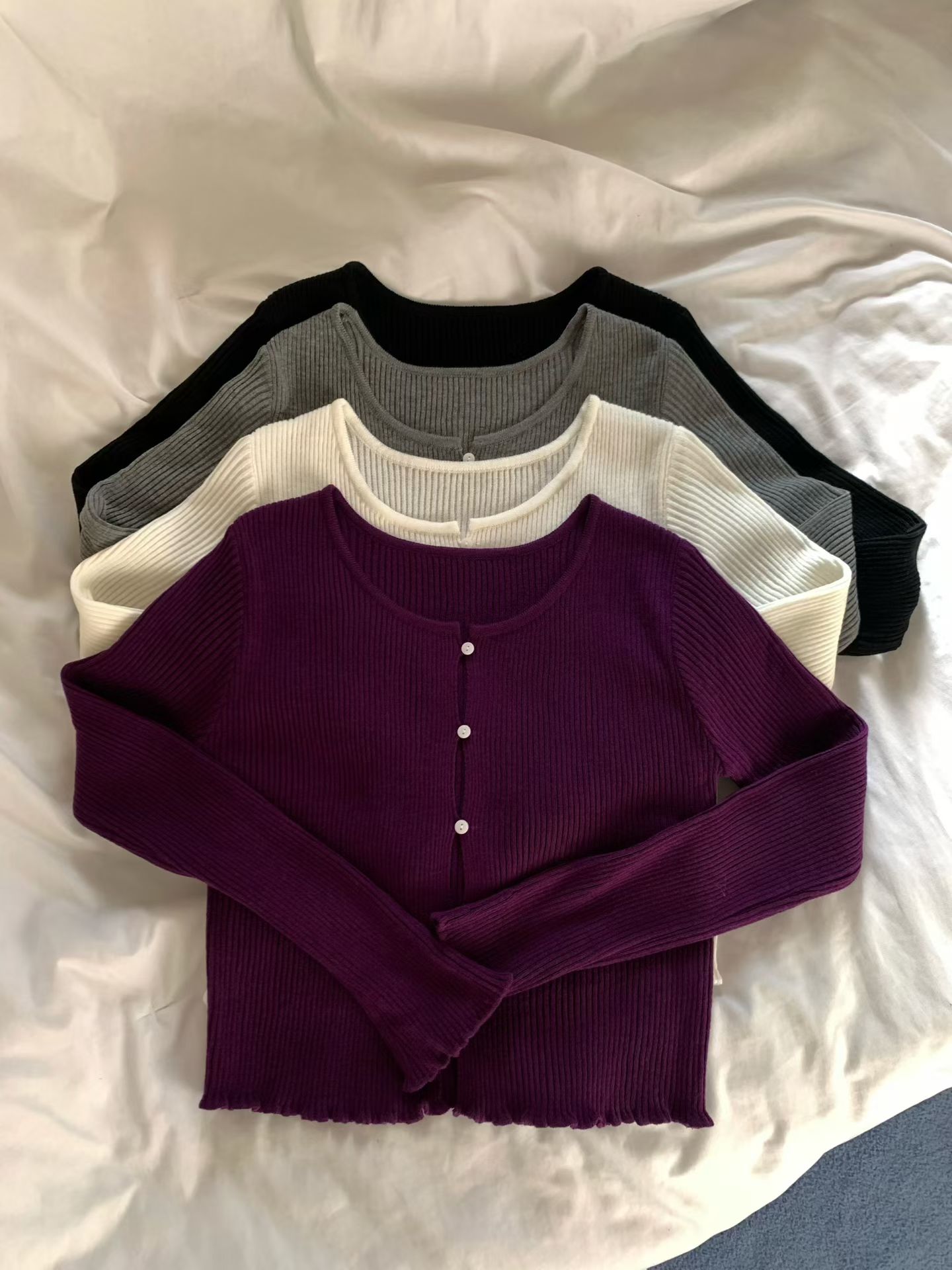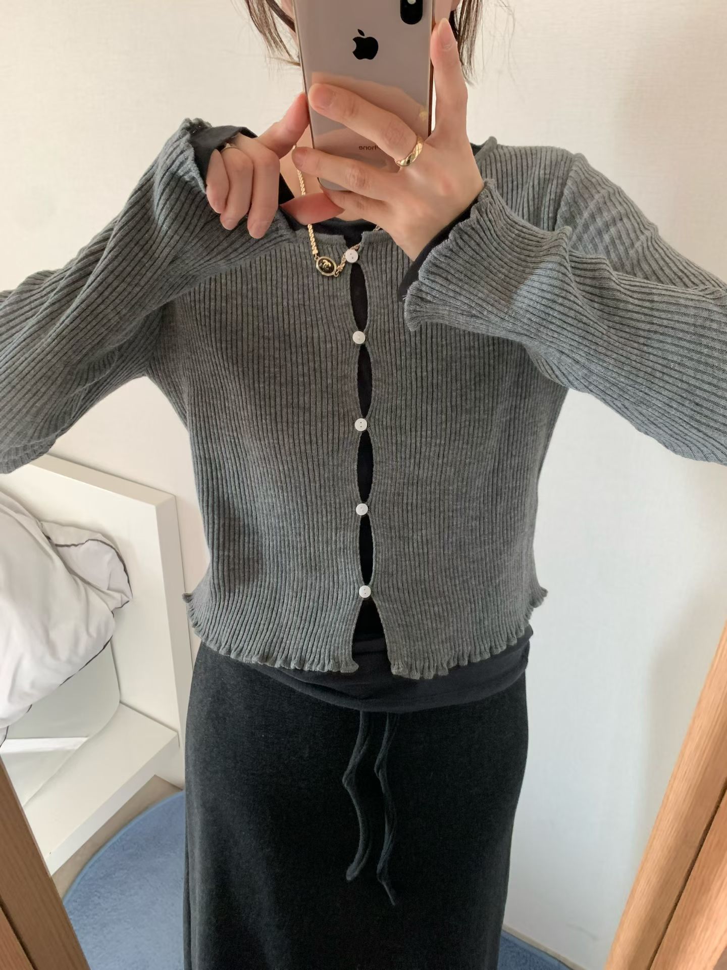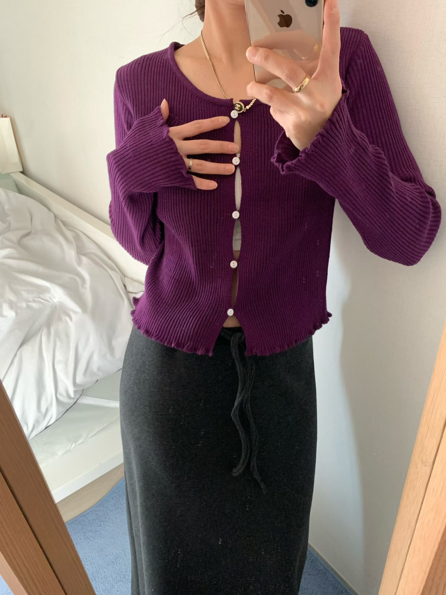 斜肩下擺排釦素色柔軟羊毛上衣(羊毛10%+安格拉羊毛5%)
