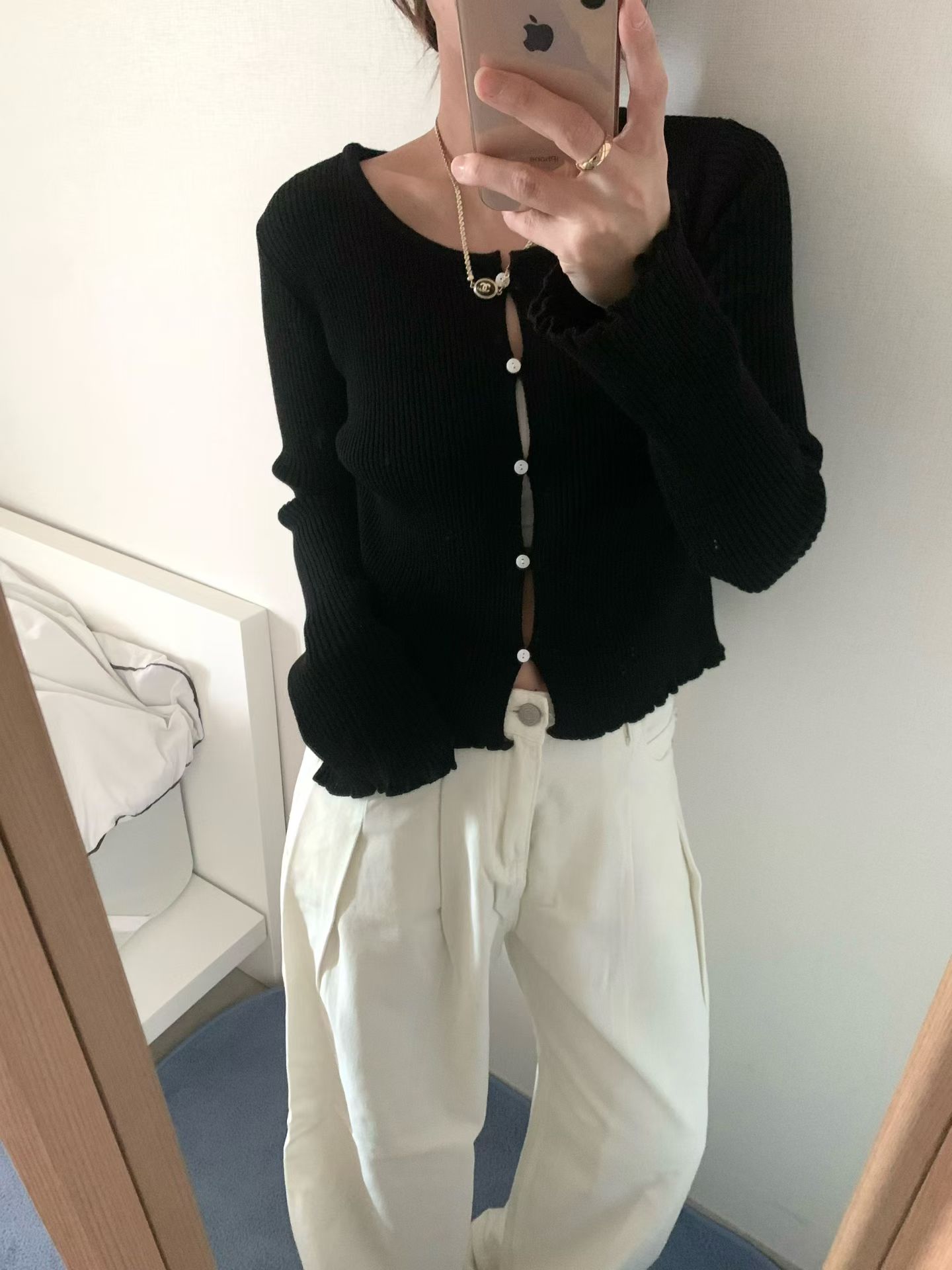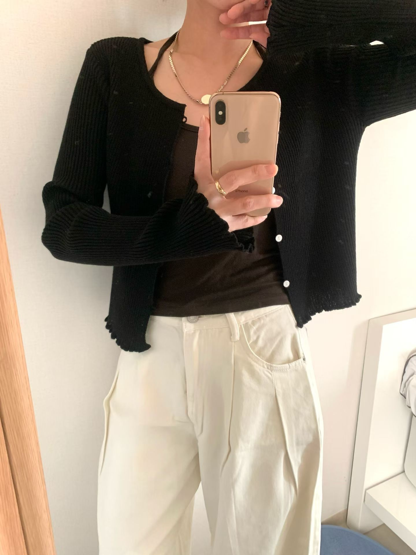 V領縮口排釦手袖素色羊毛針織衣(5%)