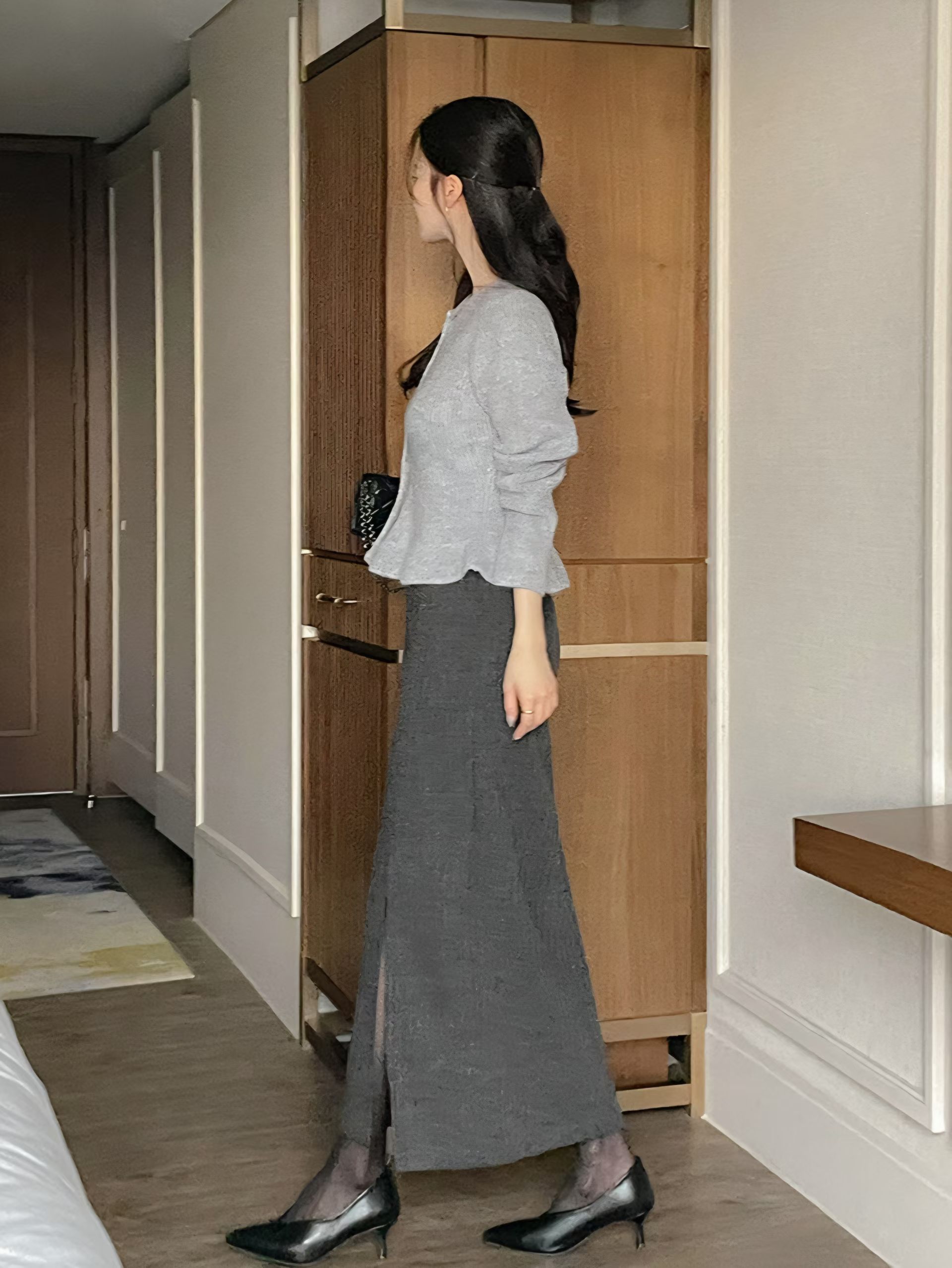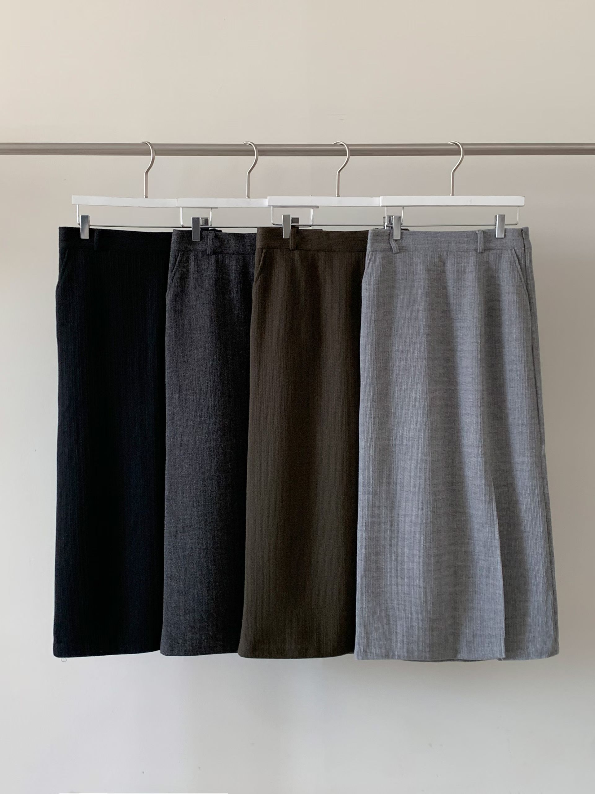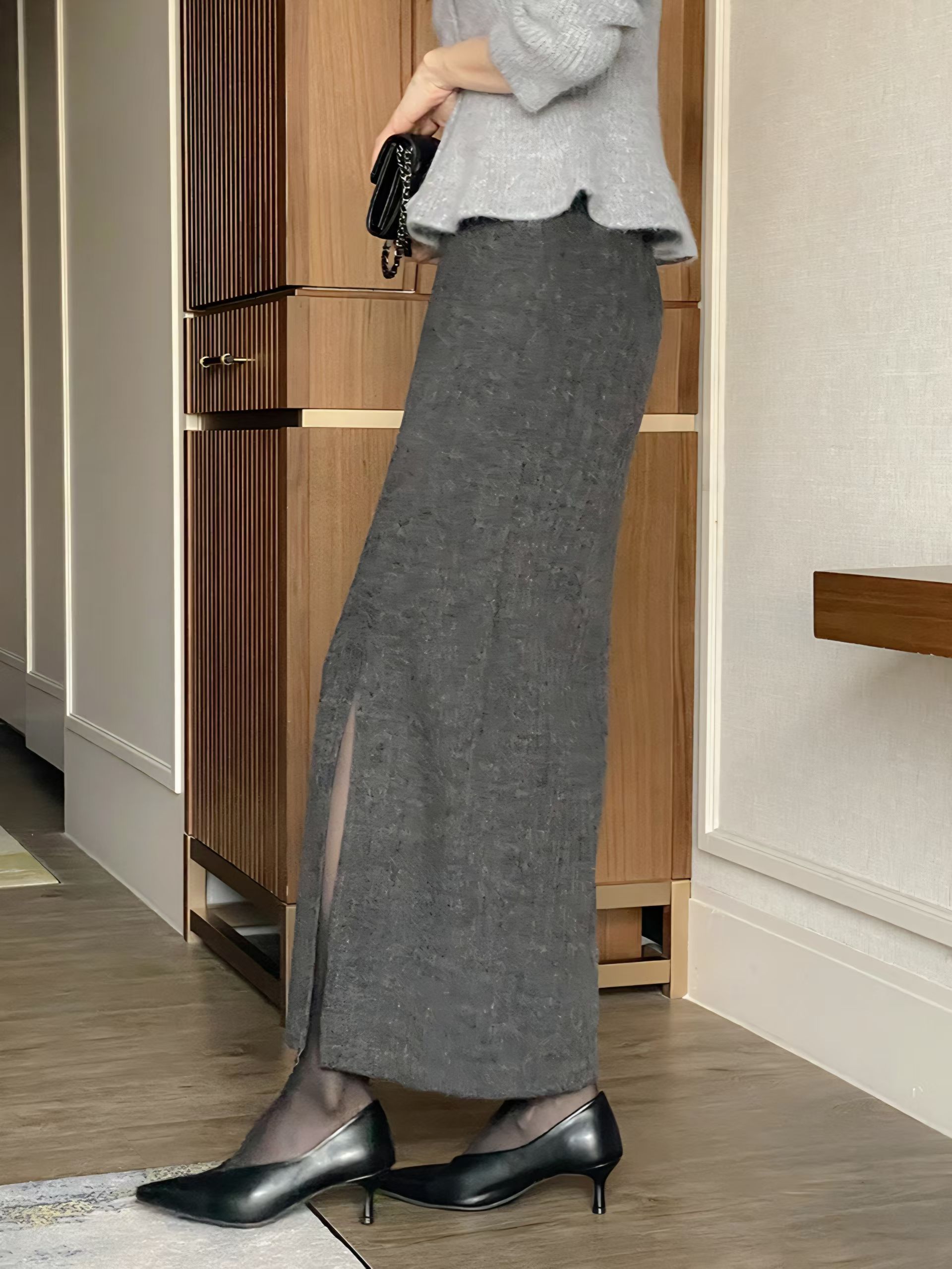 壓紋磨毛側開岔後鬆緊直筒裙
