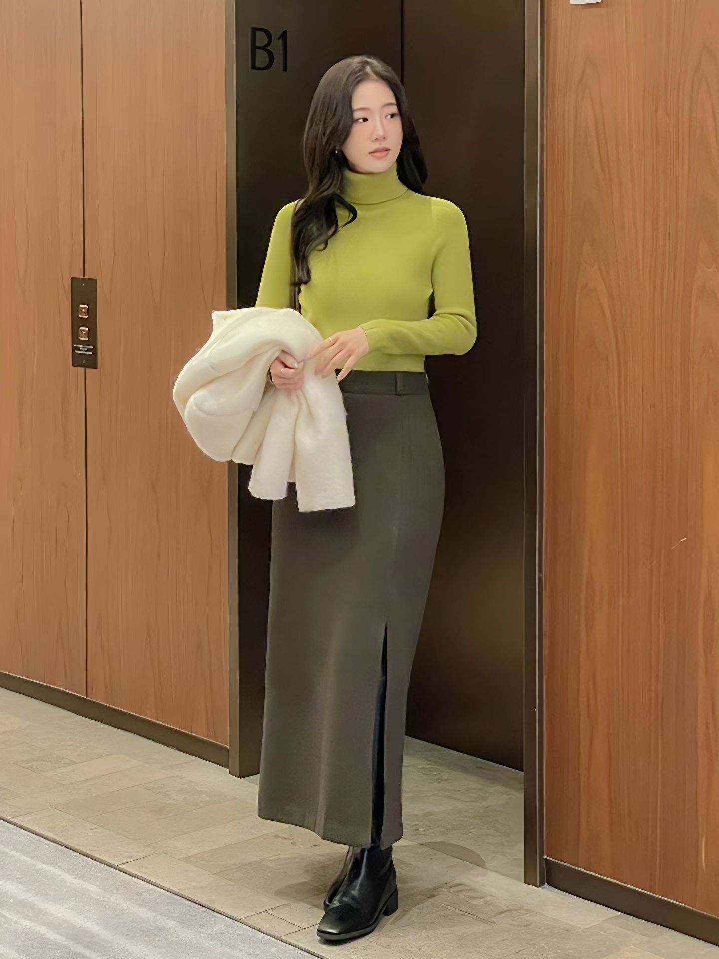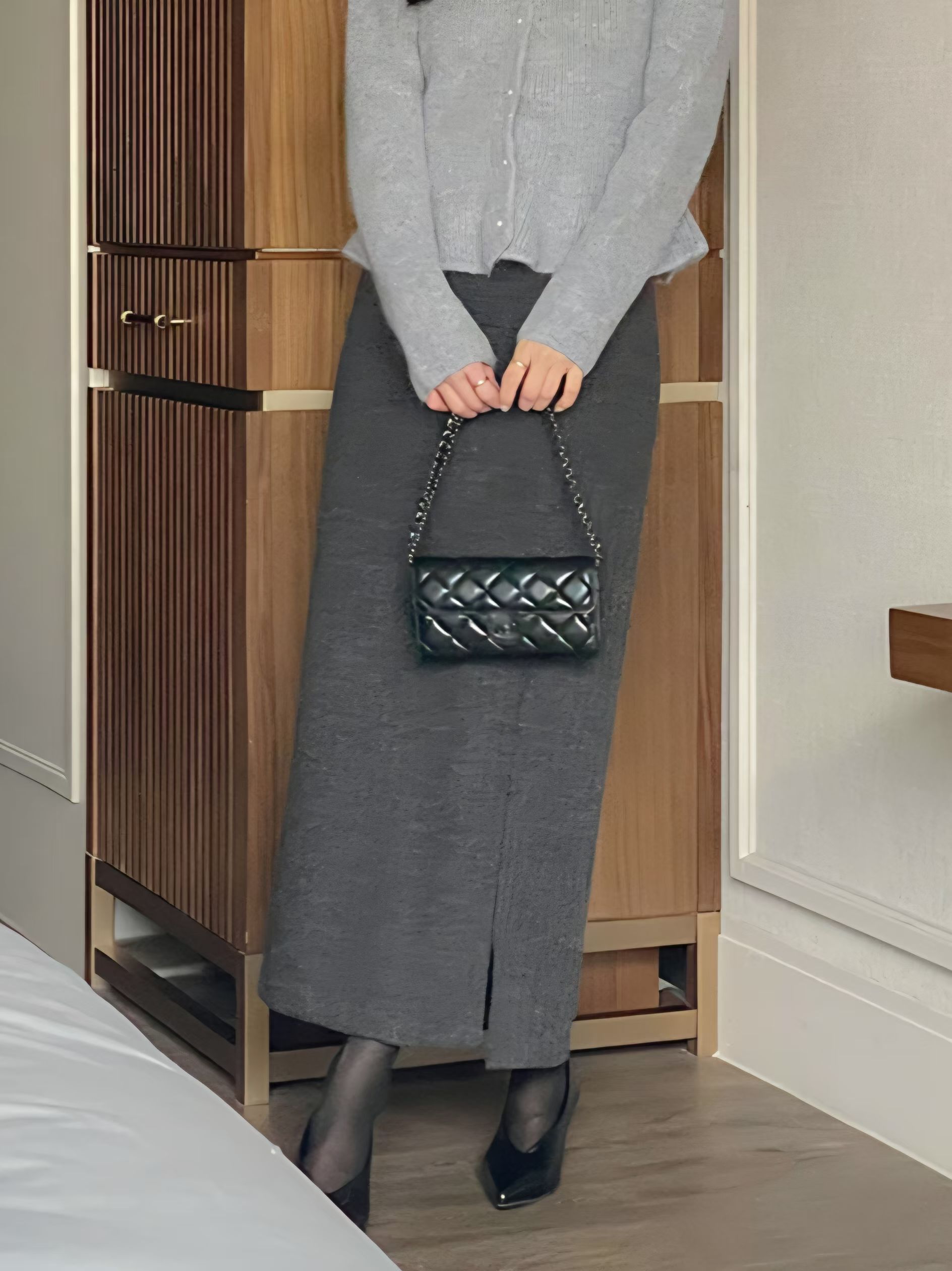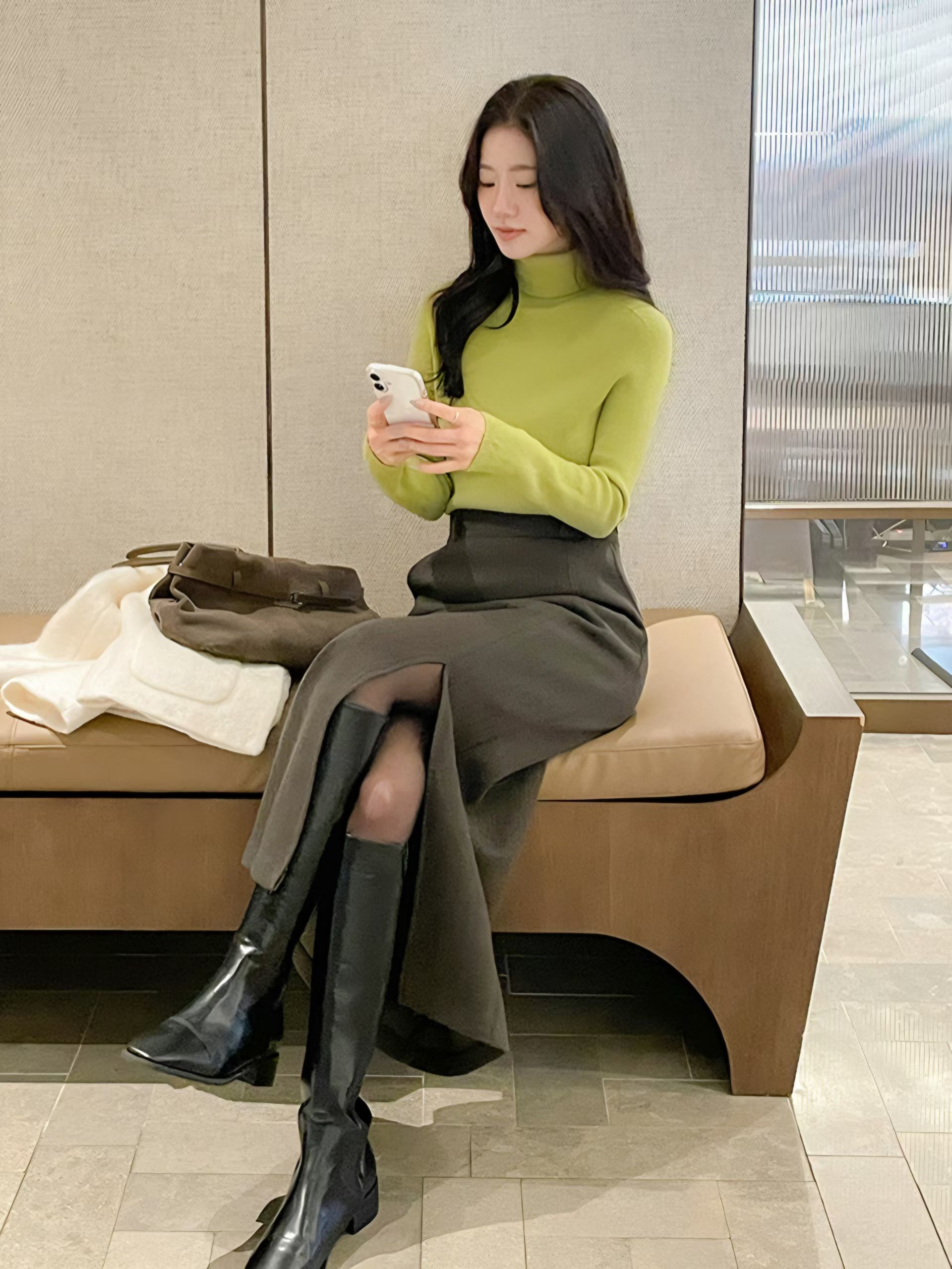 壓紋磨毛側開岔後鬆緊直筒裙