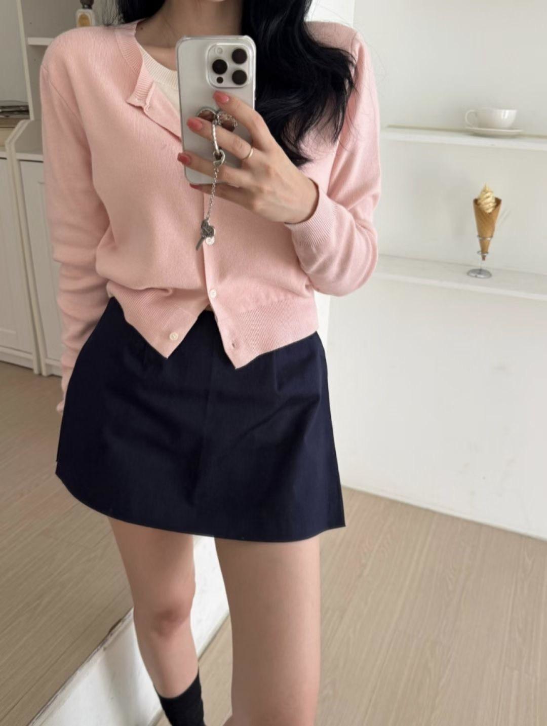 兩穿斜肩紐結包芯紗針織衣
