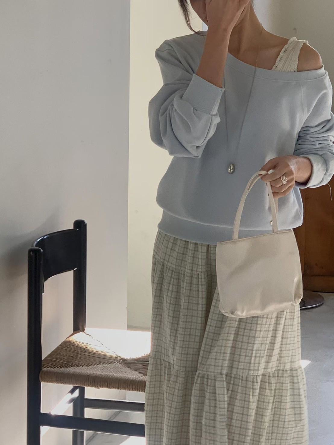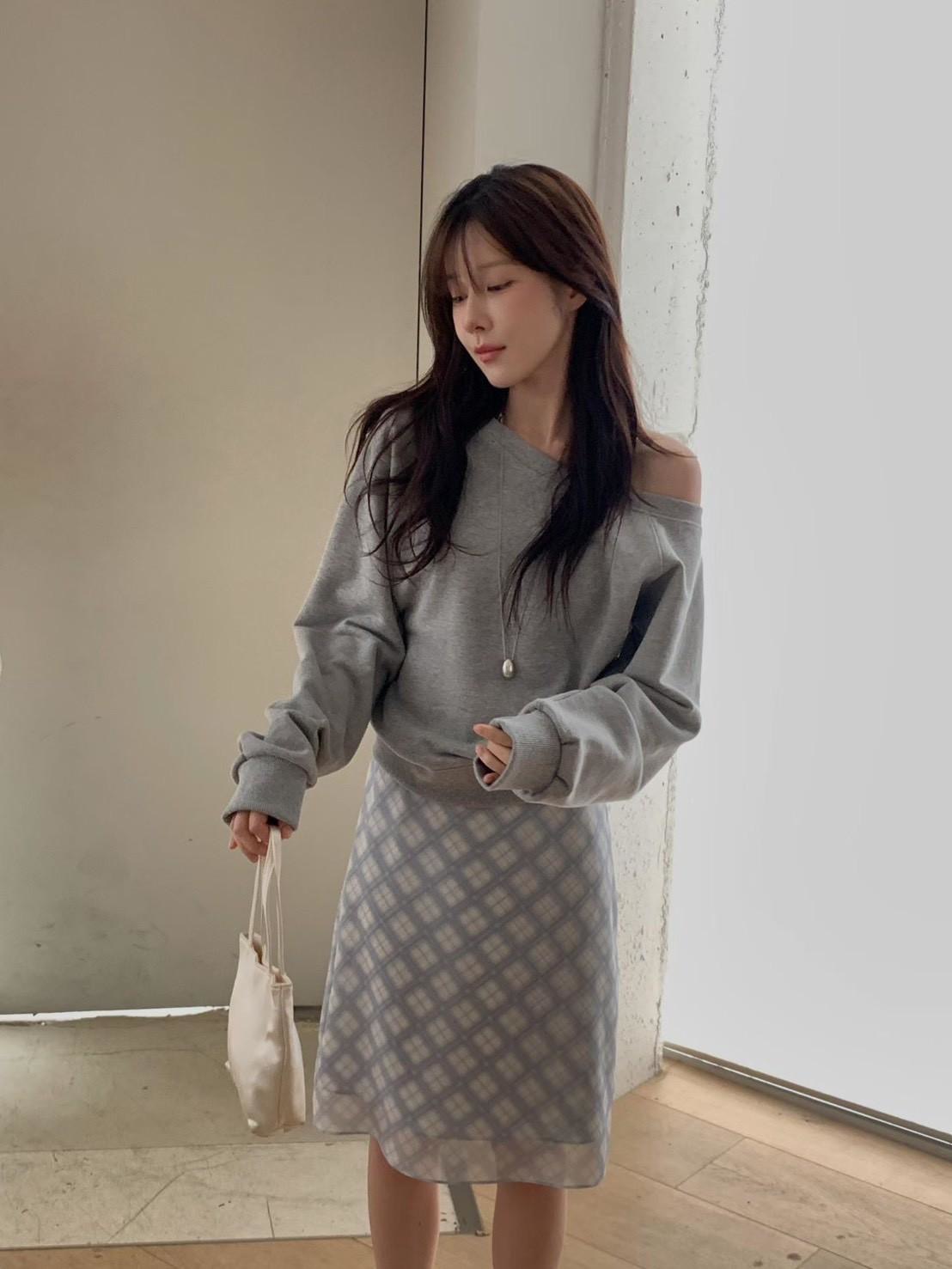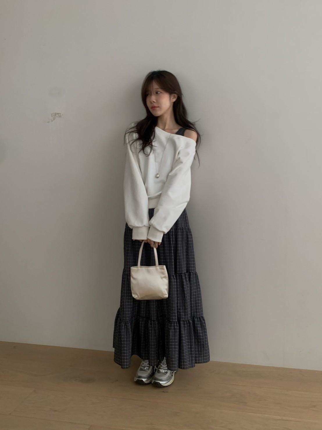 內磨毛可斜肩T+鬆緊落地磨毛長裙SET(可拆買)