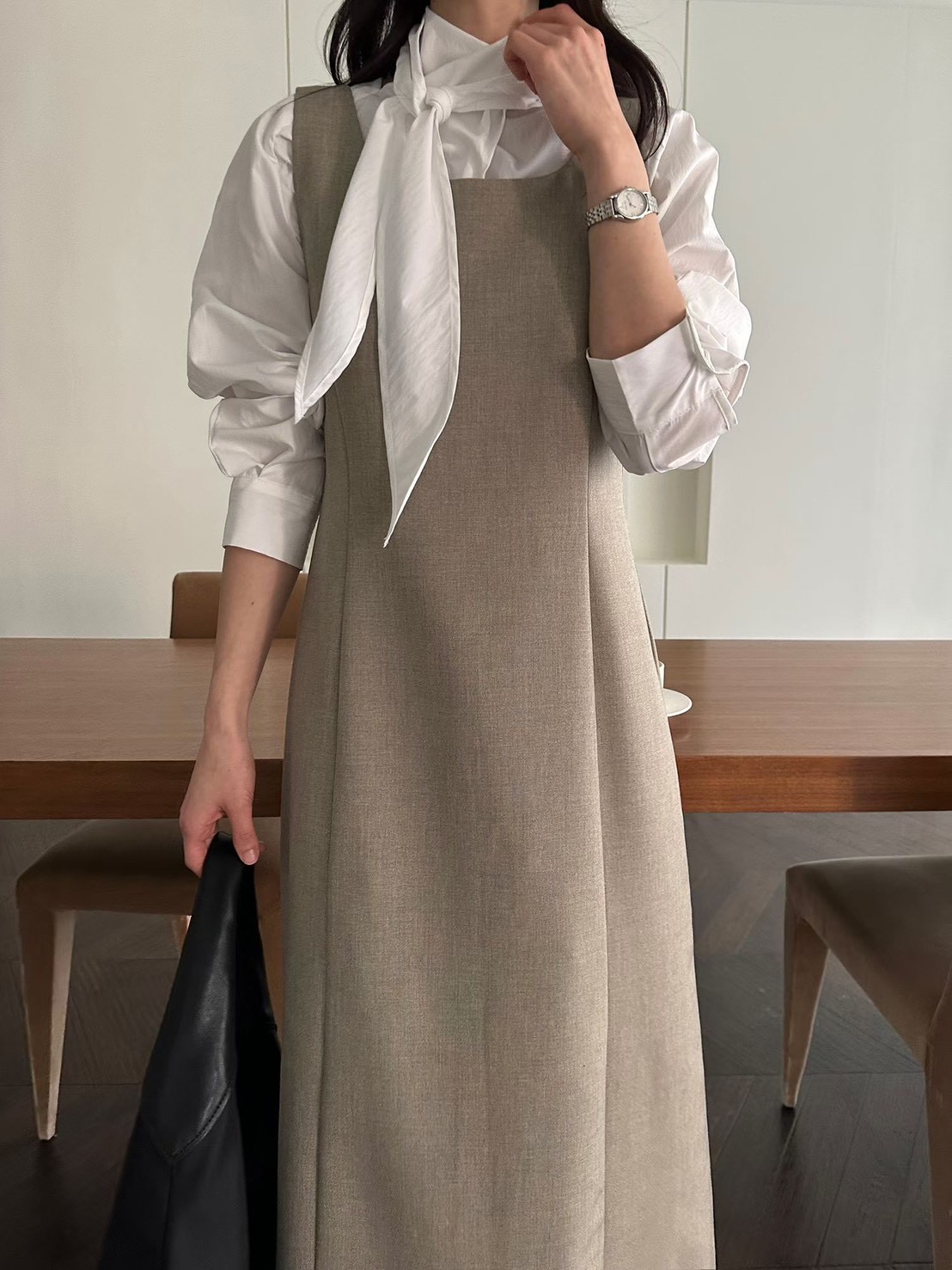 方領壓線西裝後開衩背心長洋