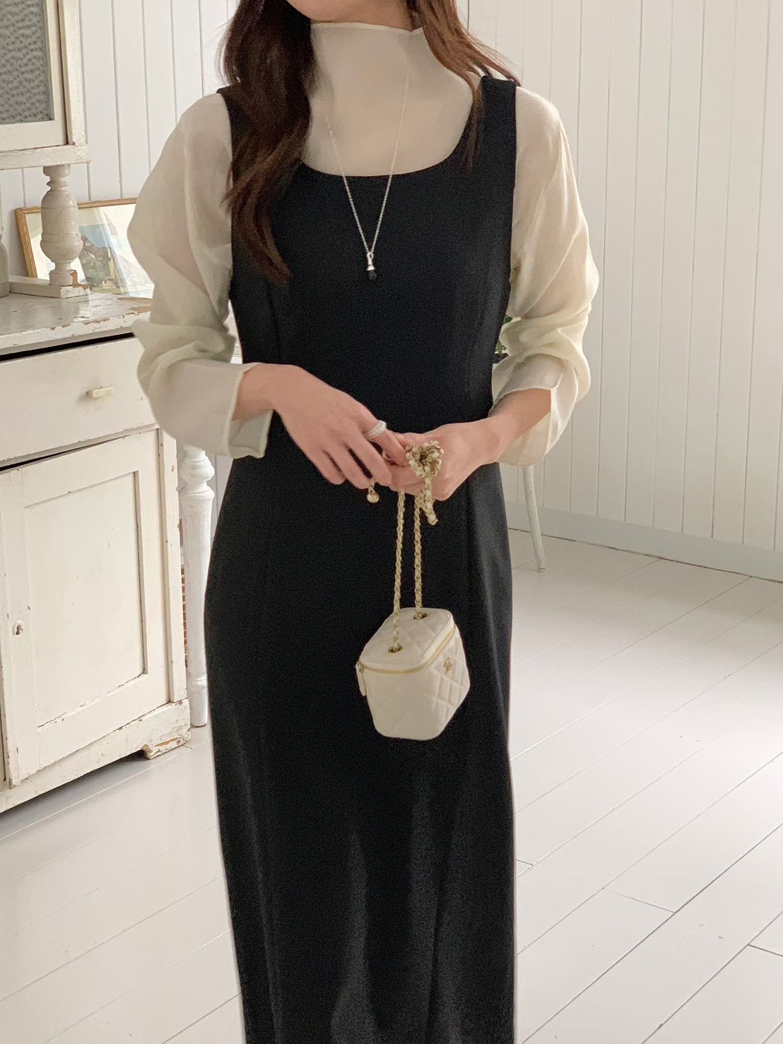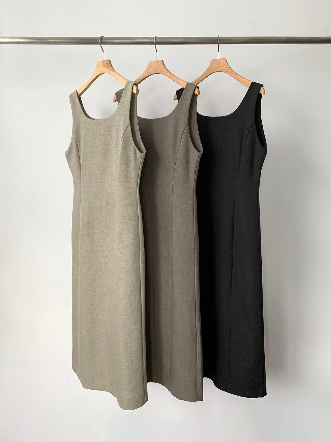 圓領棉麻百摺背心長洋