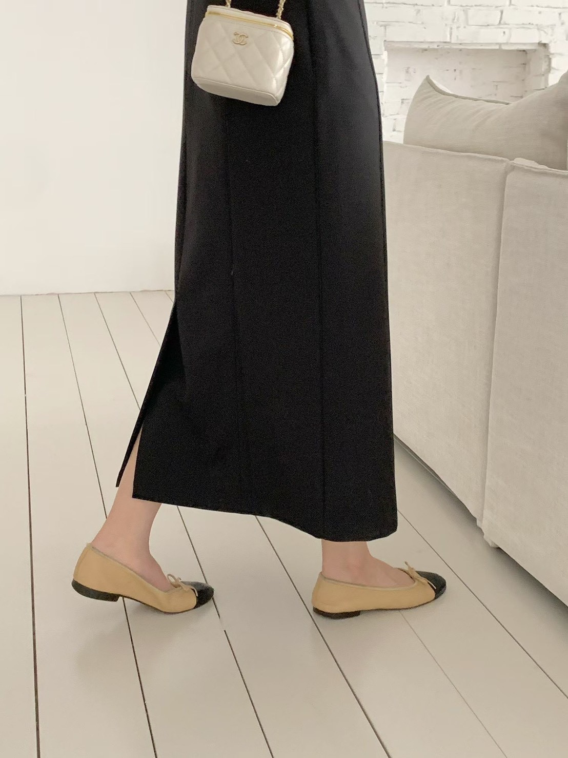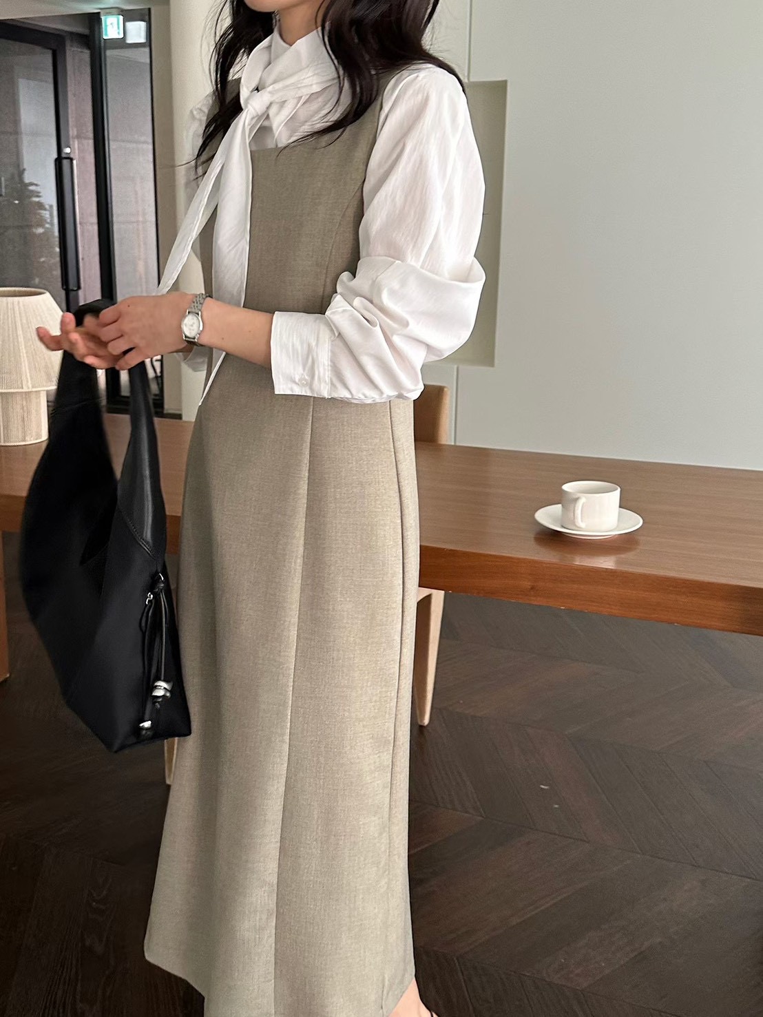 前大開衩雙層造型毛呢長裙
