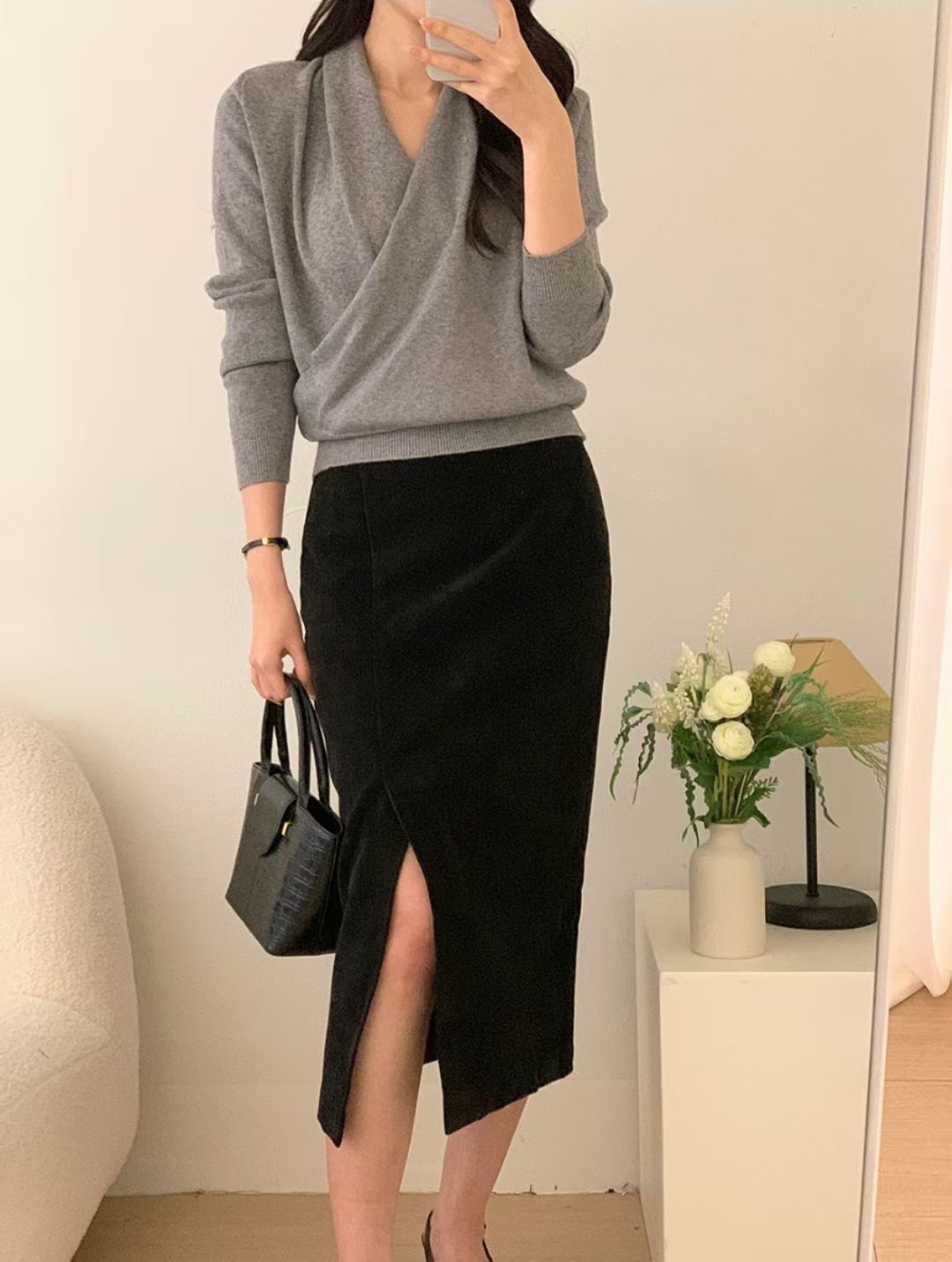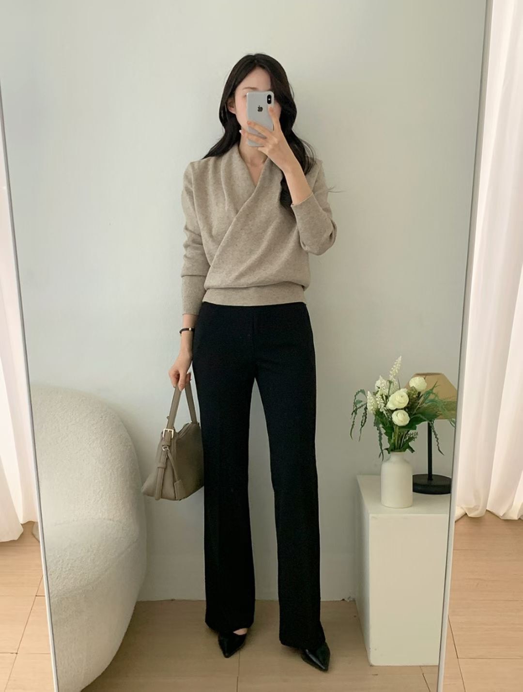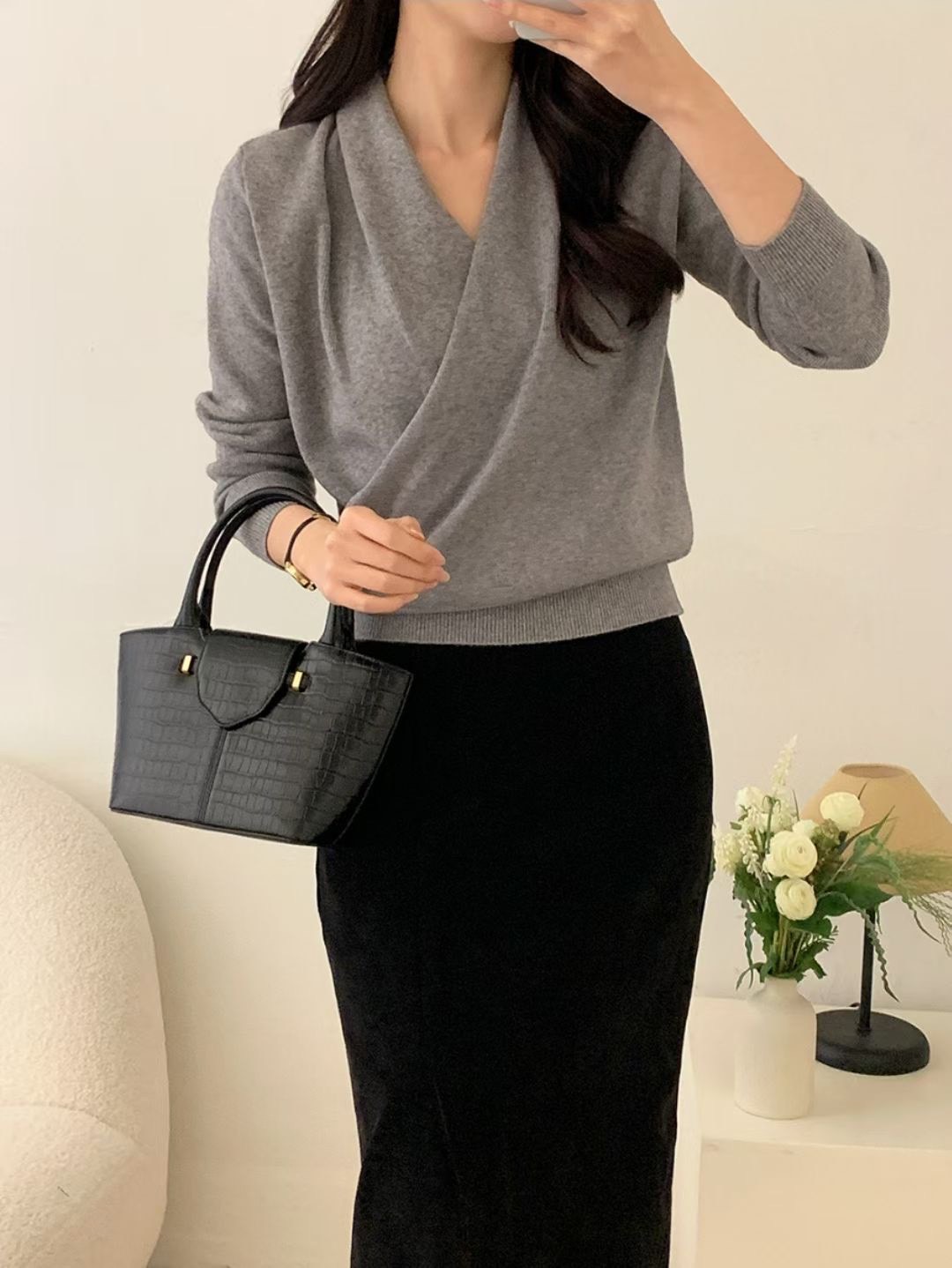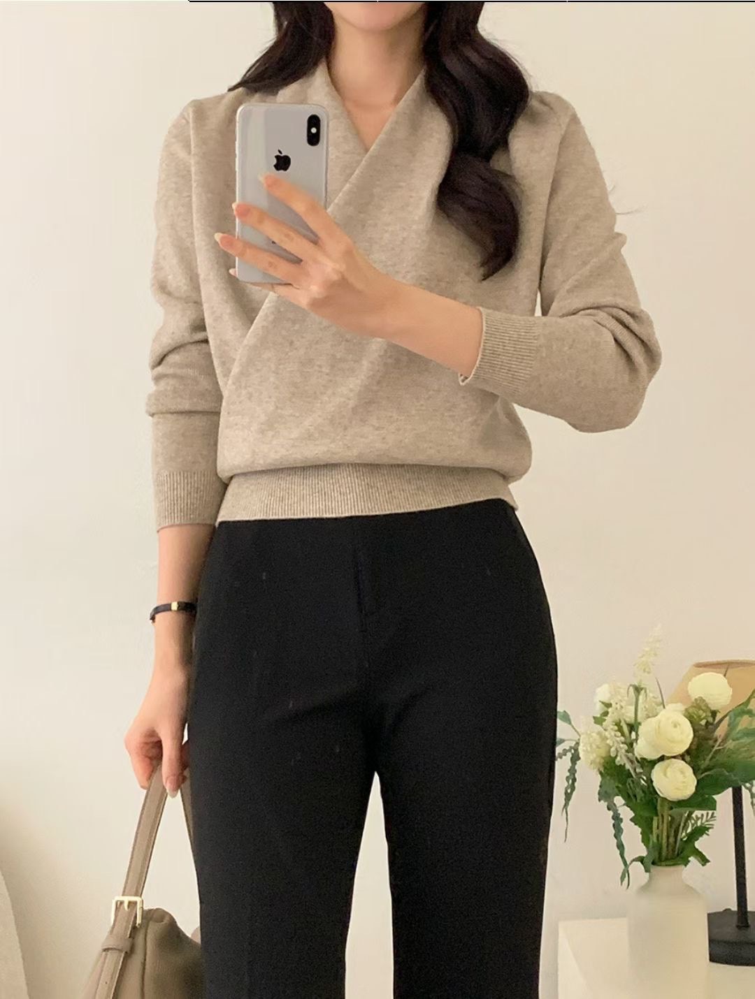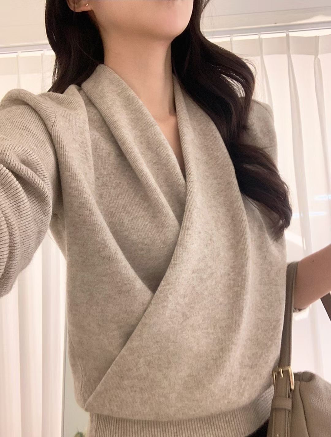 反摺平領羊毛針織衣+鬆緊短褲SET
