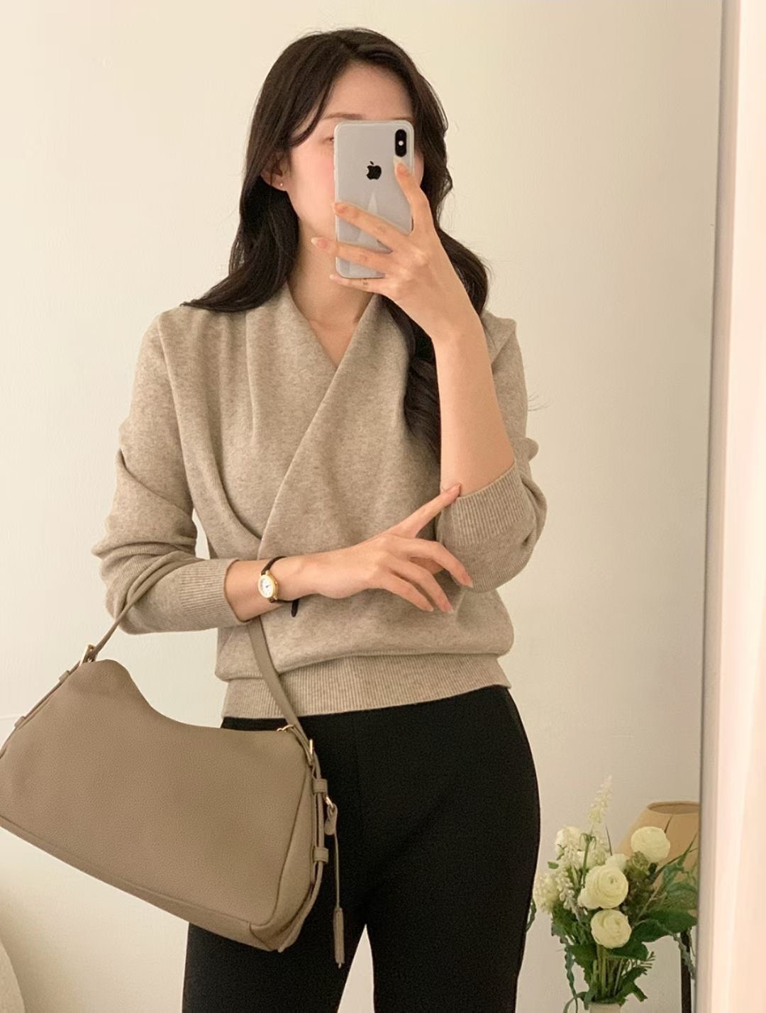 假兩件繞頸背心+垂墜可斜肩上衣SET