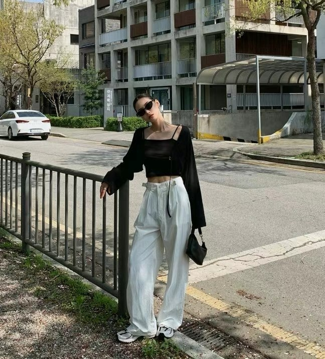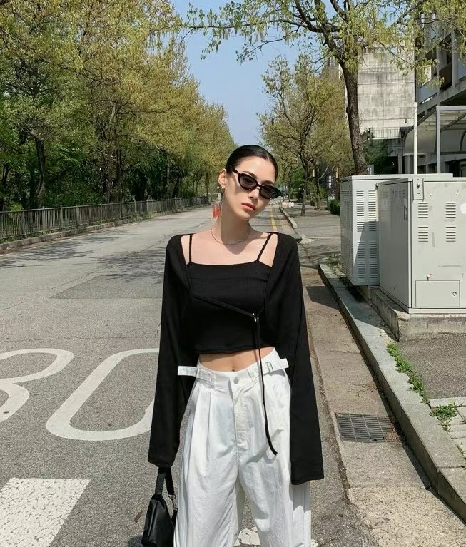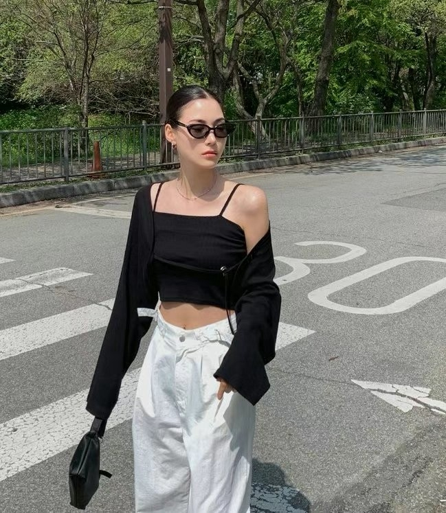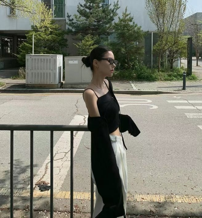 復古配色墊肩條紋小罩衫+後開衩鬆緊長裙SET(可拆買)
