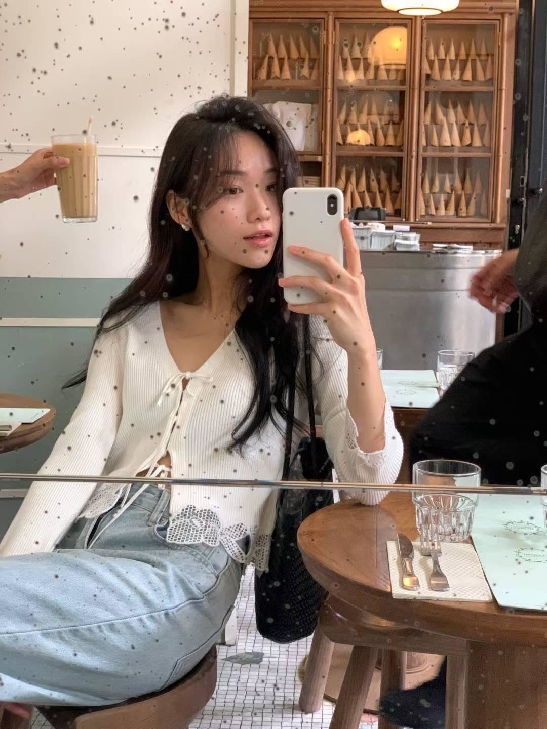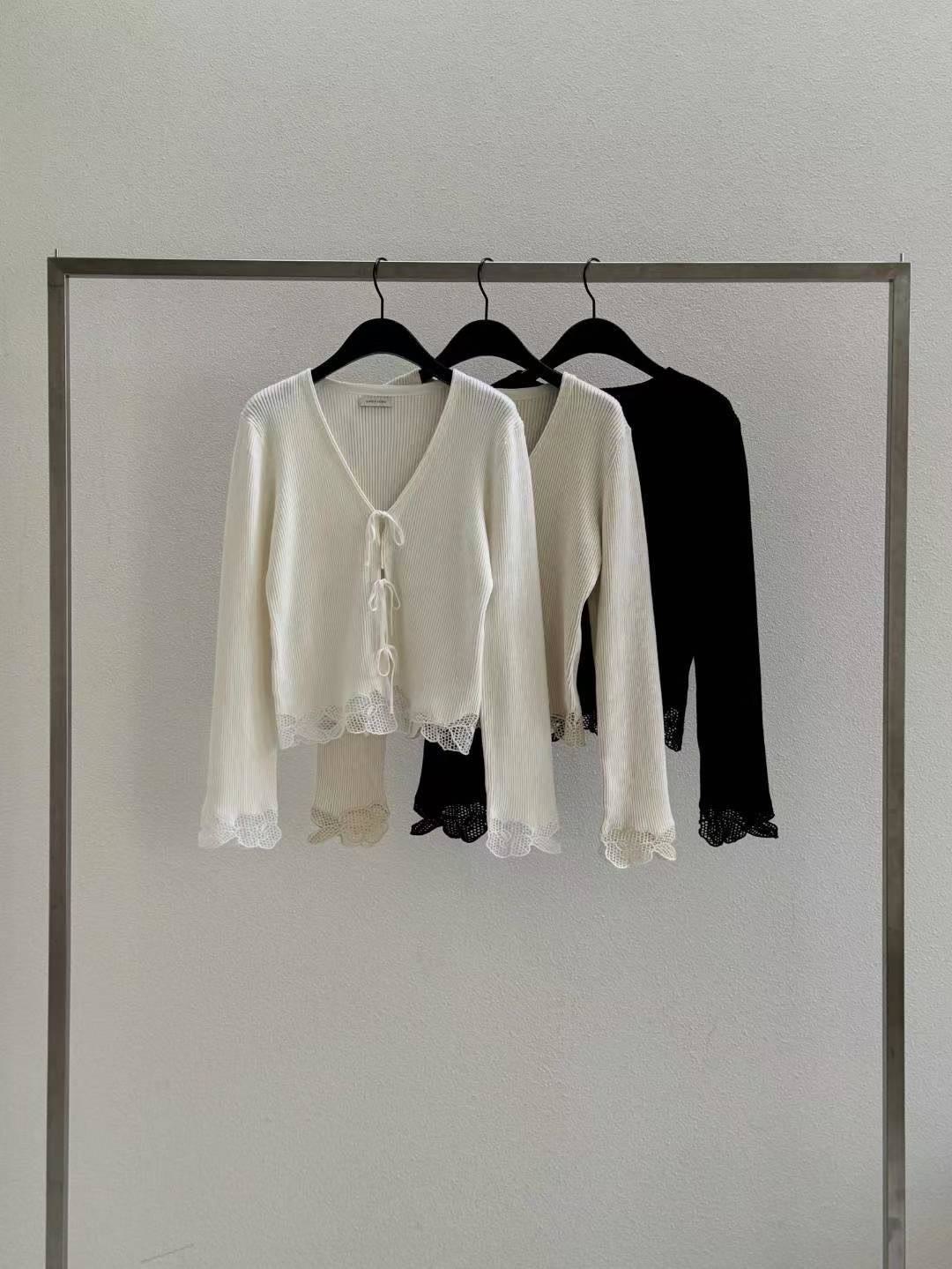 緹花造型綁帶針織上衣