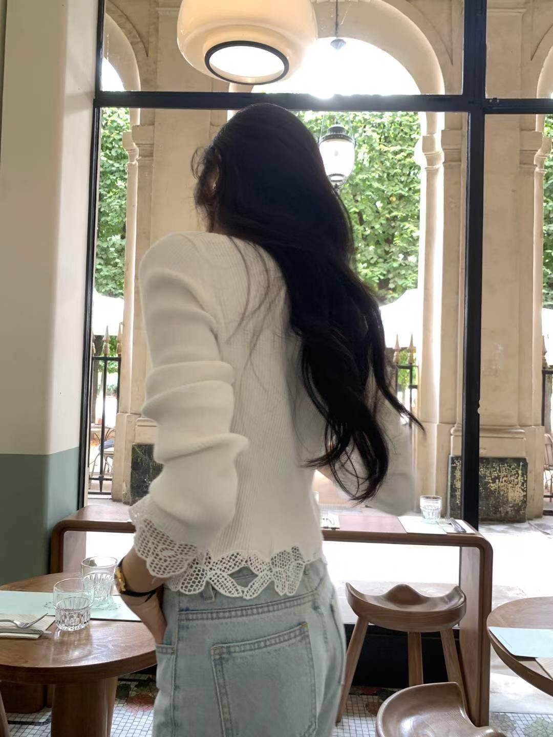 下抽鬚V領針織上衣