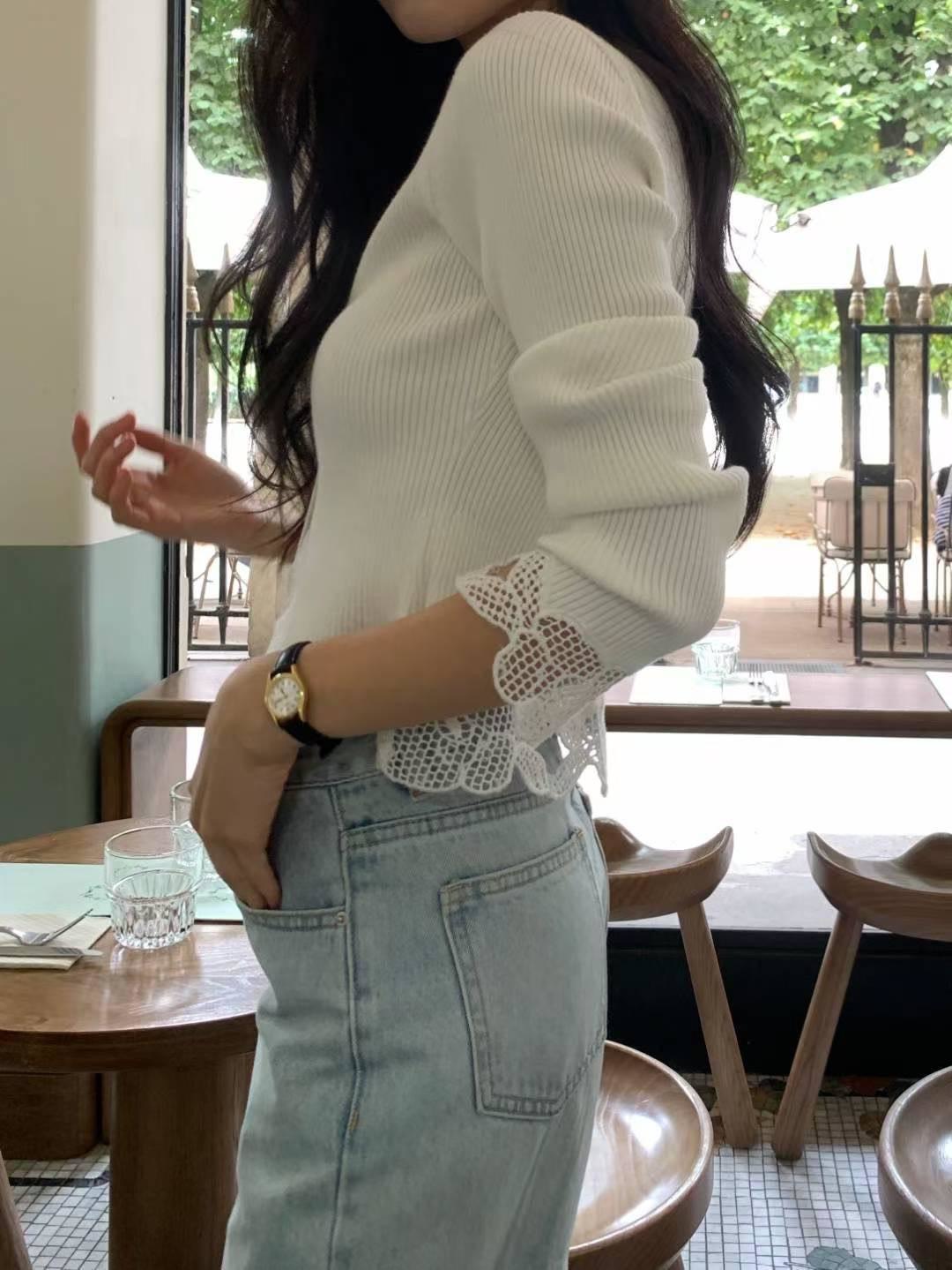 V領滾邊針織上衣