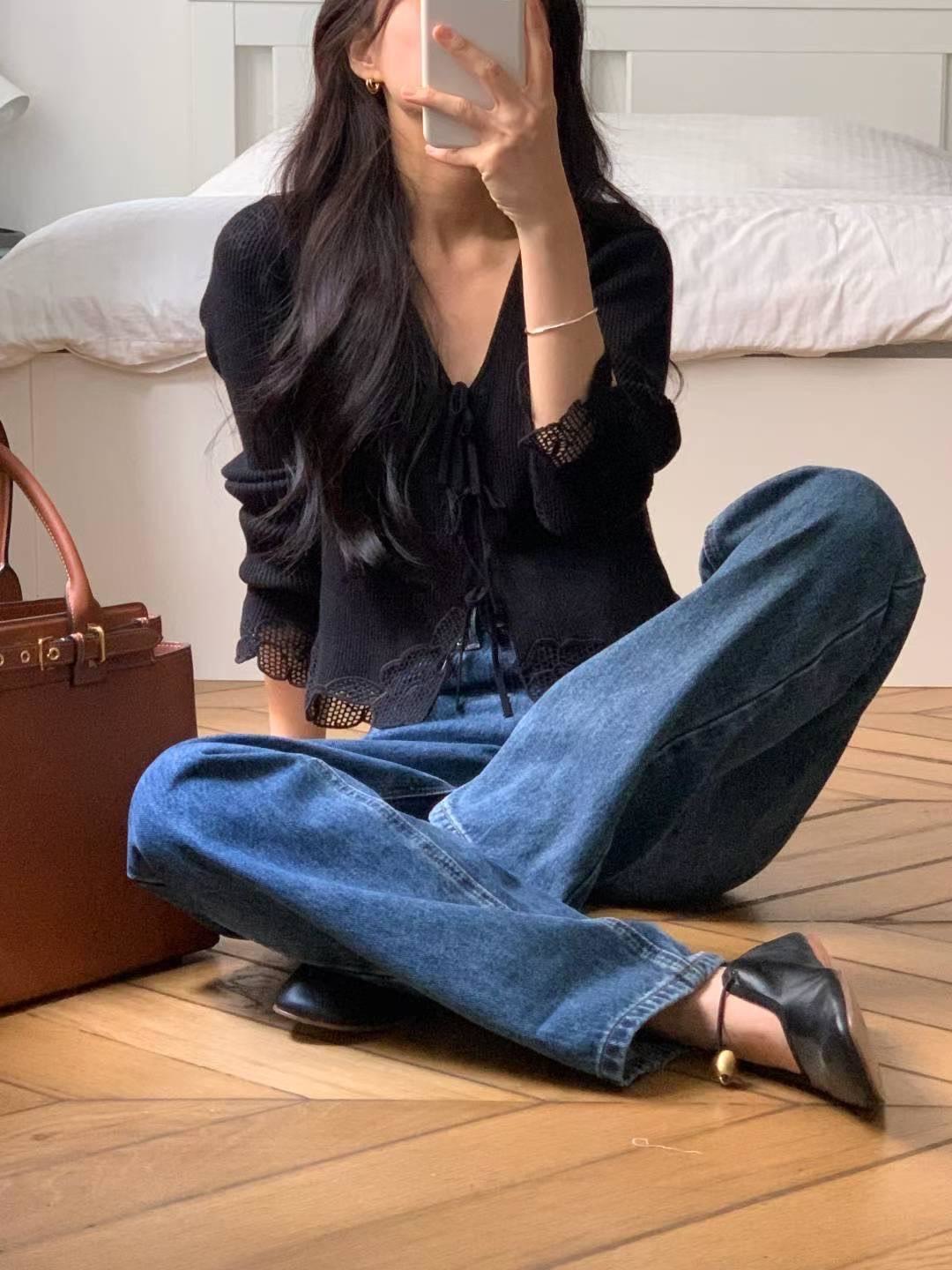 顯瘦復古刷藍小喇叭牛仔褲