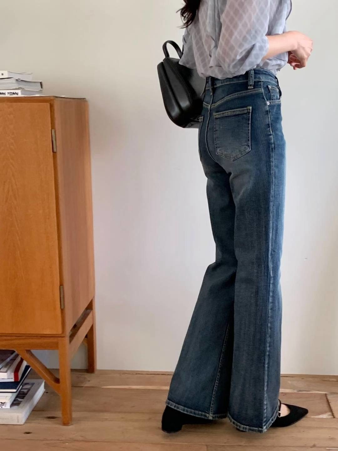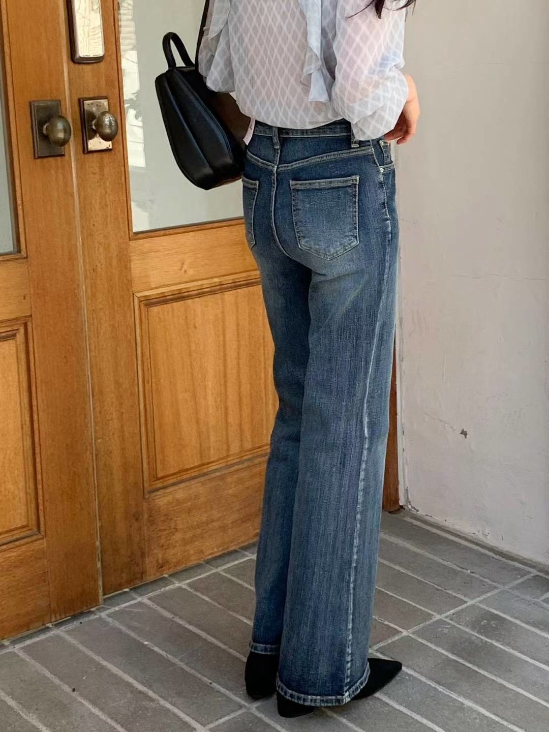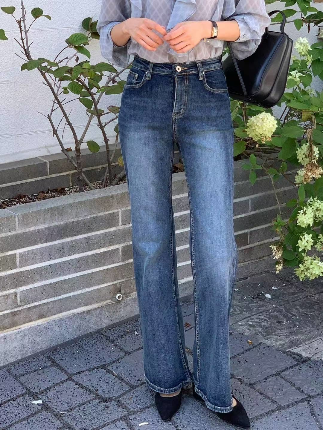 顯瘦復古刷藍小喇叭牛仔褲