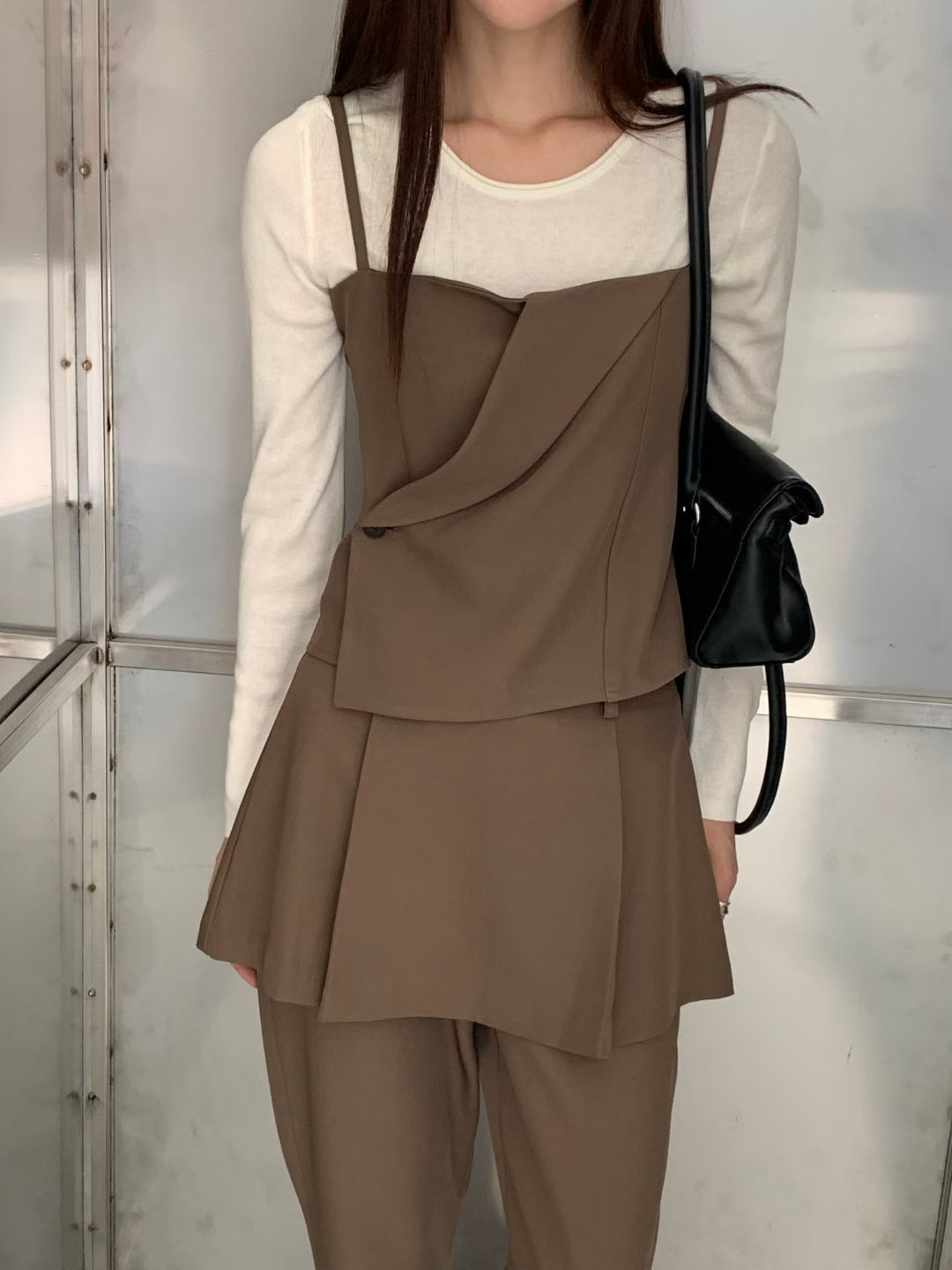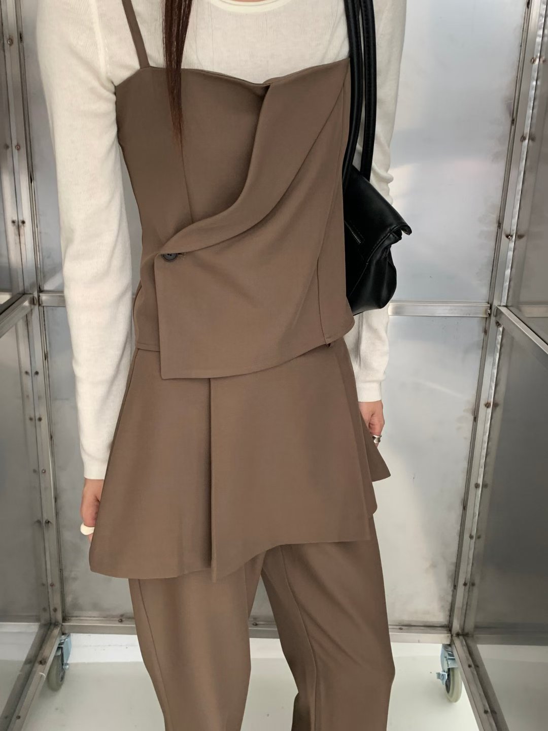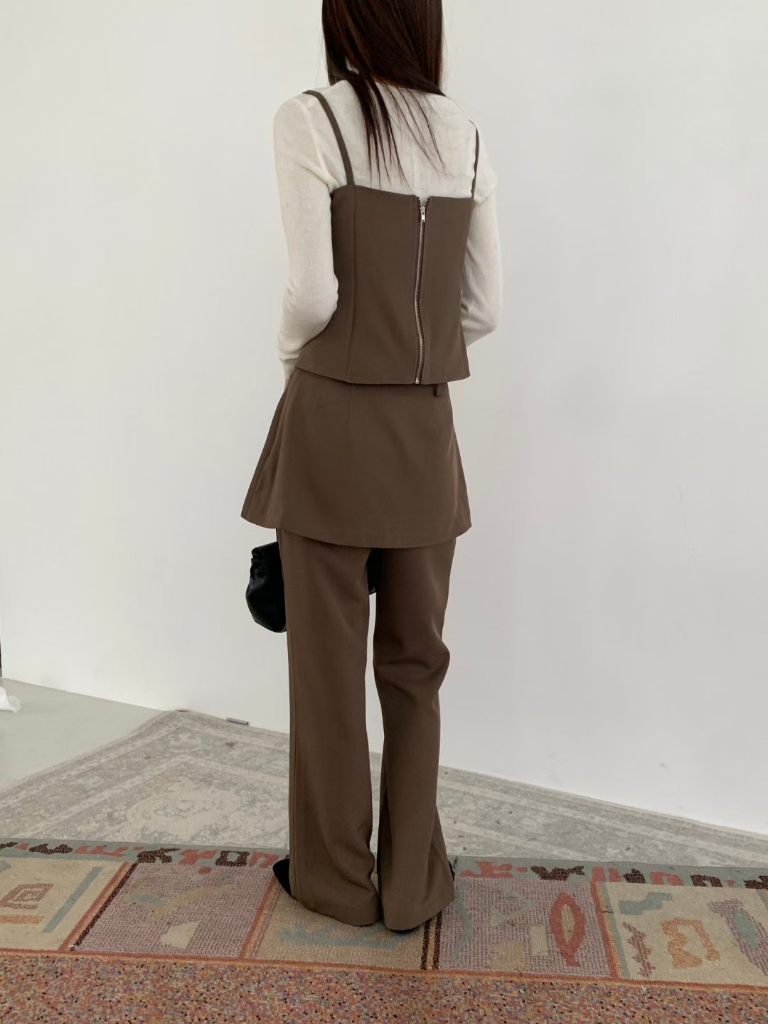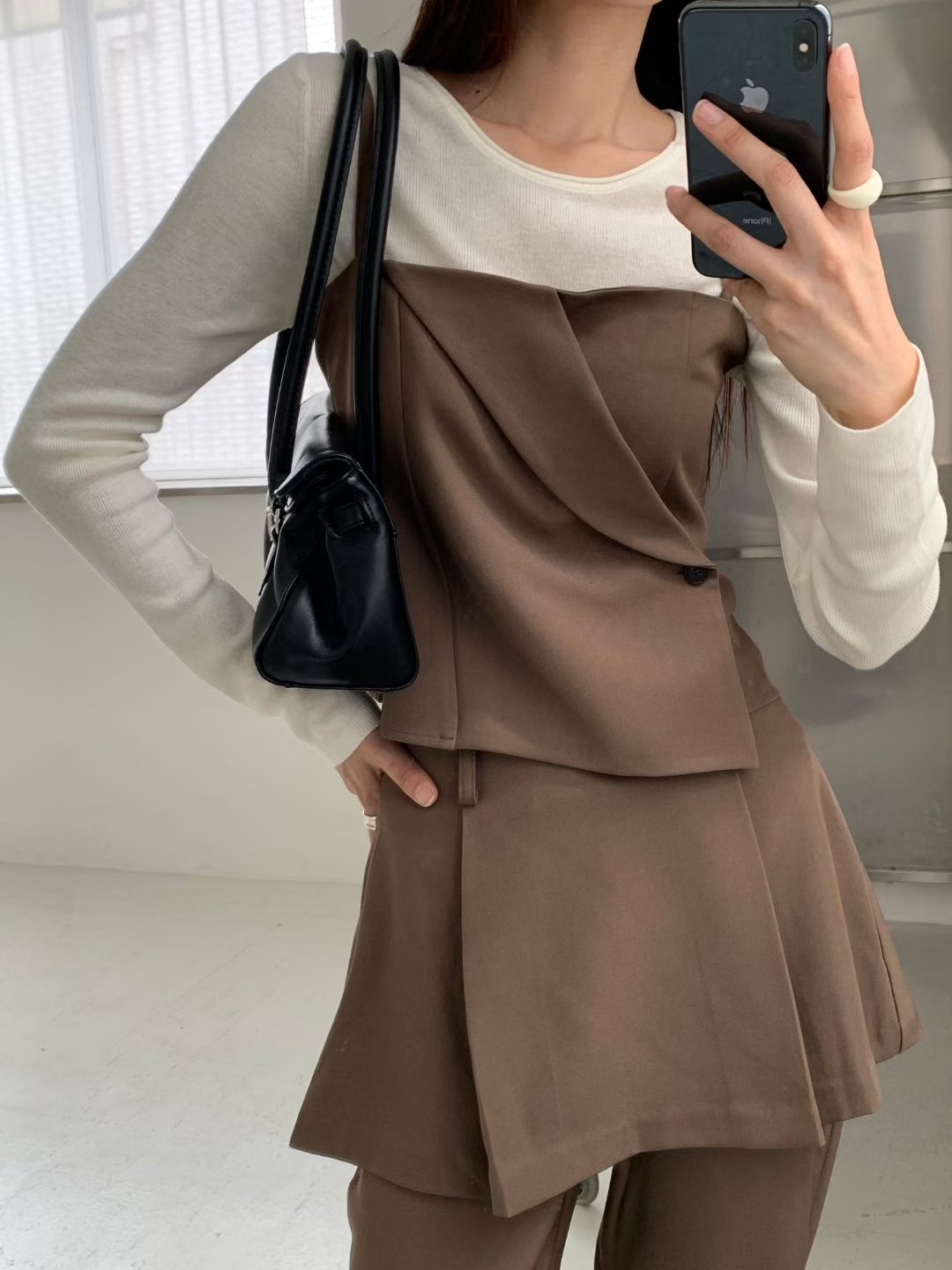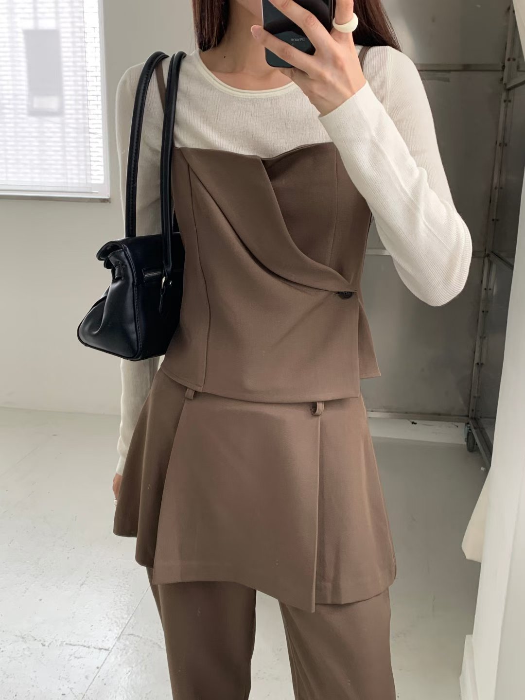 雙口袋拉鍊背心+工裝風側百摺短褲裙