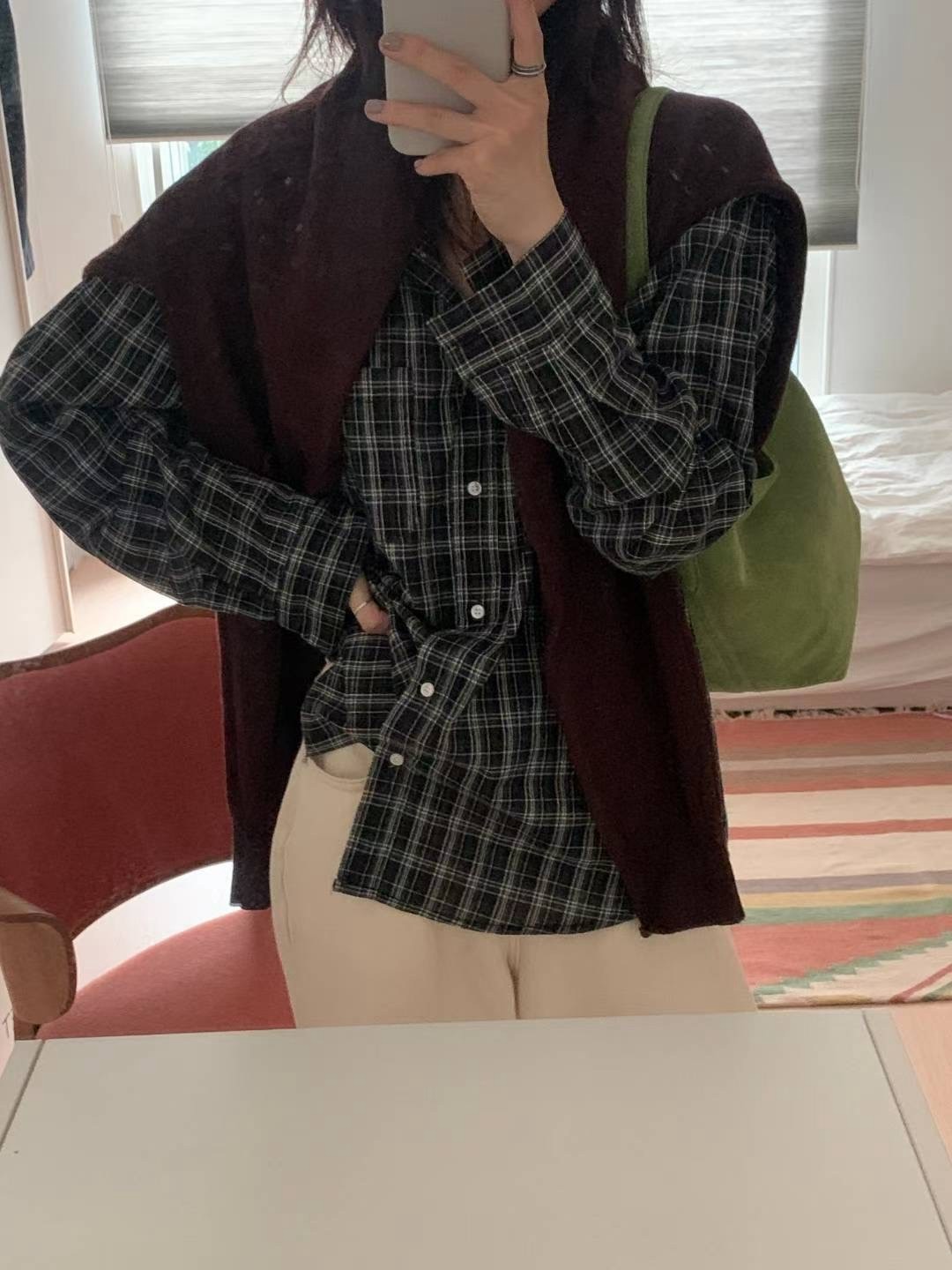 格紋薄西裝外套+方頭腰帶短裙SET(可拆買)