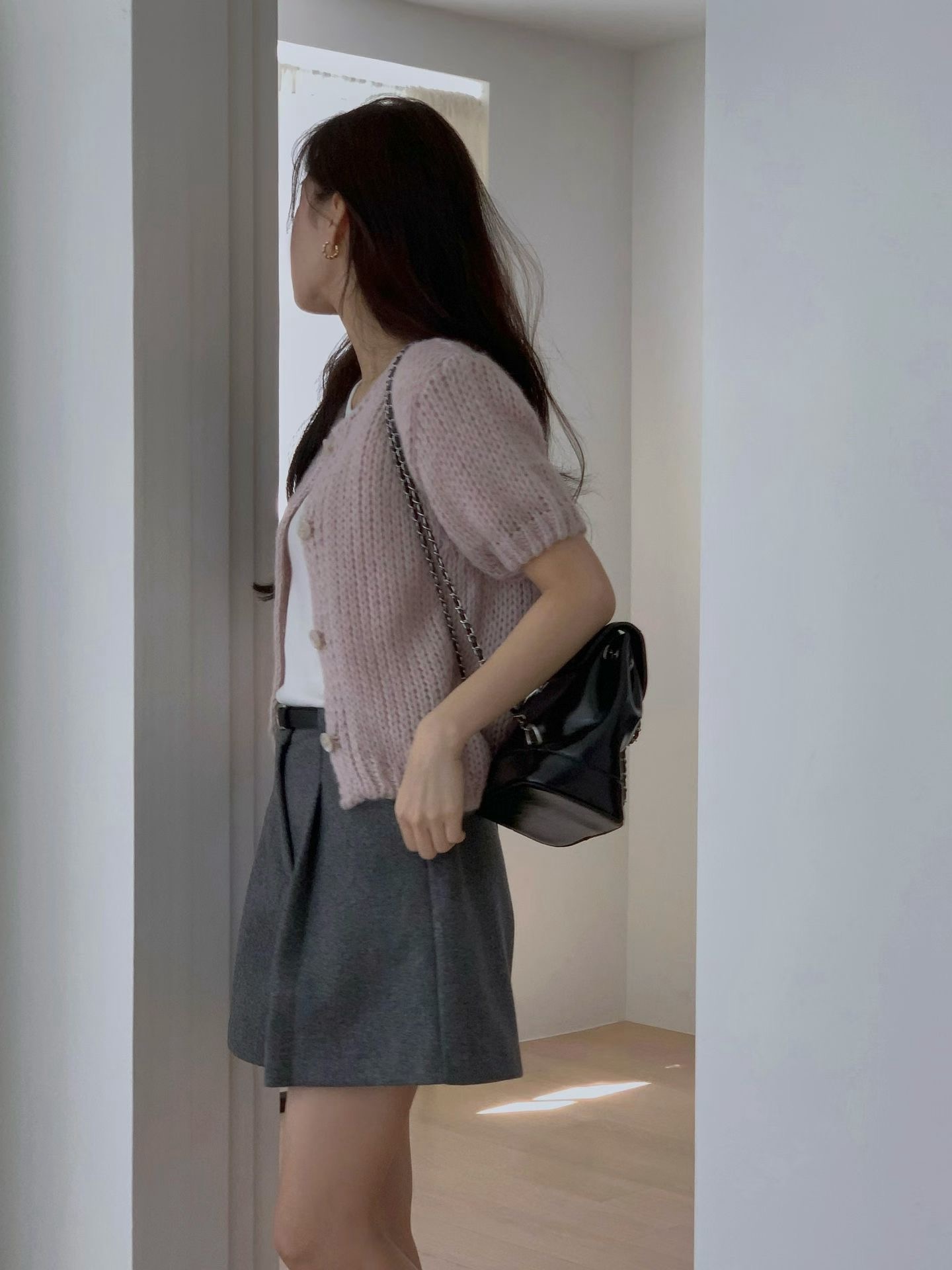 落肩寬鬆橫紋鏤空微透薄針織衫