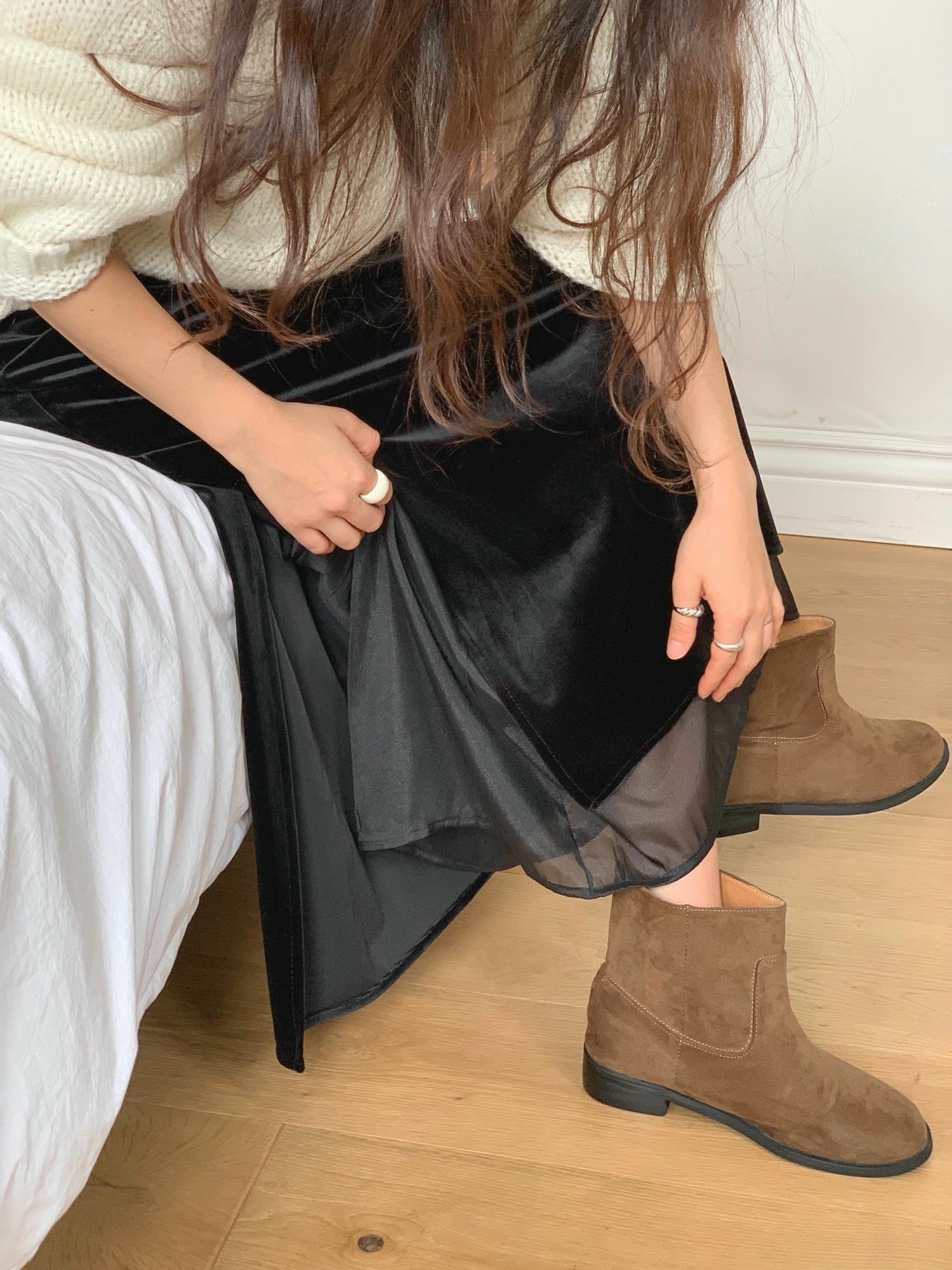 翻領設計風衣外套+不規則側排釦鬆緊短裙SET