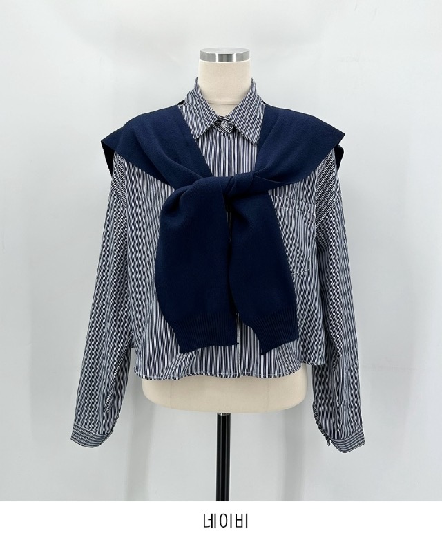 短毛圓領排釦針織衫+鬆緊A字短裙SET