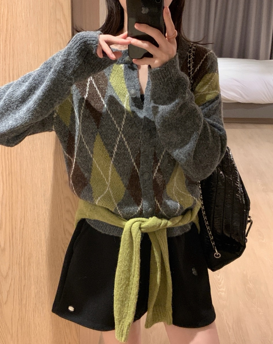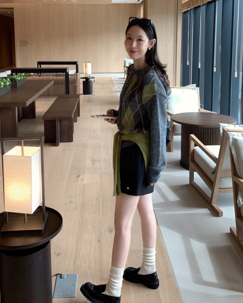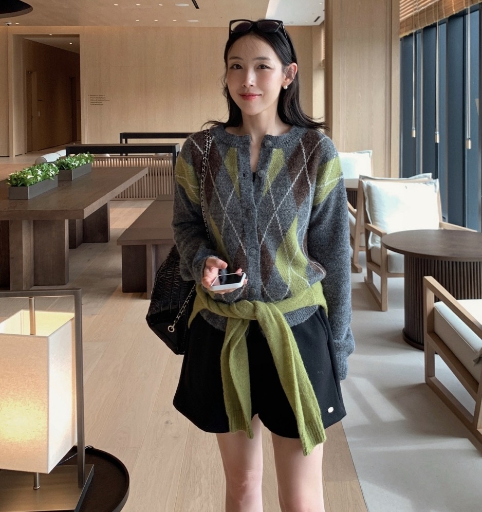 雙向拉鍊壓線連帽針織外套+落地長褲SET