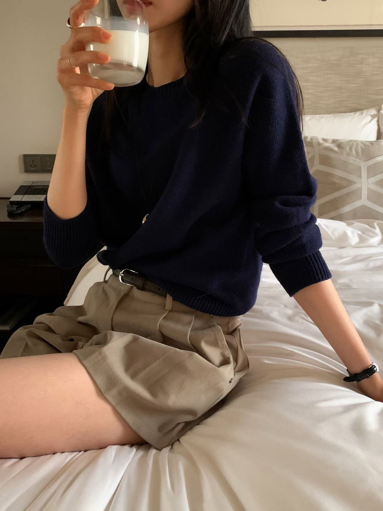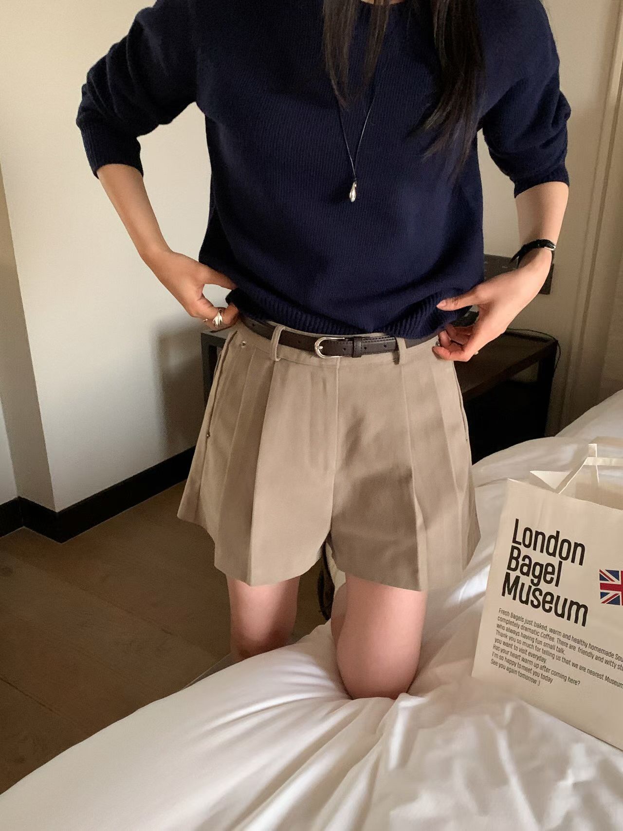 低腰辣款麂皮短褲裙(附皮帶)