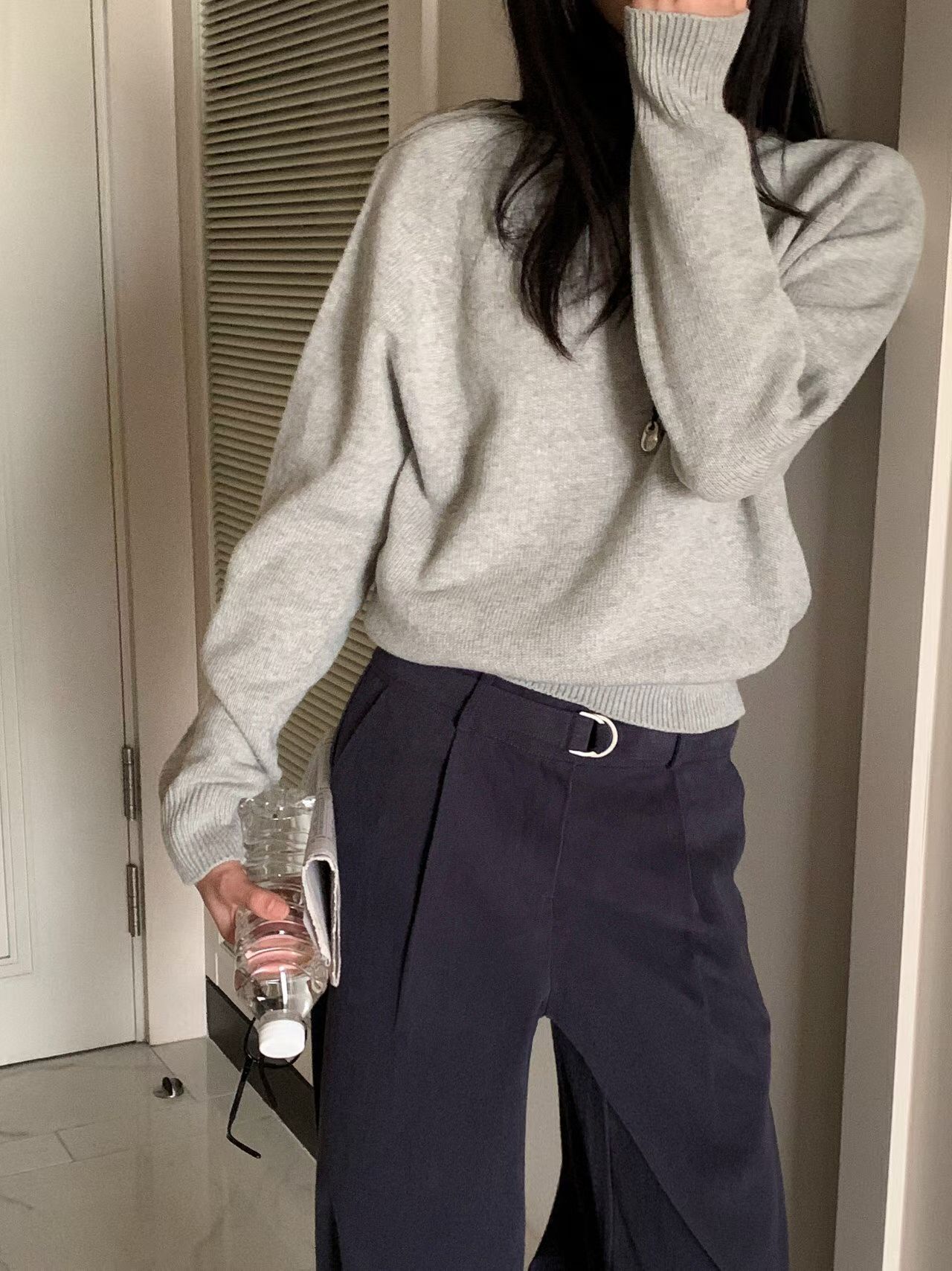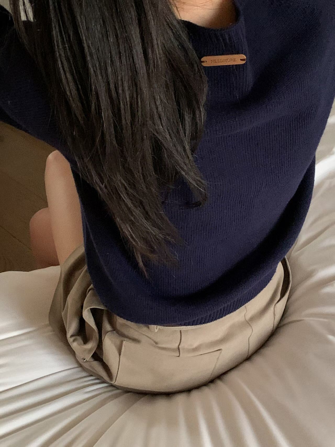 圓領後logo皮革車標素色針織衣