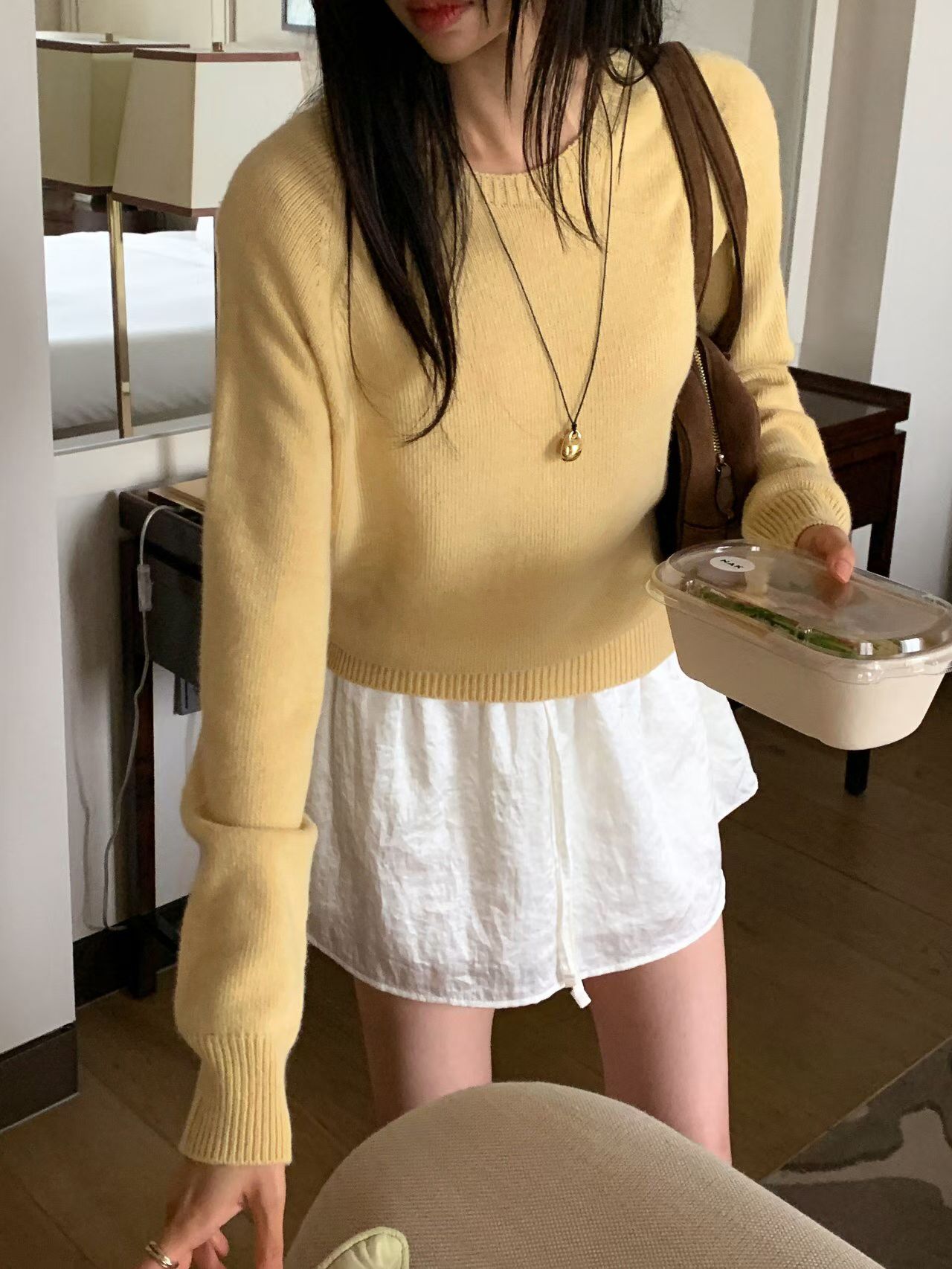 假兩件垂墜露肩博款針織衫