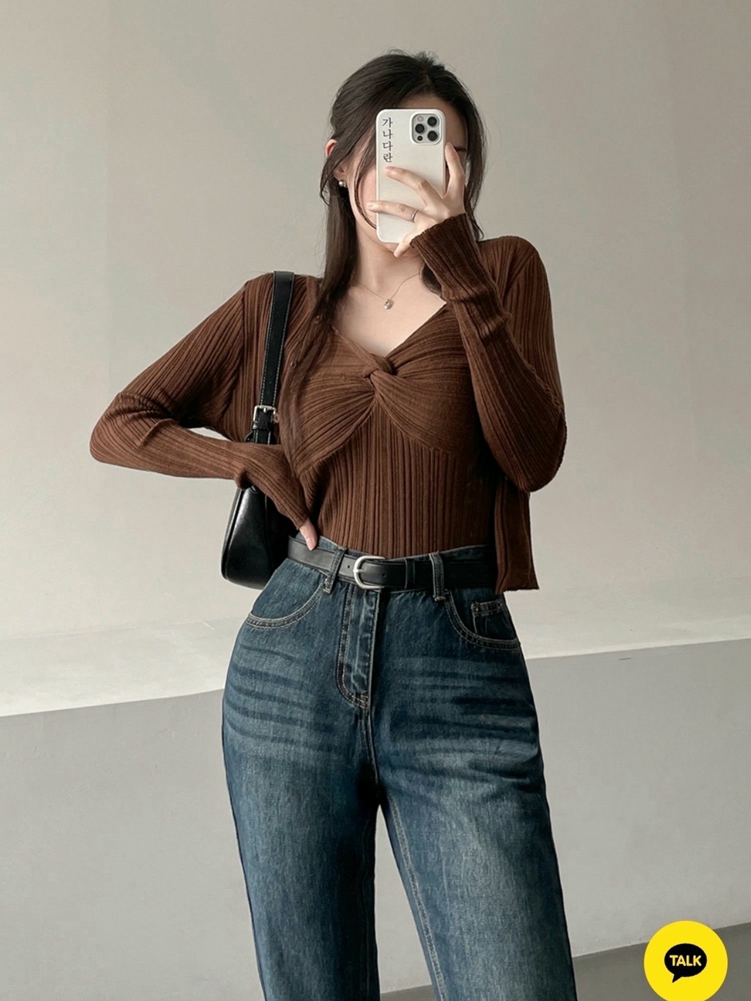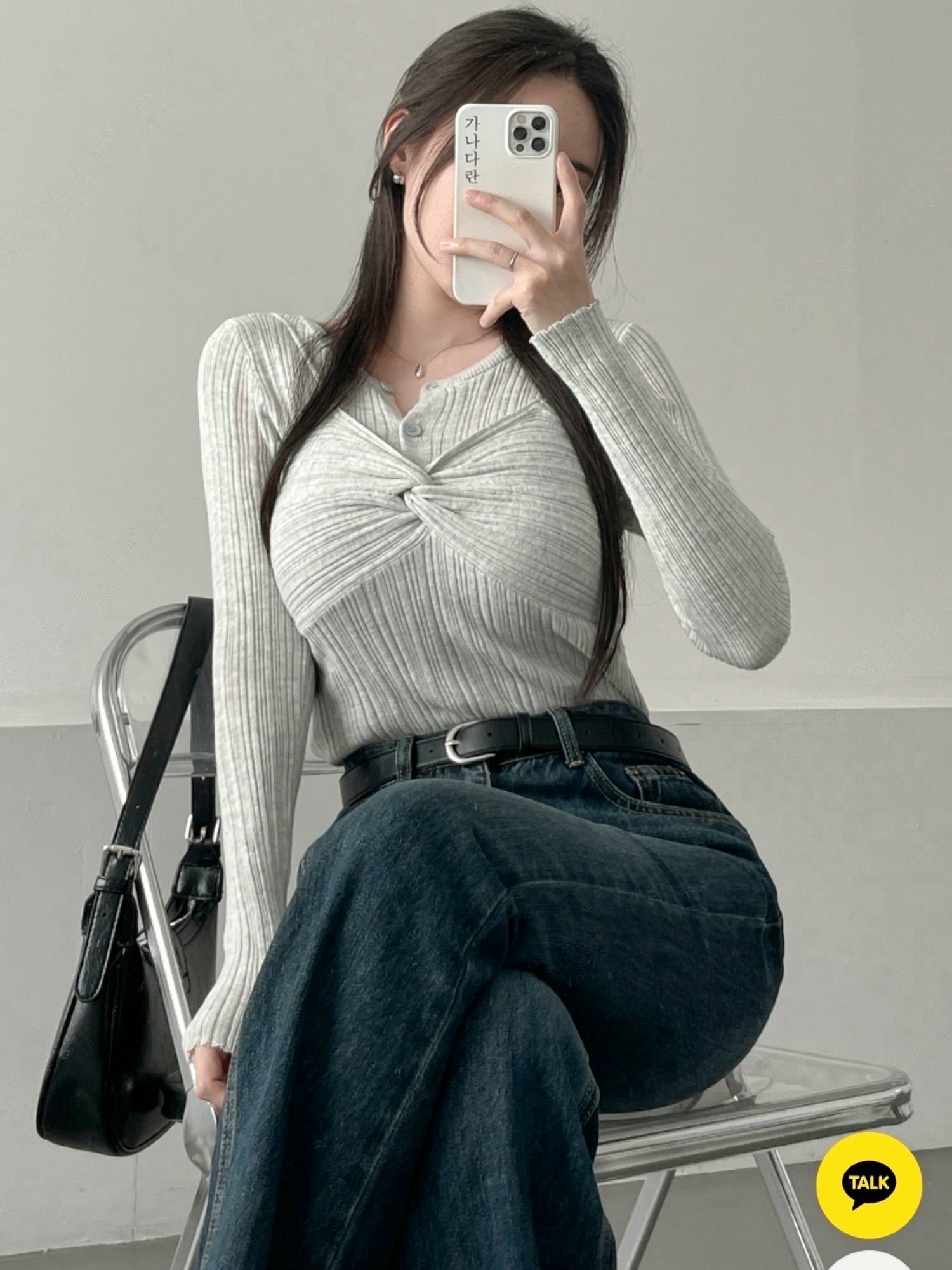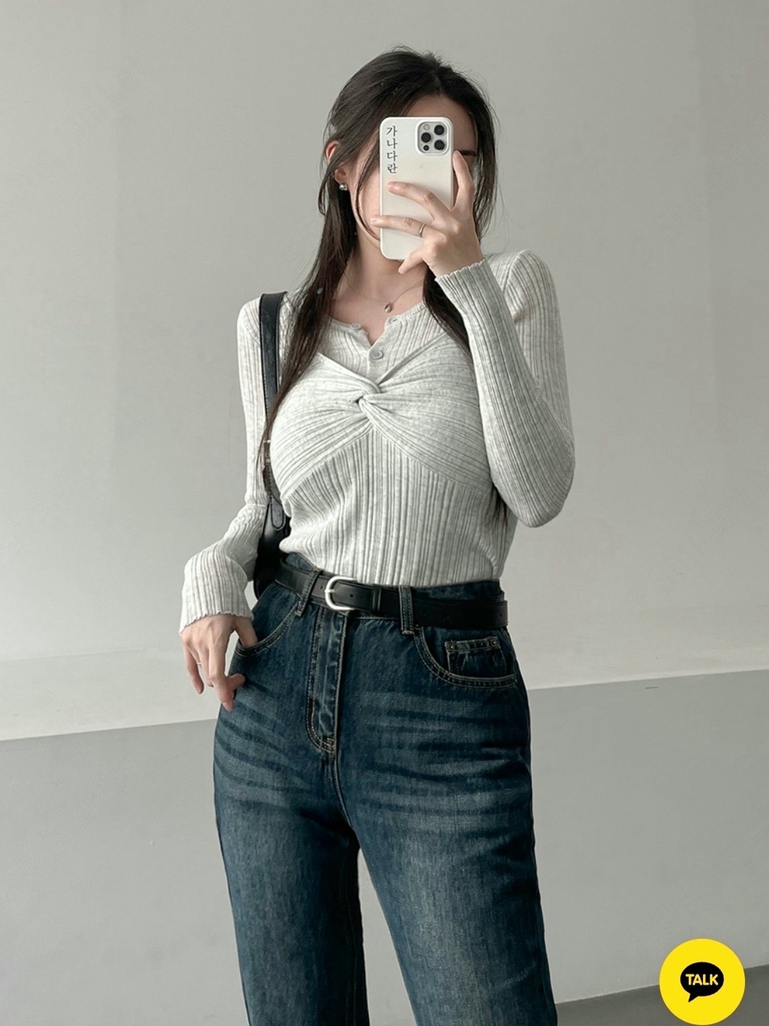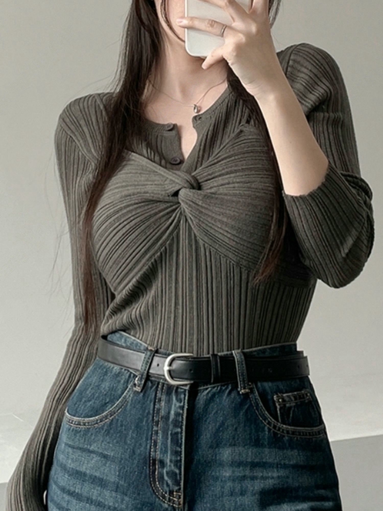 兩穿細坑條排釦罩衫+扭結背心SET
