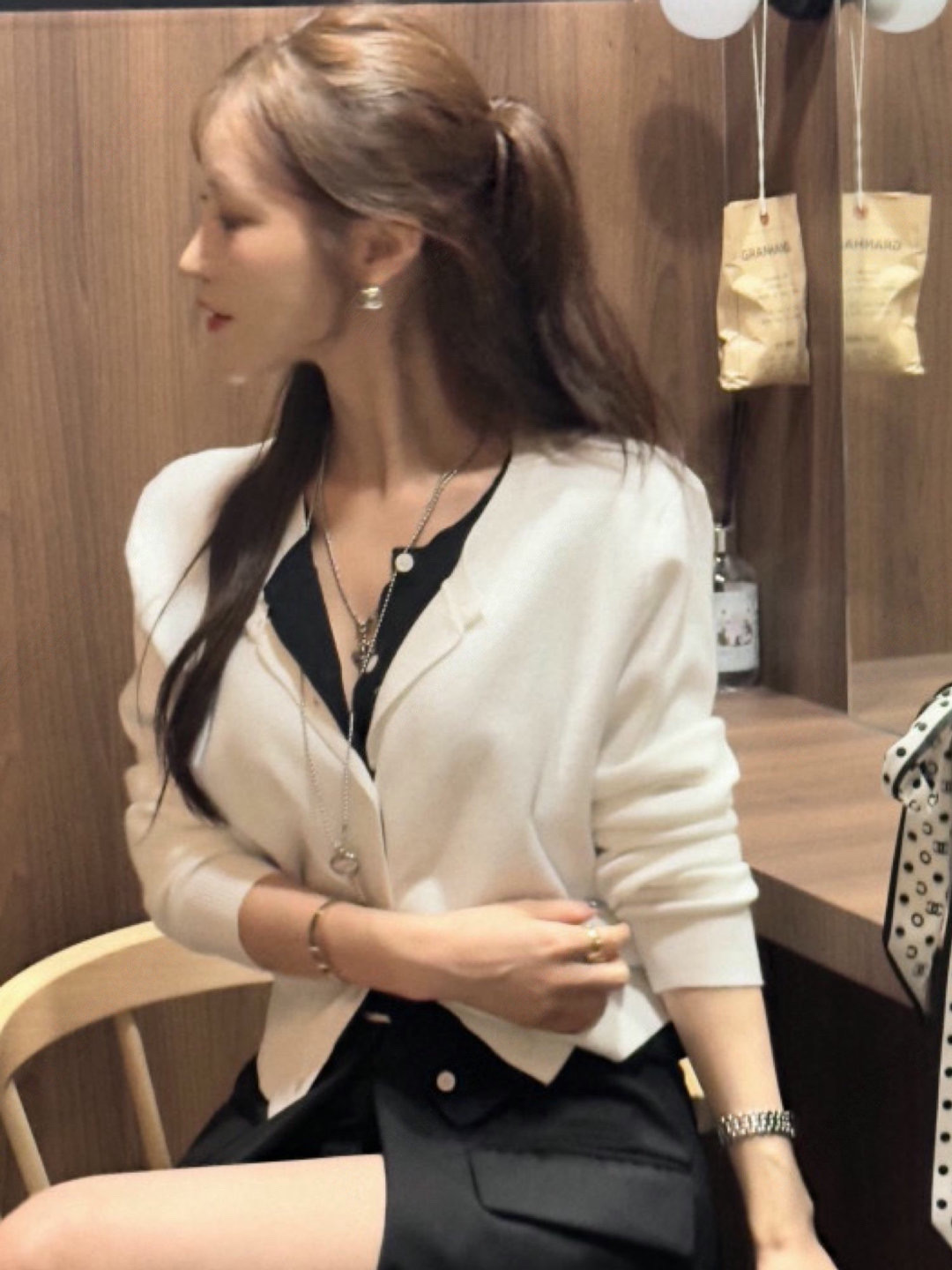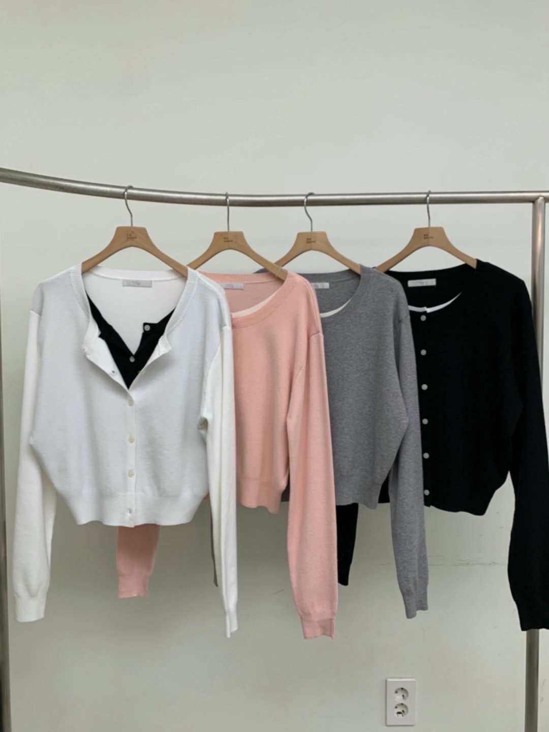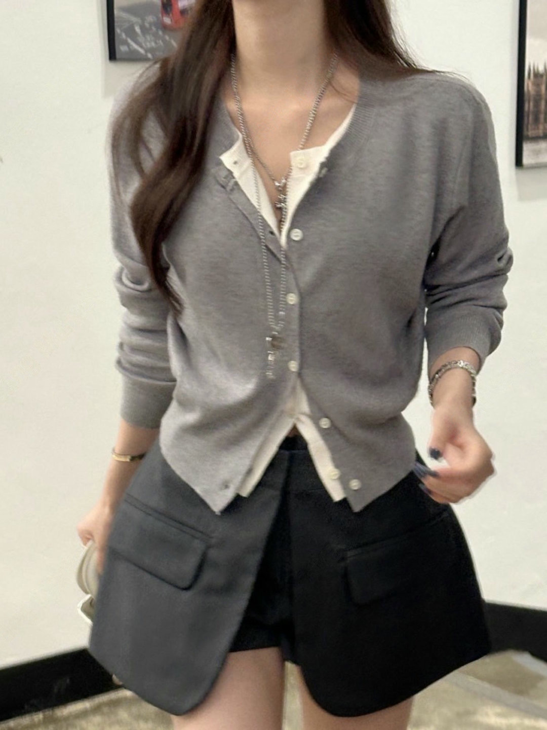 短毛圓領排釦針織衫+鬆緊A字短裙SET