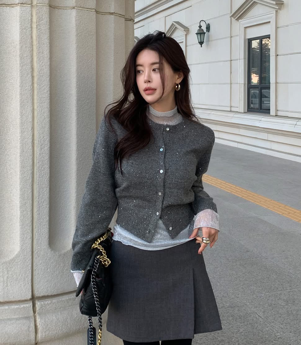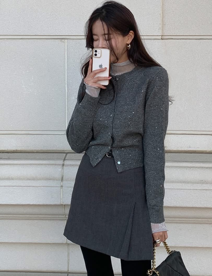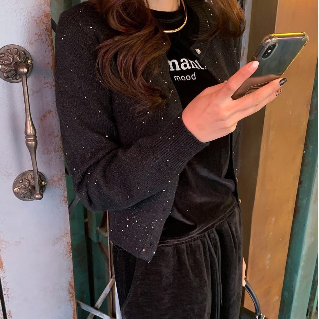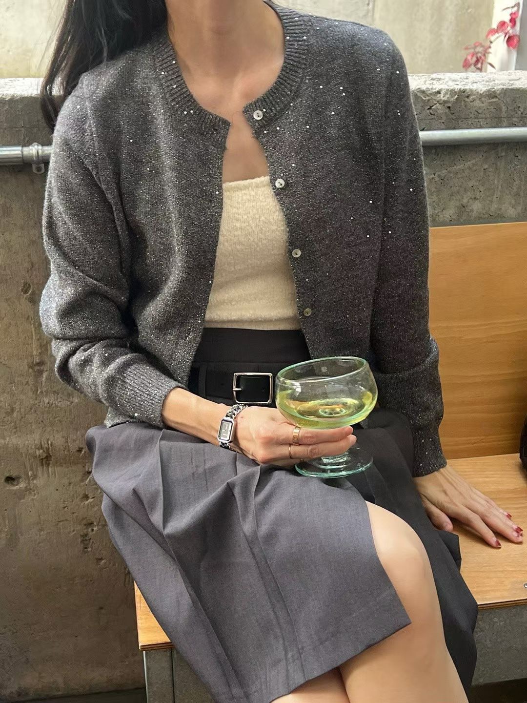 圓領銀扣金蔥小香外套+織紋短裙SET