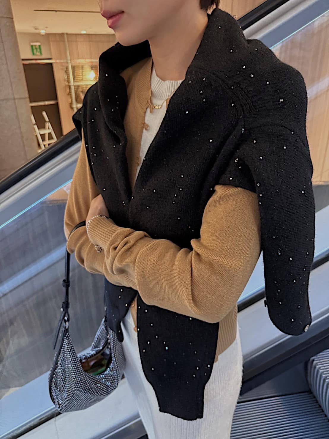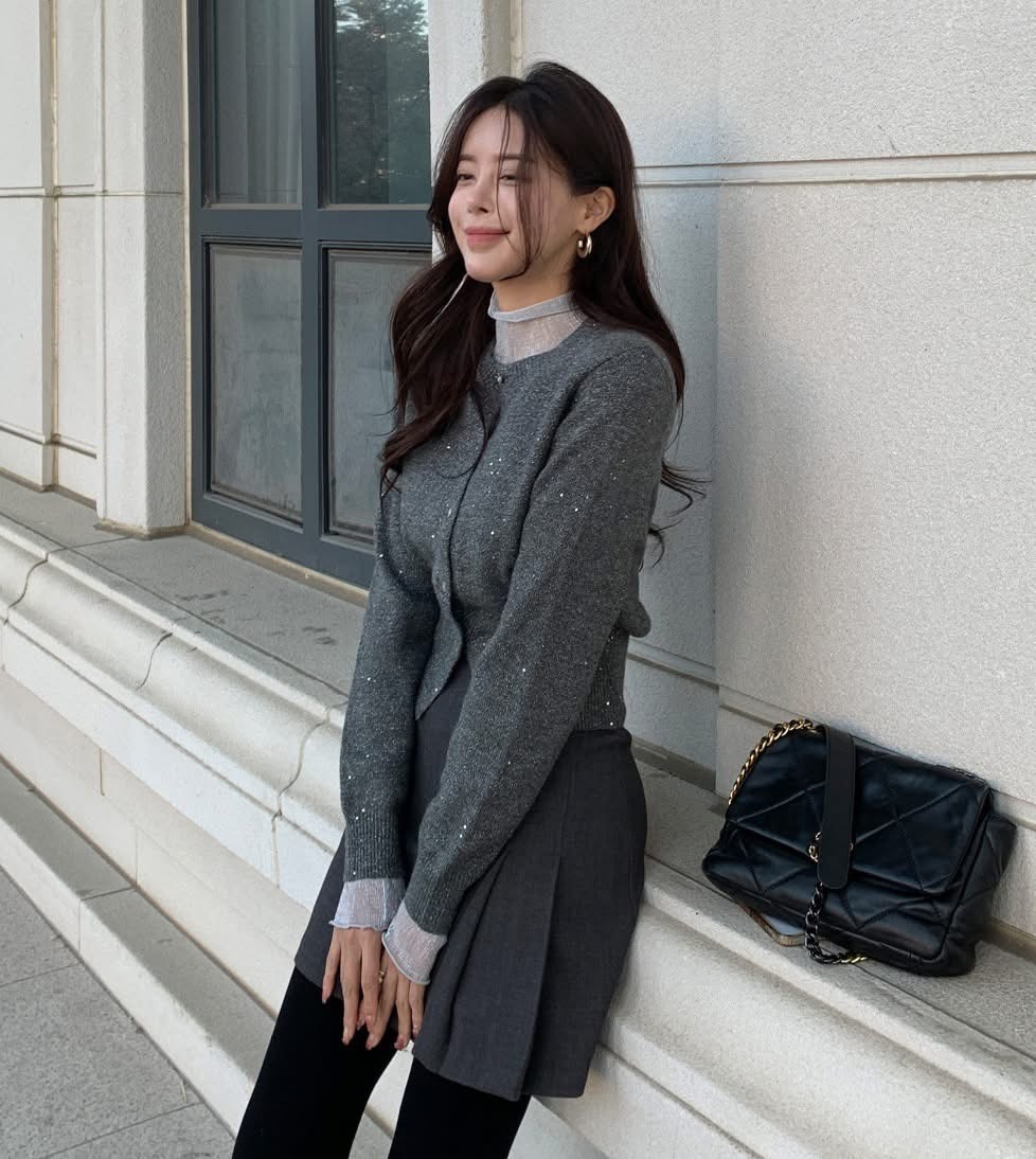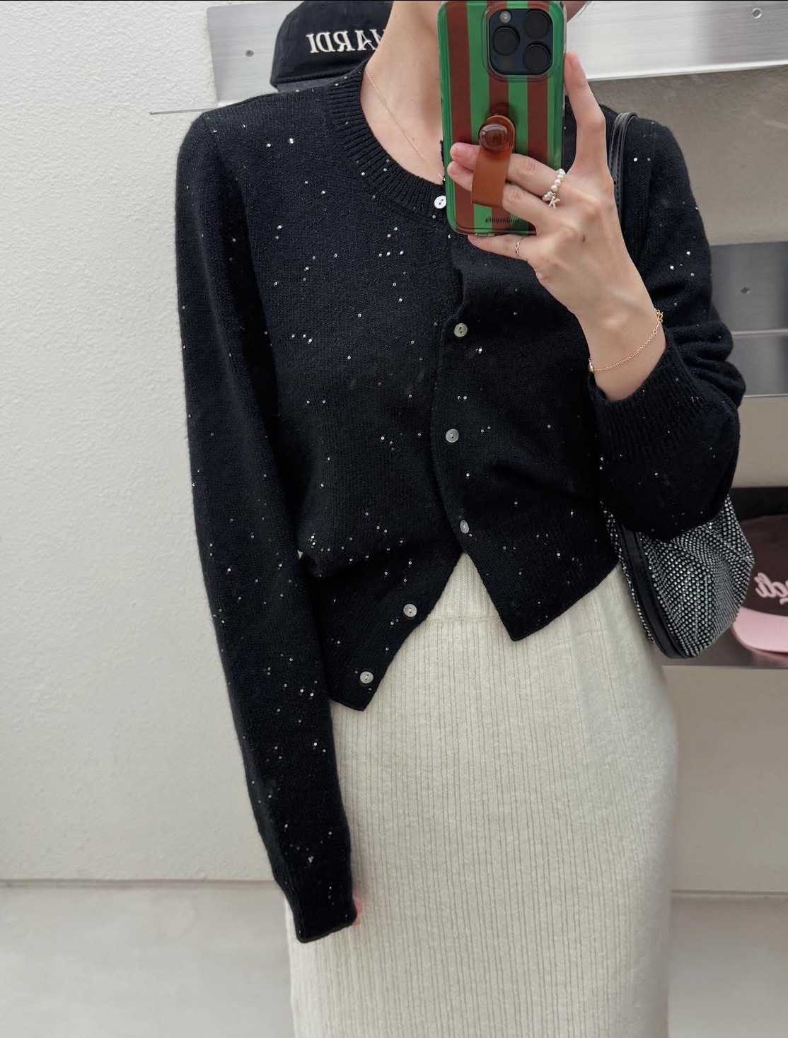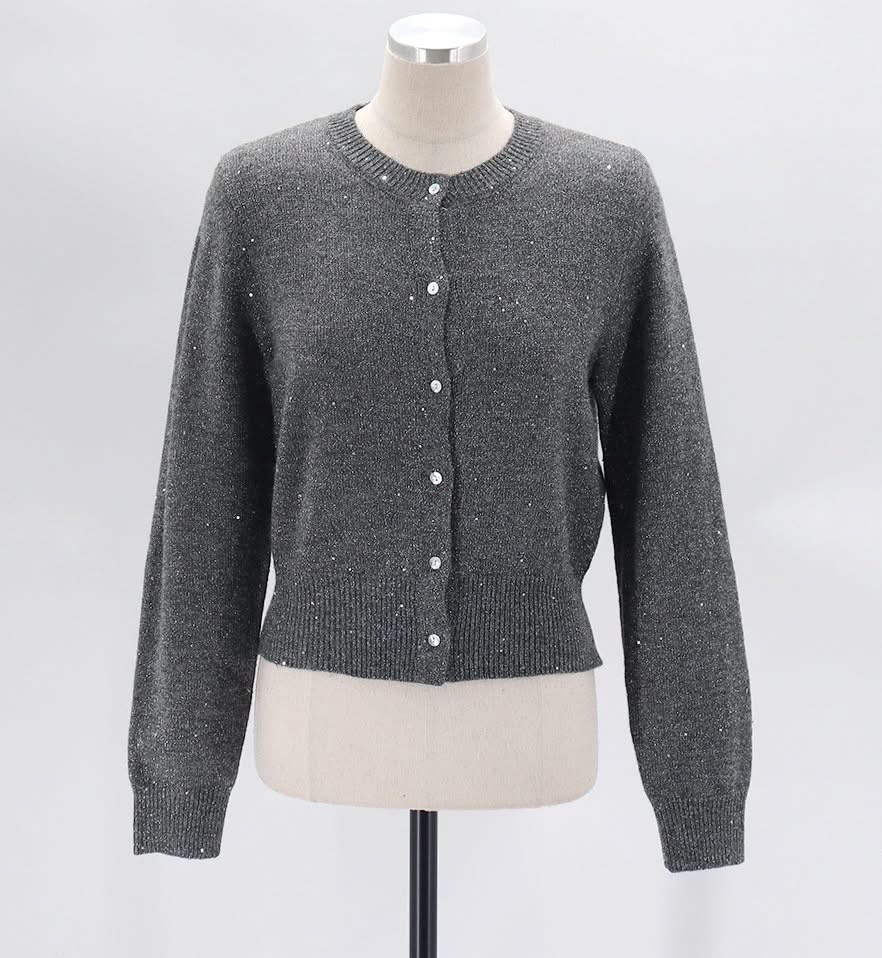 圓領銀扣金蔥小香外套+織紋短裙SET