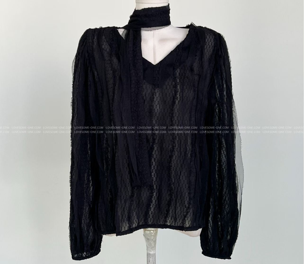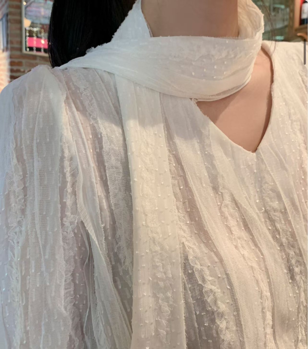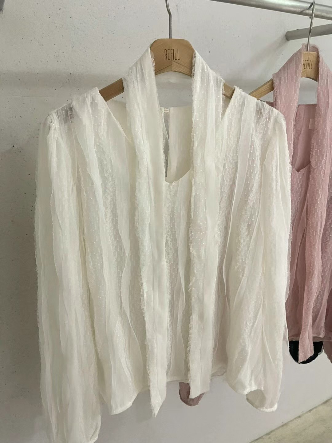 可拆領巾!V領金蔥波紋雪紡襯衫
