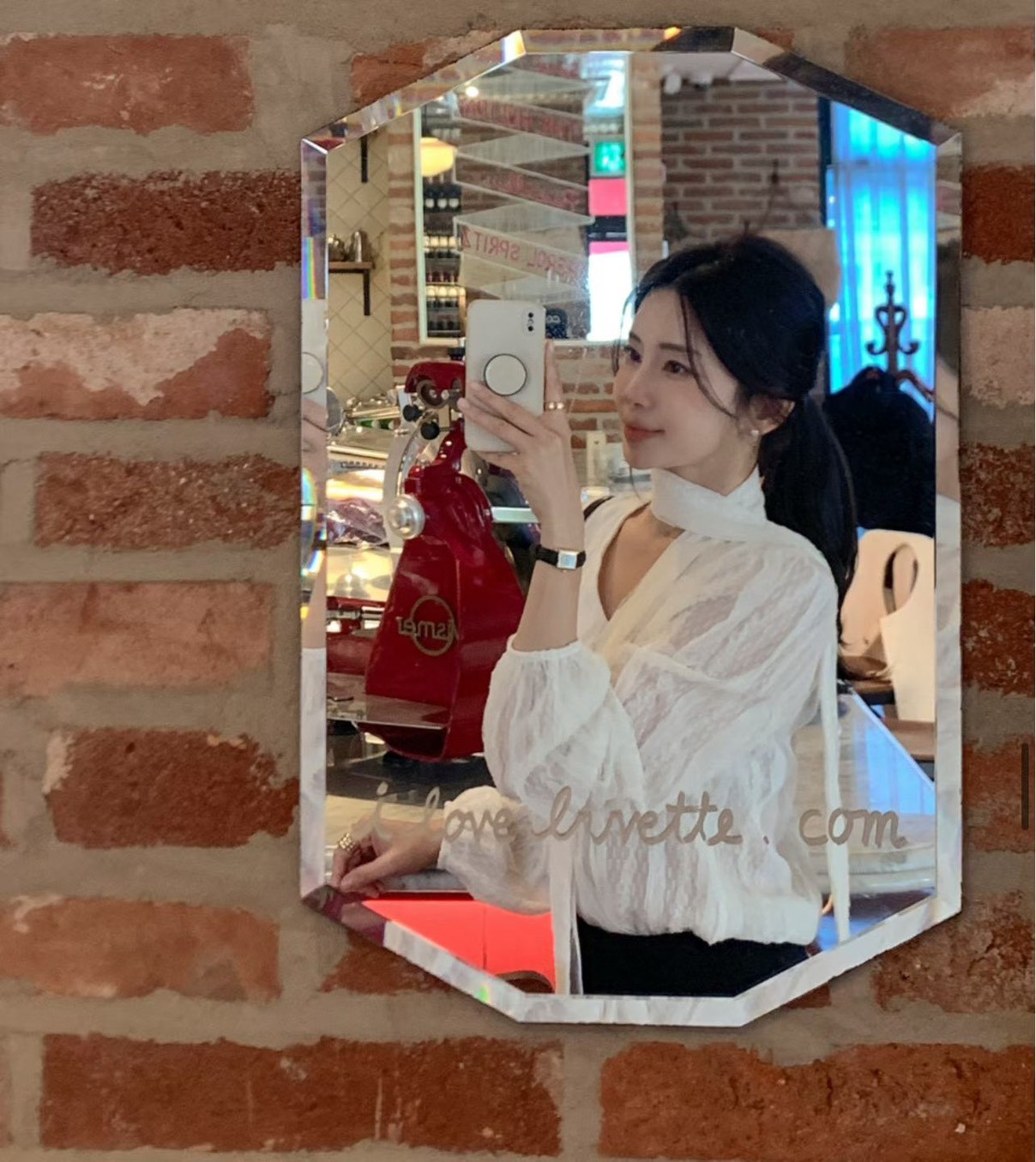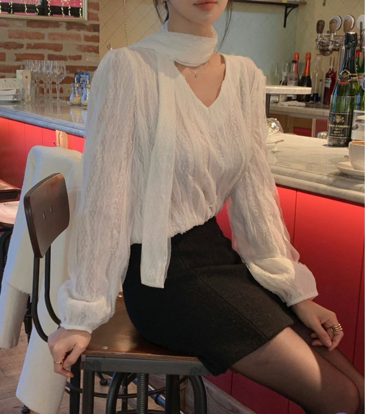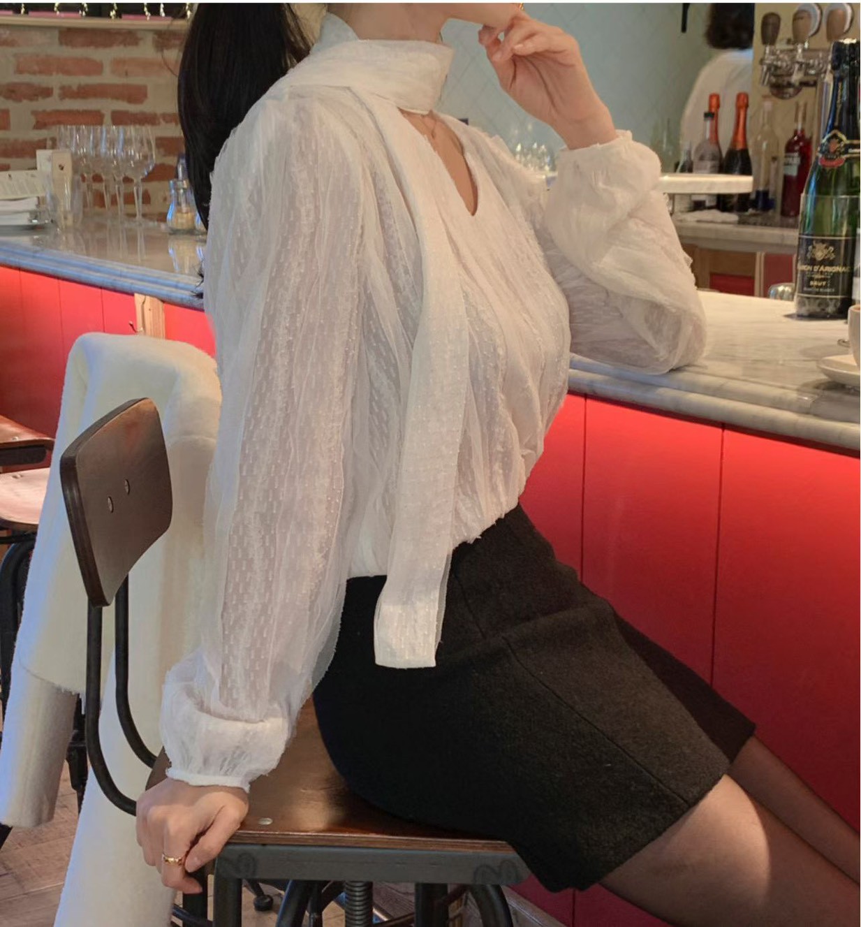 可拆領巾!V領金蔥波紋雪紡襯衫