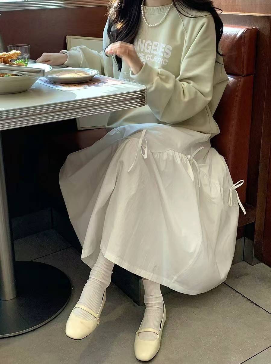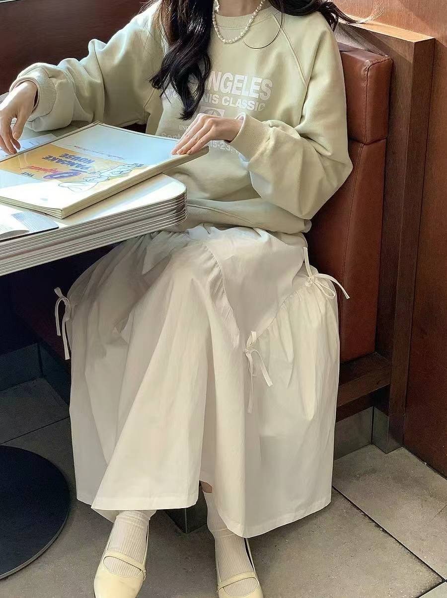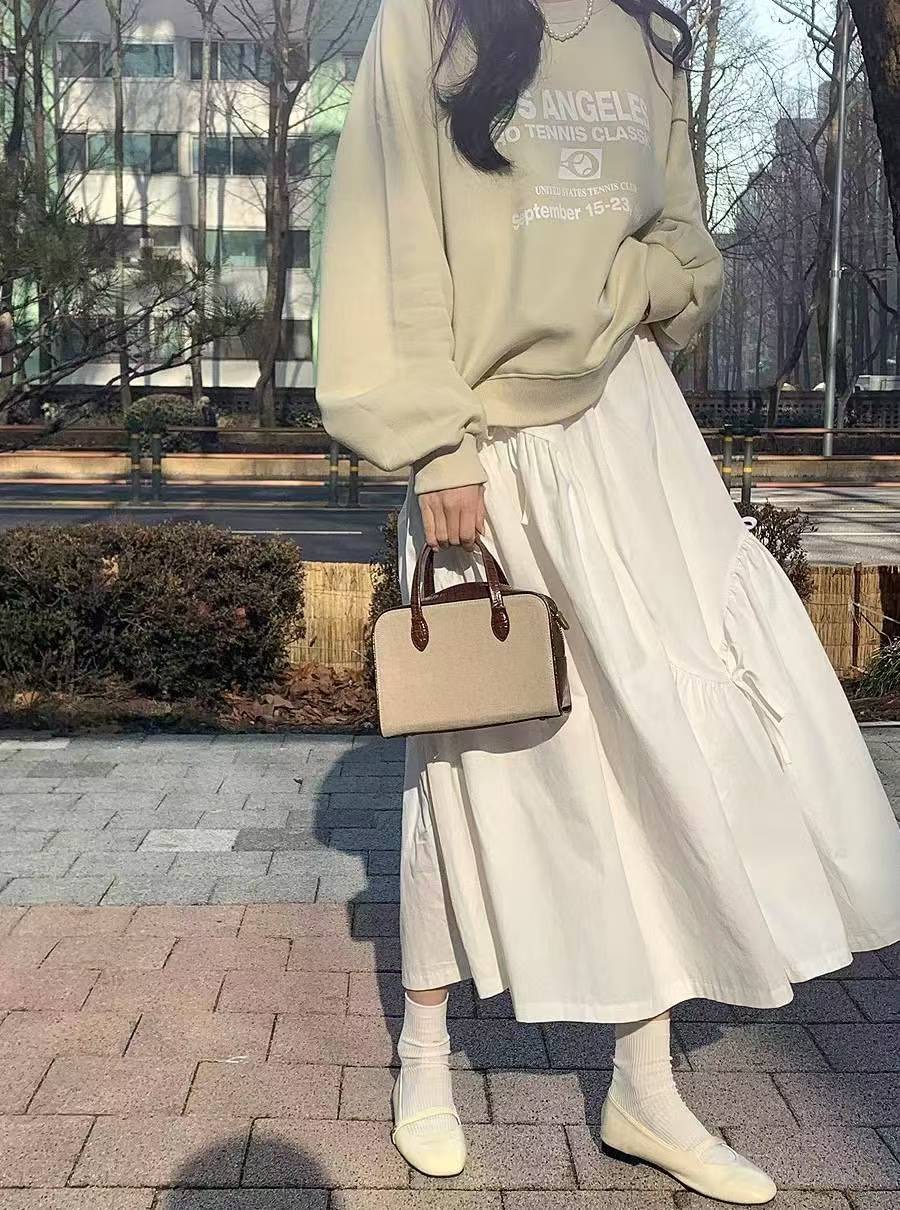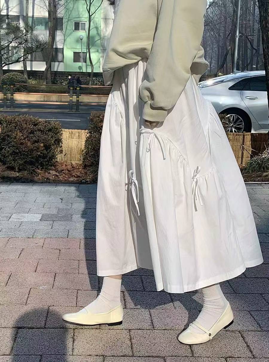 蝴蝶結造型壓線棉麻長裙